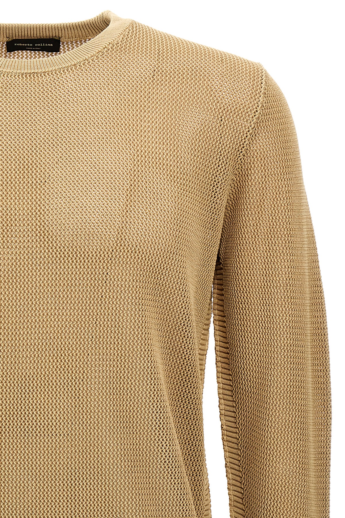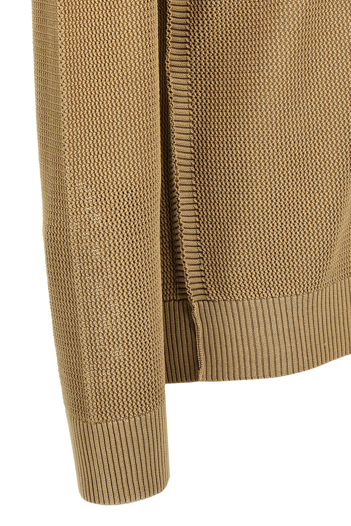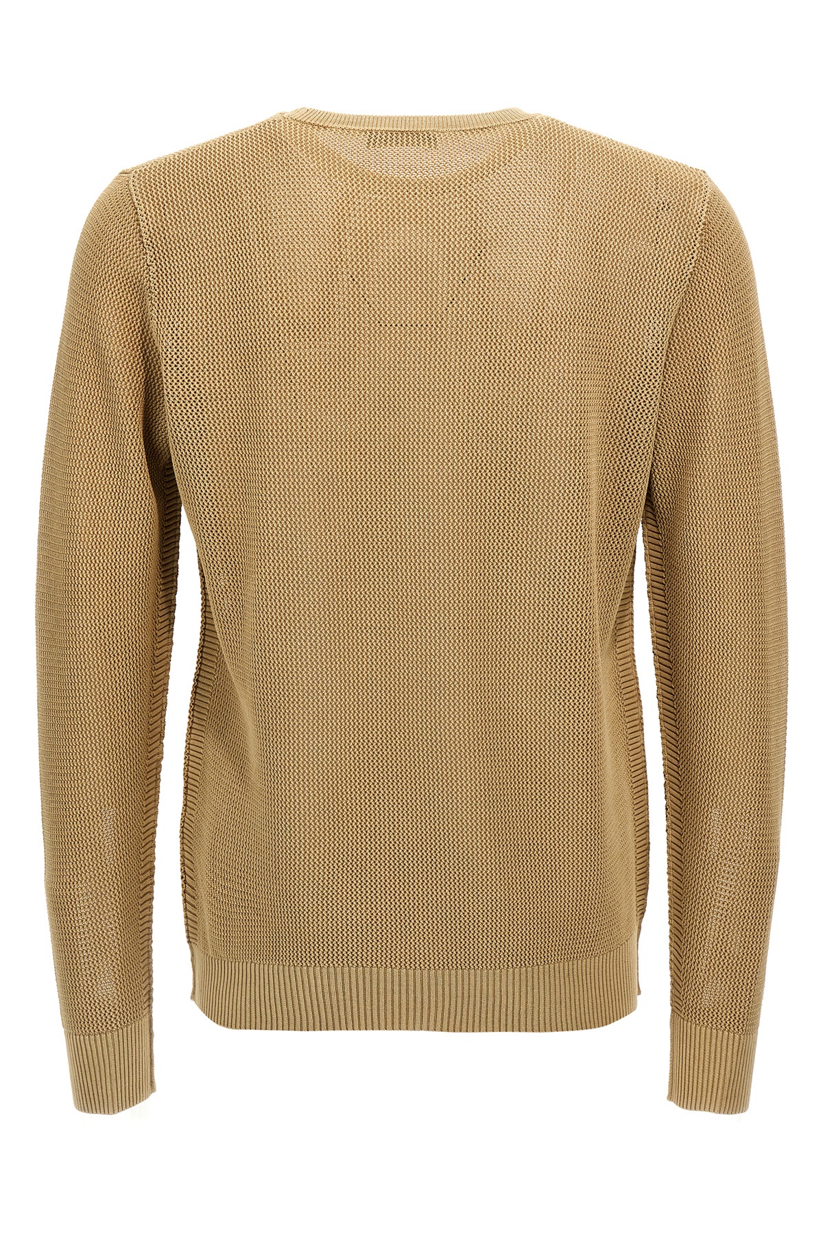 Mesh effect knitted cotton sweater with crew neck, long cuffed sleeves. Any color irregularities are not to be considered a defect but a characteristic of the yarn.