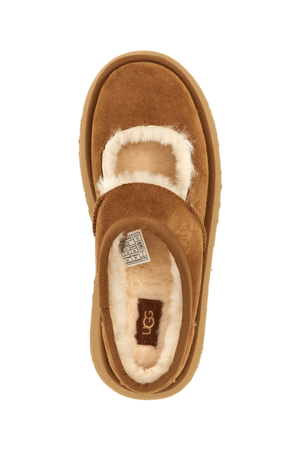 'Bea Mary Jane' suede sabots with front cut-out detail, sheepskin lining, UGGplush™ insole, platform, ultralight EVA sole from sugar cane.
