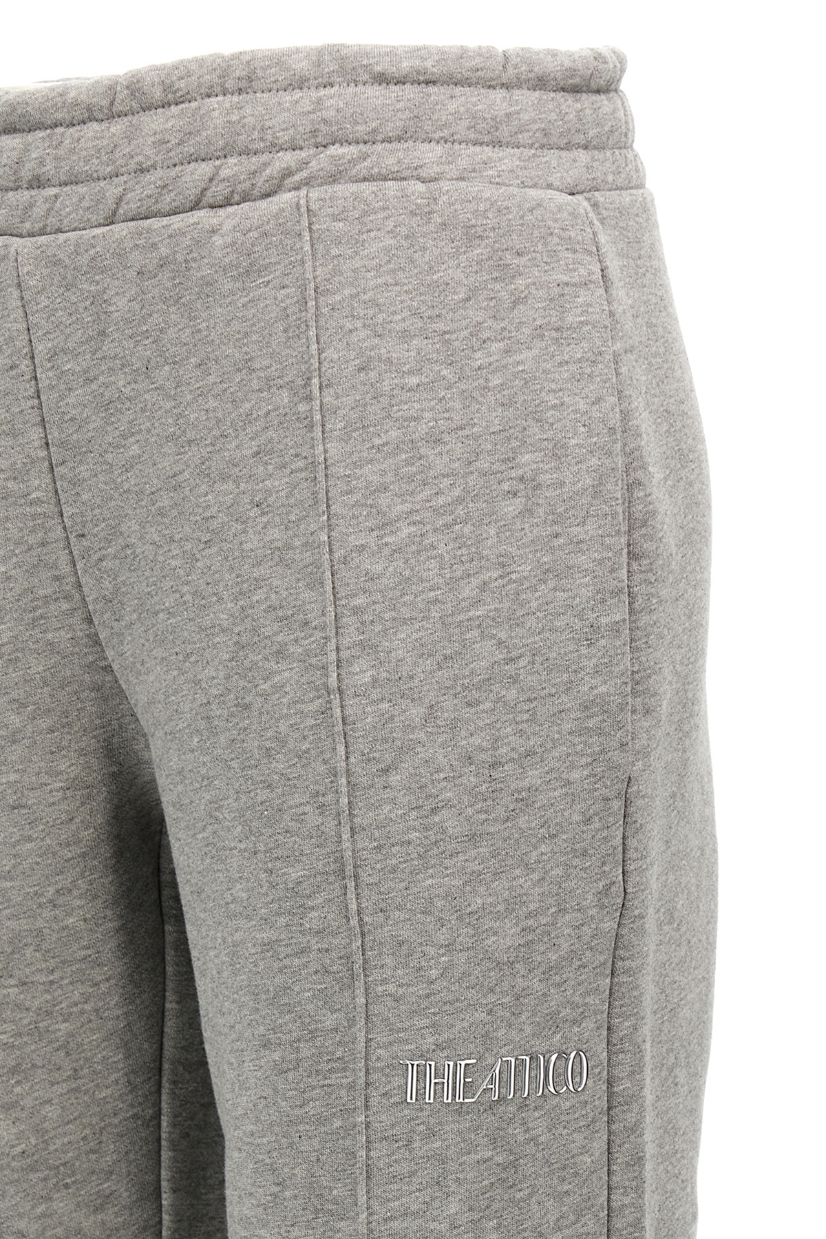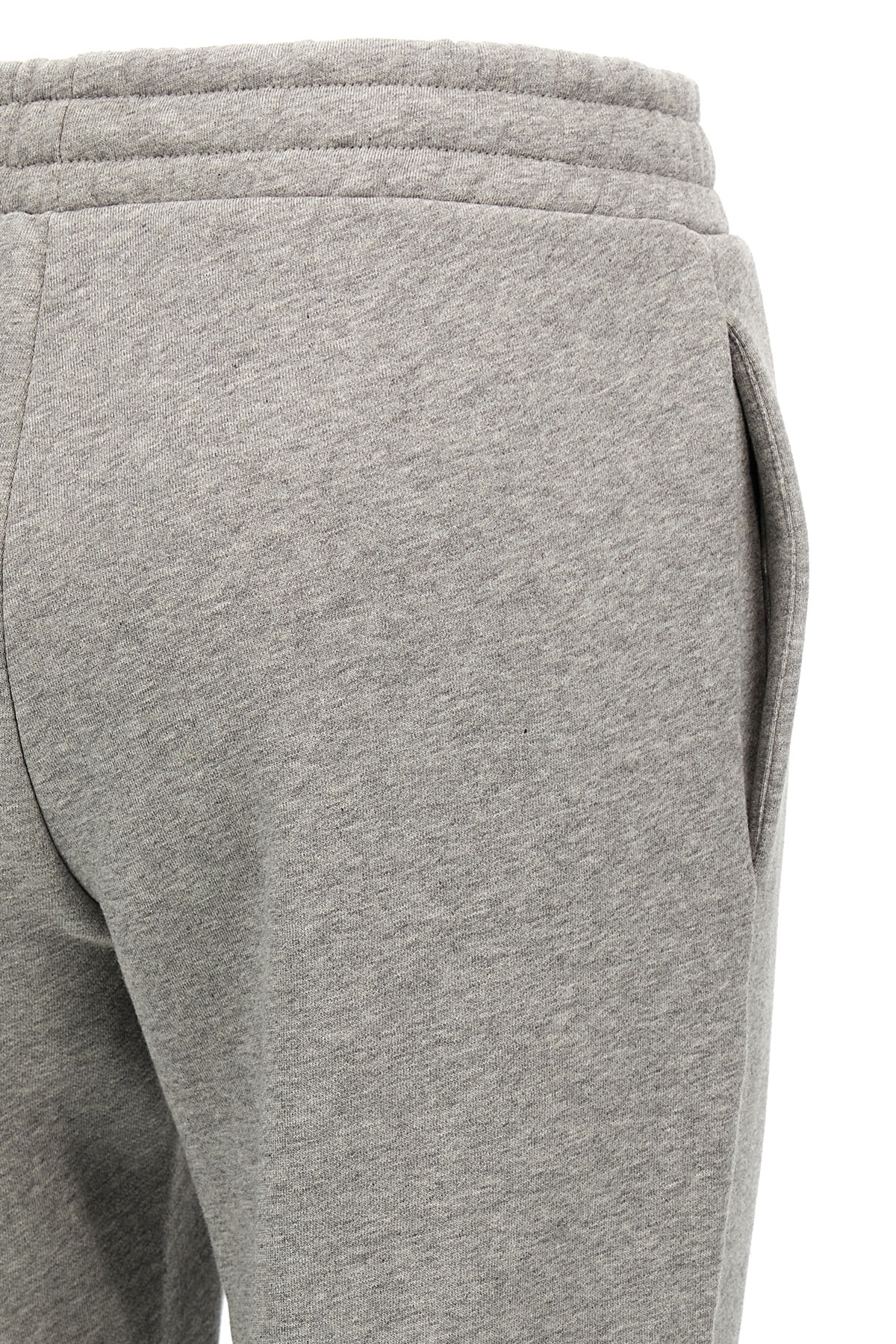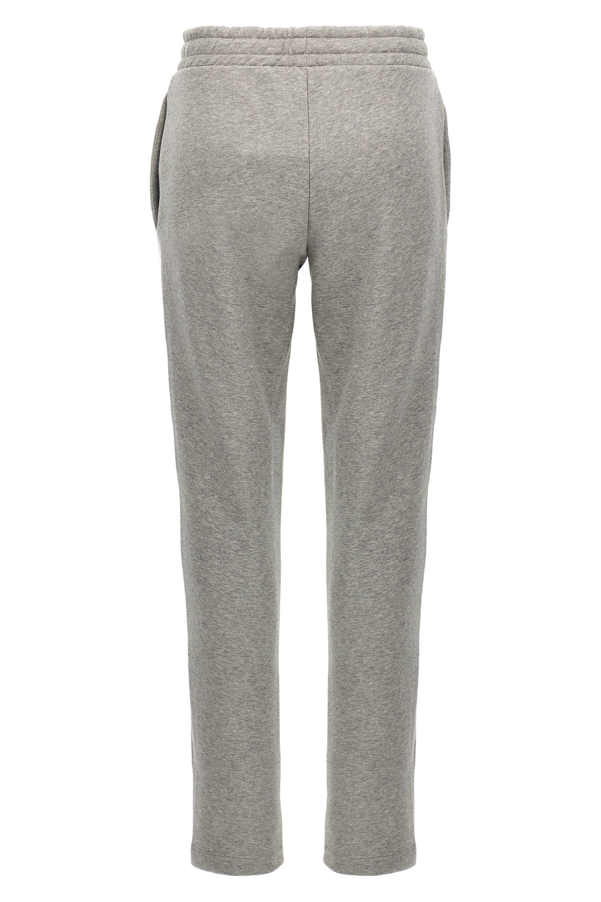 American fleece cotton joggers with front embossed logo, elastic waistband with adjustable drawstring, pockets, straight leg with central stitching.