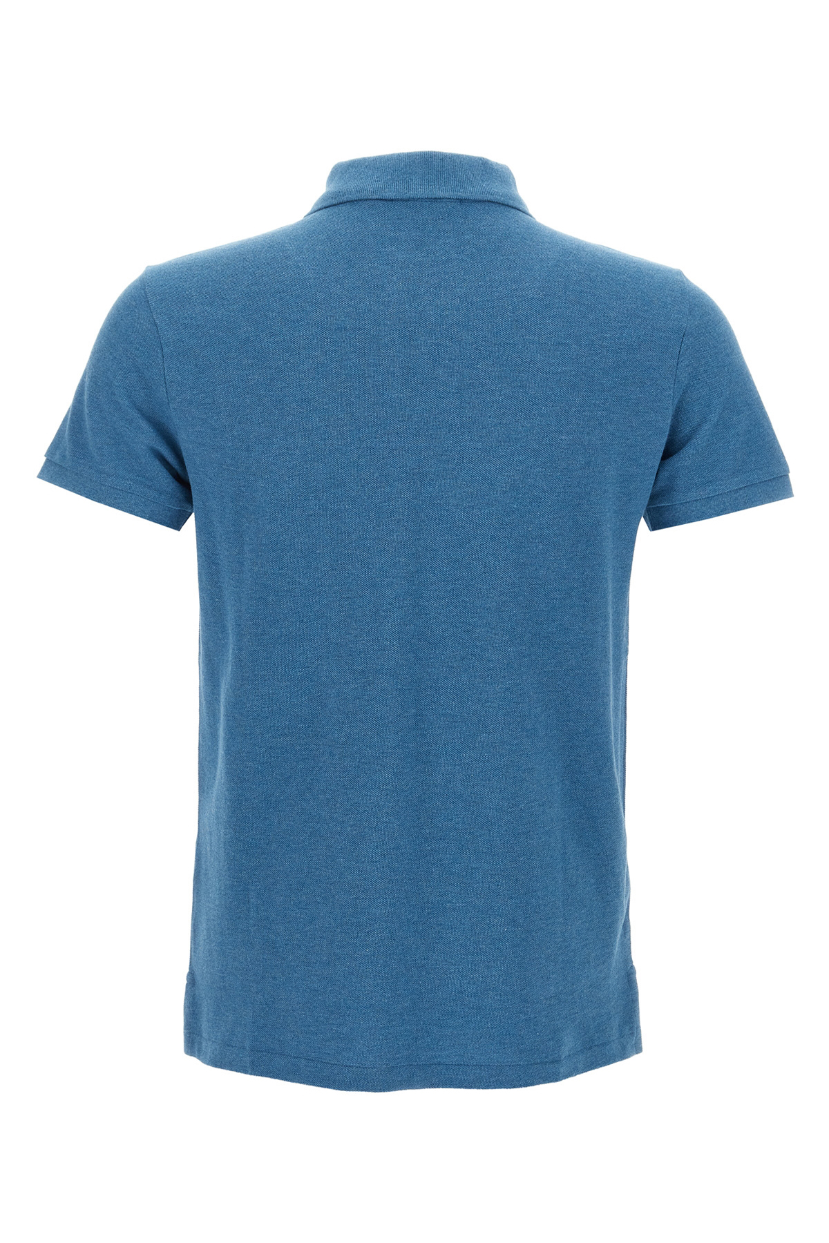 Melange pique cotton polo shirt, front logo embroidery, collar and buttons, short sleeves, side slits.
