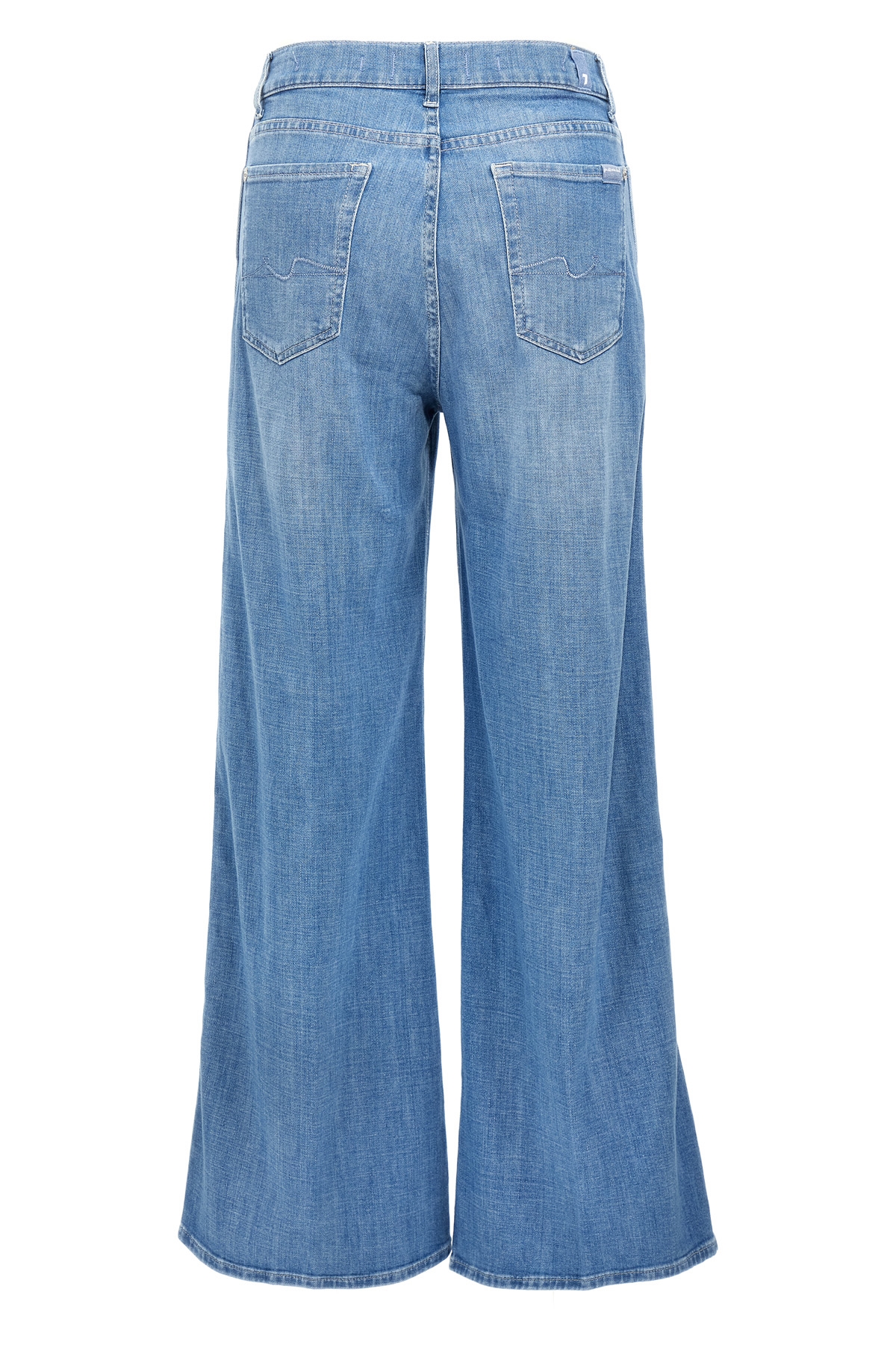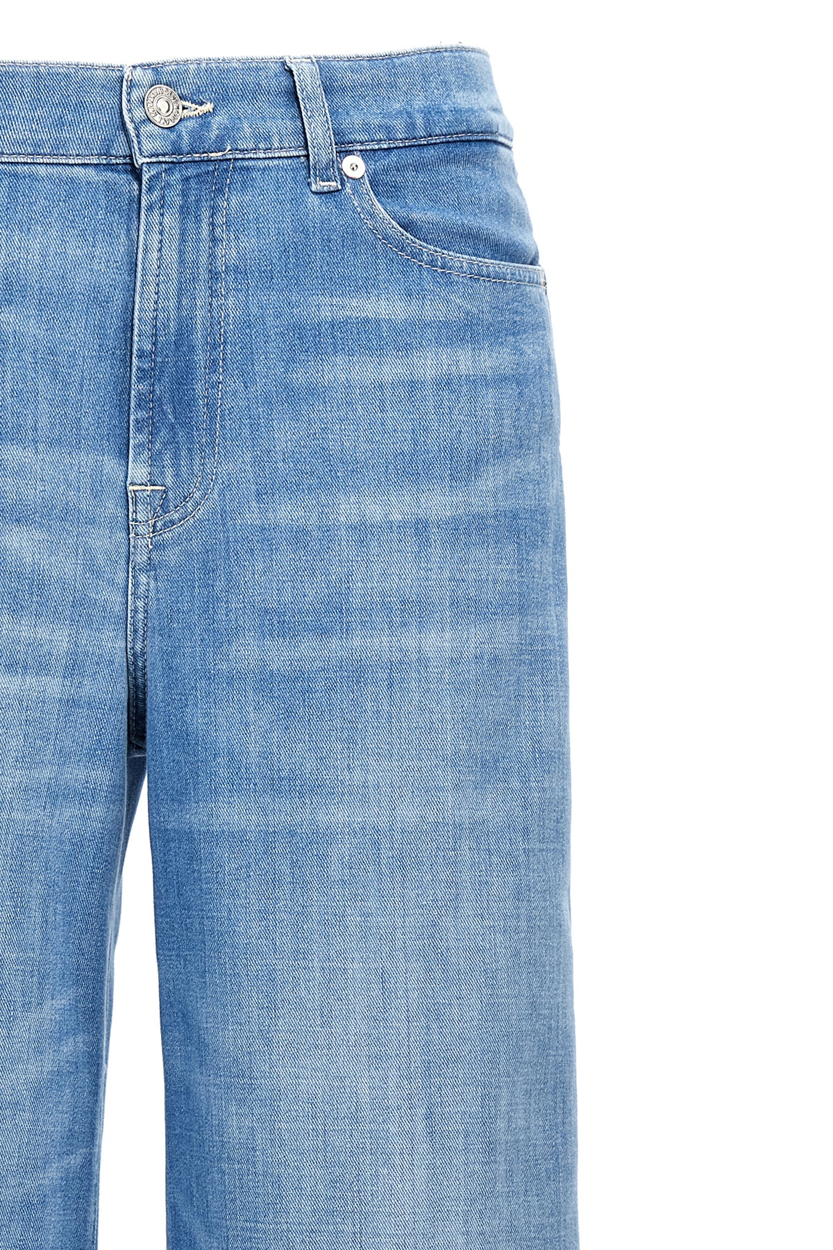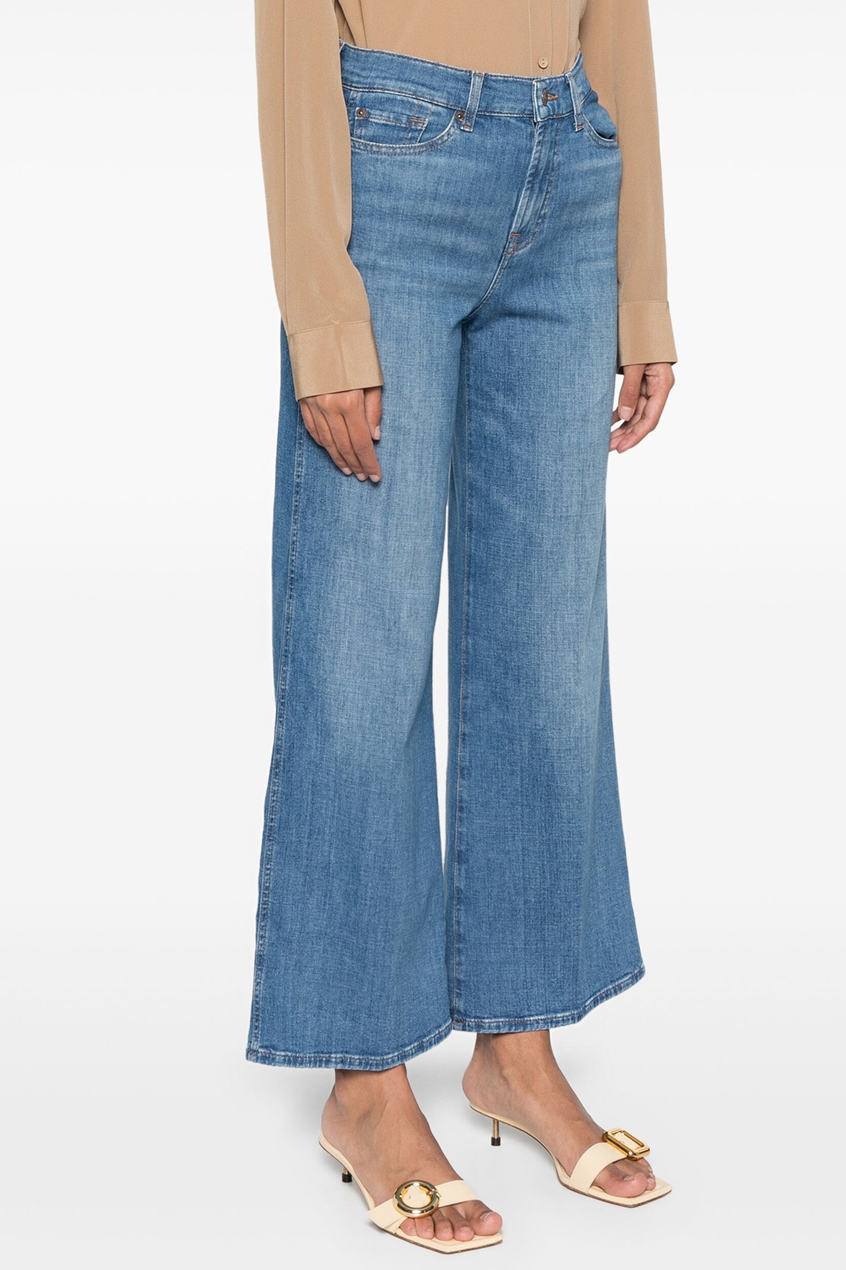 Lotta' high-waisted jeans in delave cotton denim with flared, wide crop leg, zip and button closure, and five pockets.