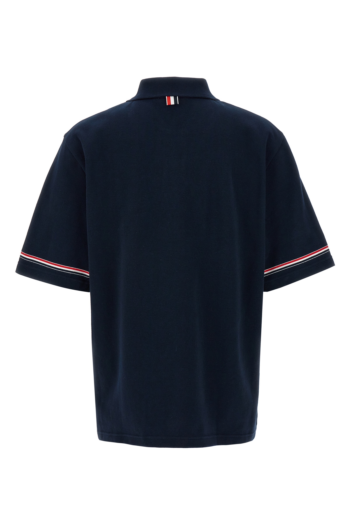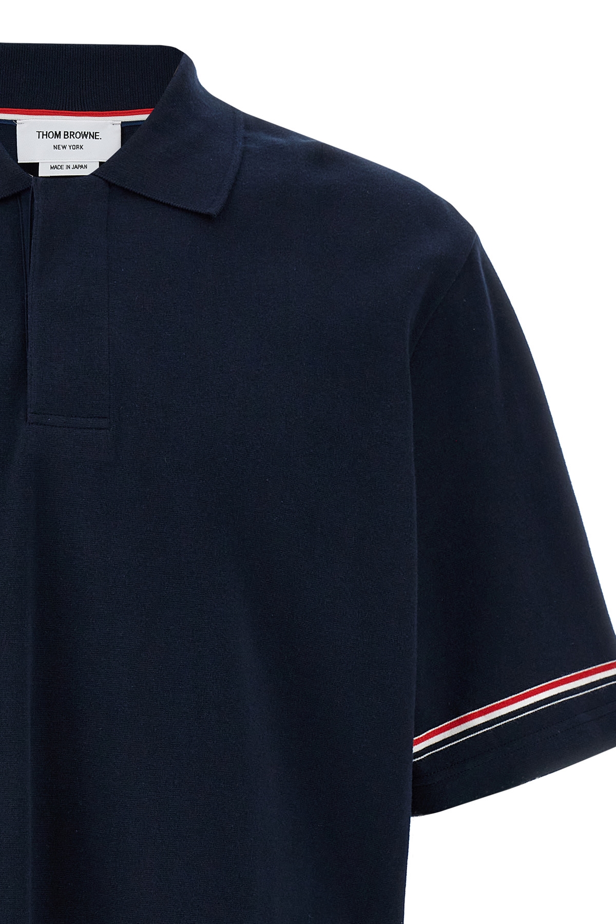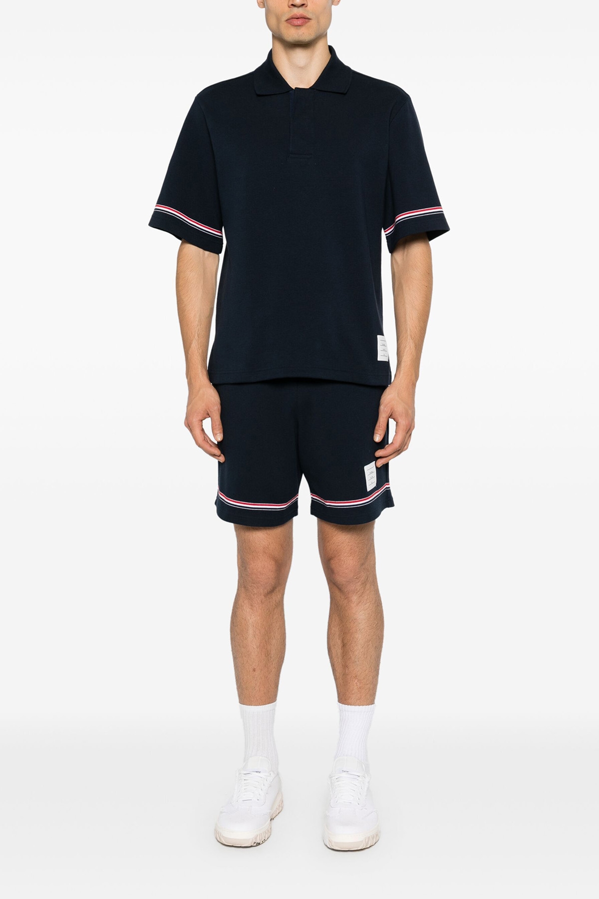 'Rugby' cotton polo shirt with rwb detail on the sleeve, front logo patch, collar and buttons, short sleeves, side slits with grosgrain rwb ribbon.