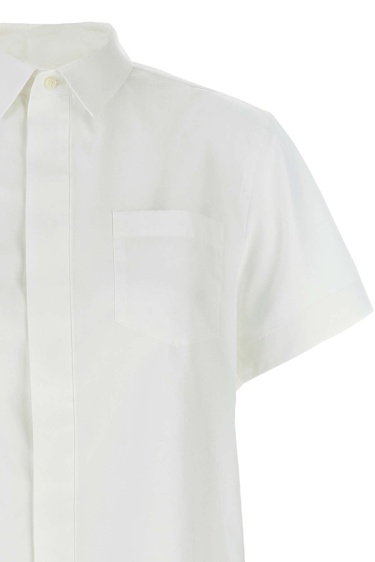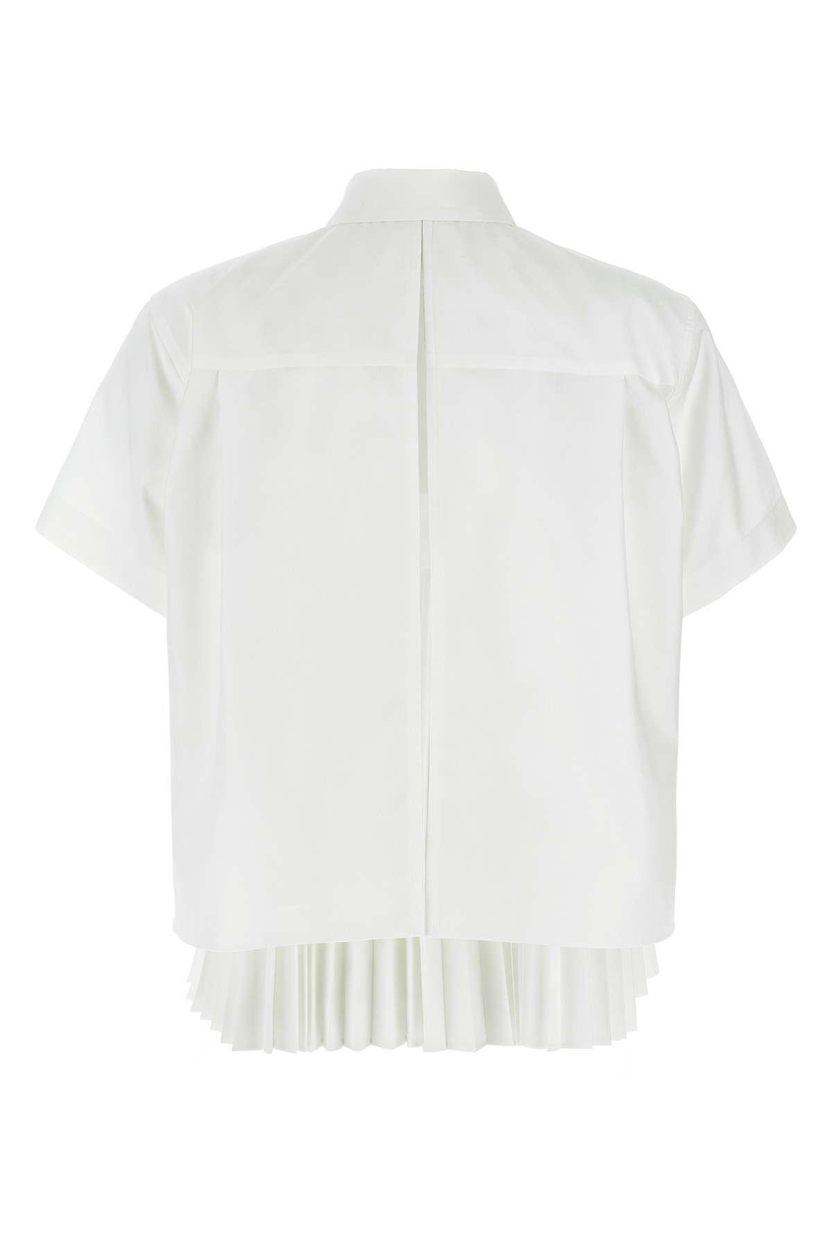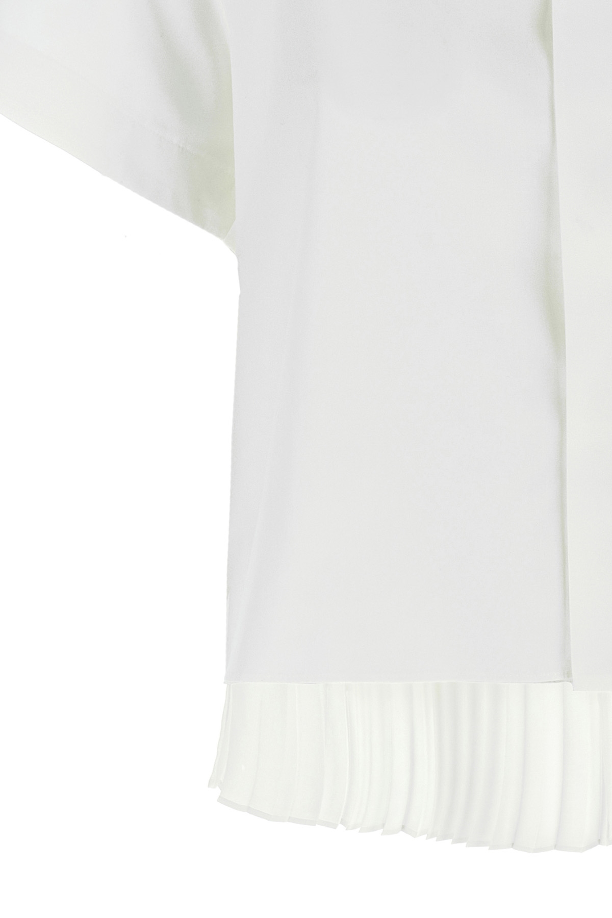 Striped cotton poplin shirt, chest pocket, button closure, short sleeves, crop style with back opening with asymmetric flounced insert.