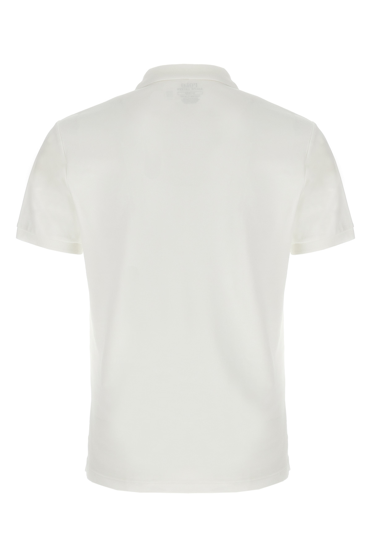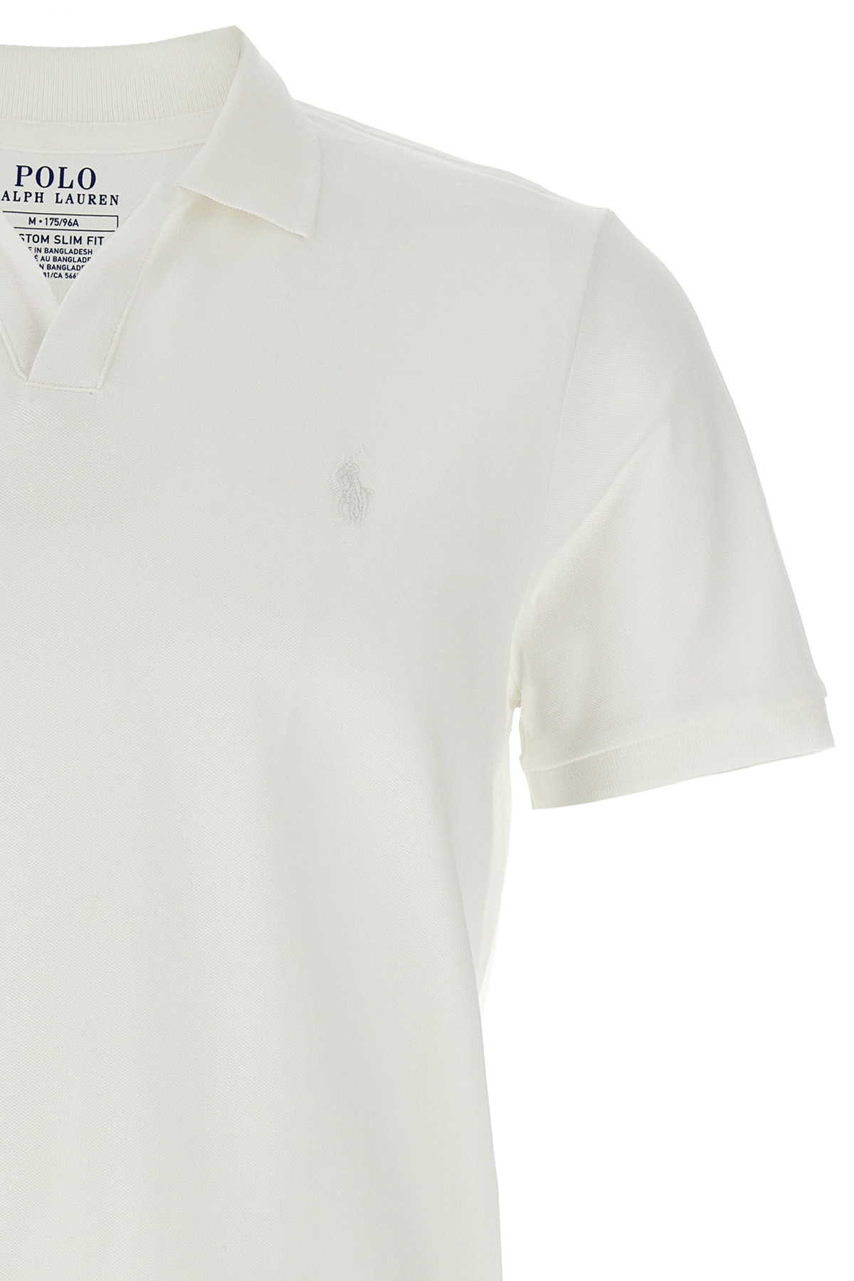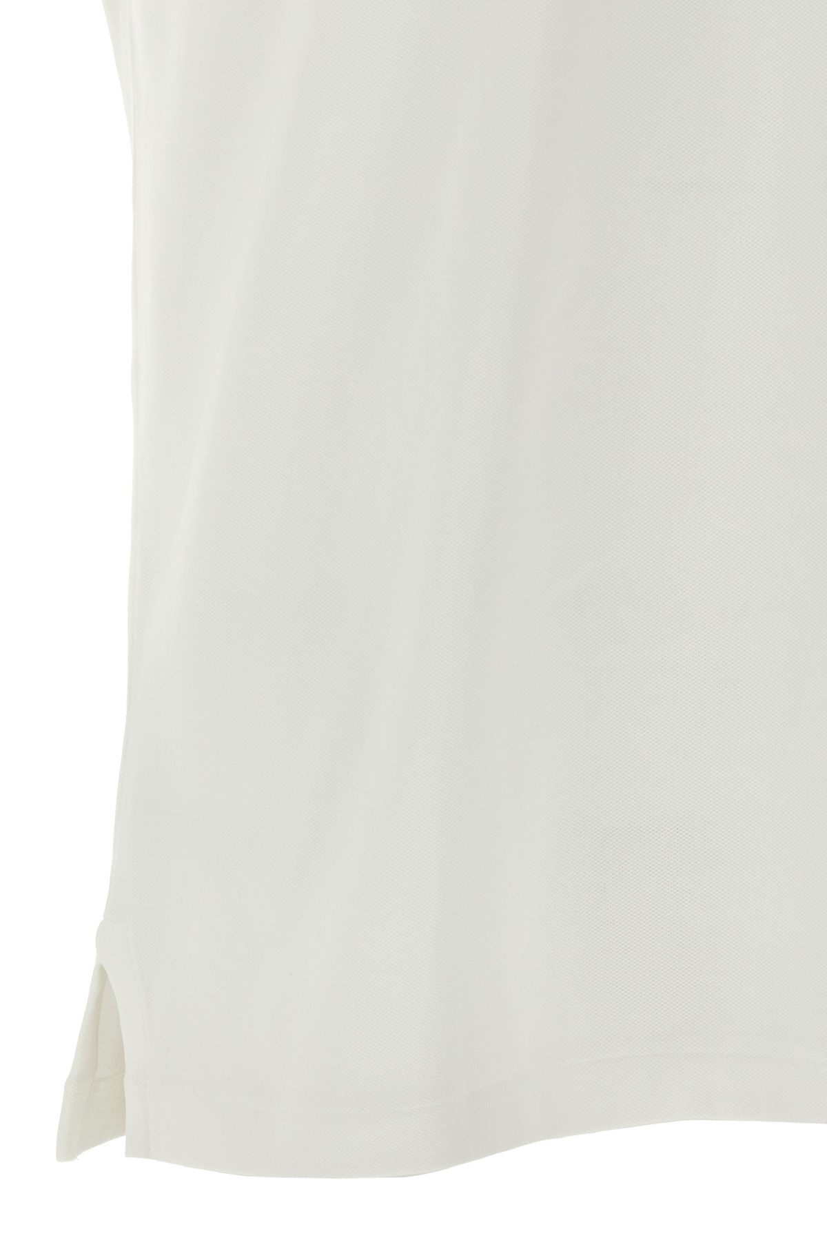 Pique cotton polo shirt with tone-on-tone front logo embroidery, collar and V-neck, side slits, and short sleeves.