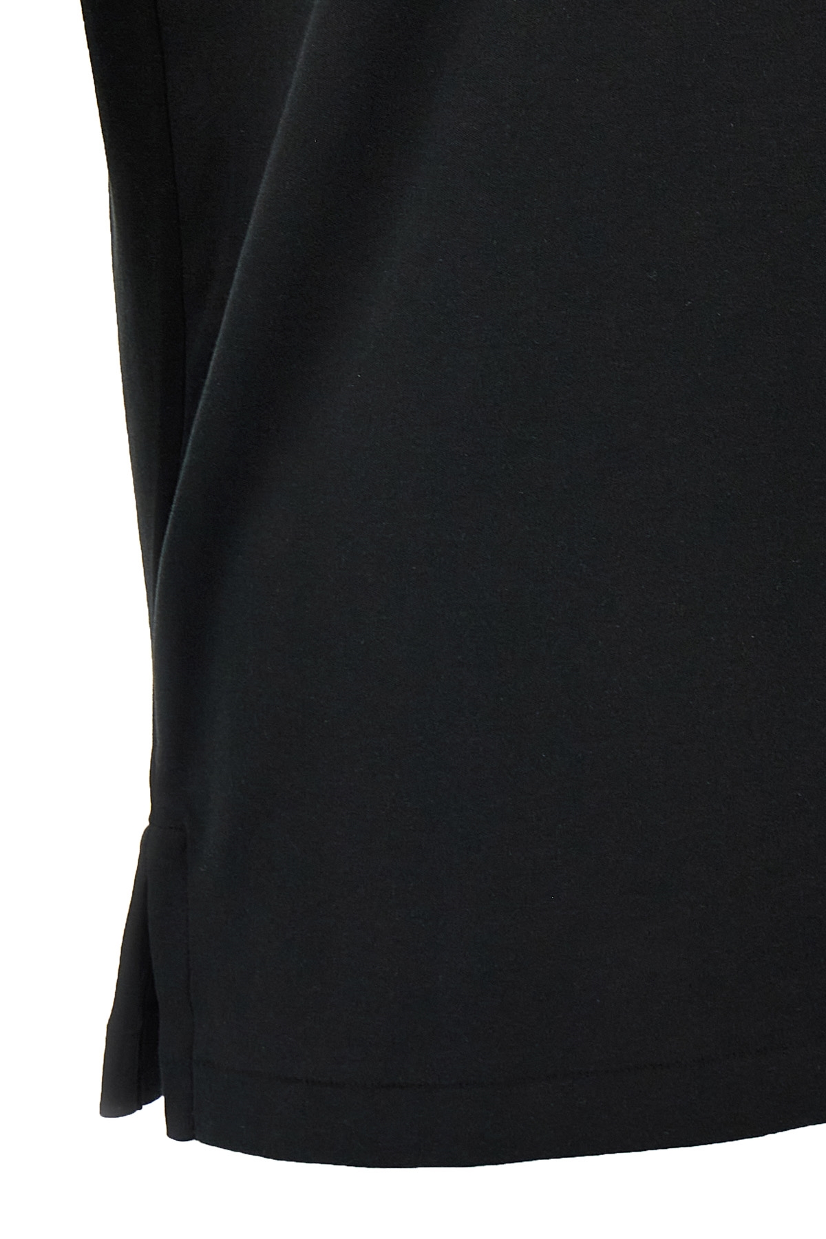 Polo shirt in stretch cotton with front logo embroidery, collar and buttons, side slits, and short sleeves.