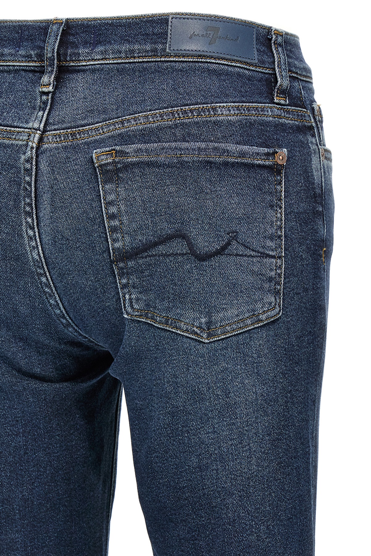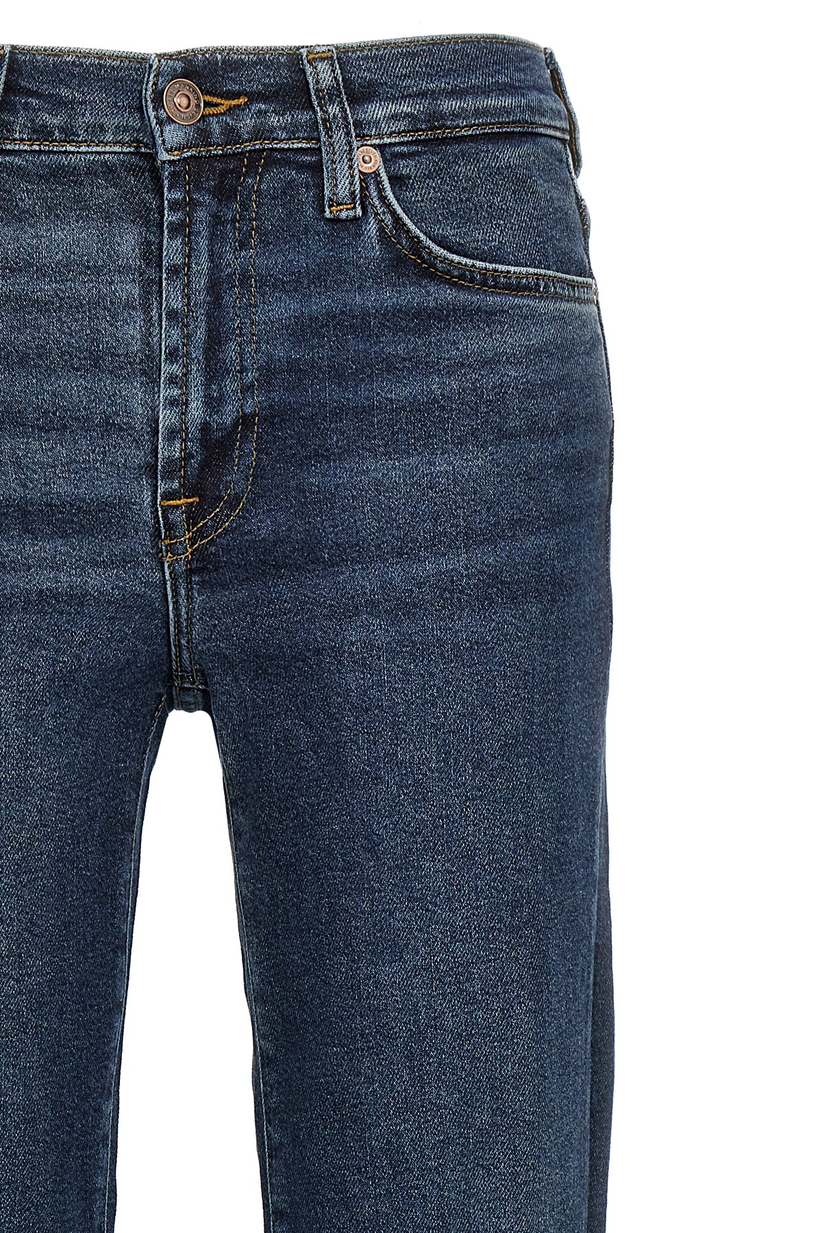 Luxe Vintage delave five Roxanne-pocket stretch cotton denim jeans with ankle style, zip and button closure, and back leather logo tag.