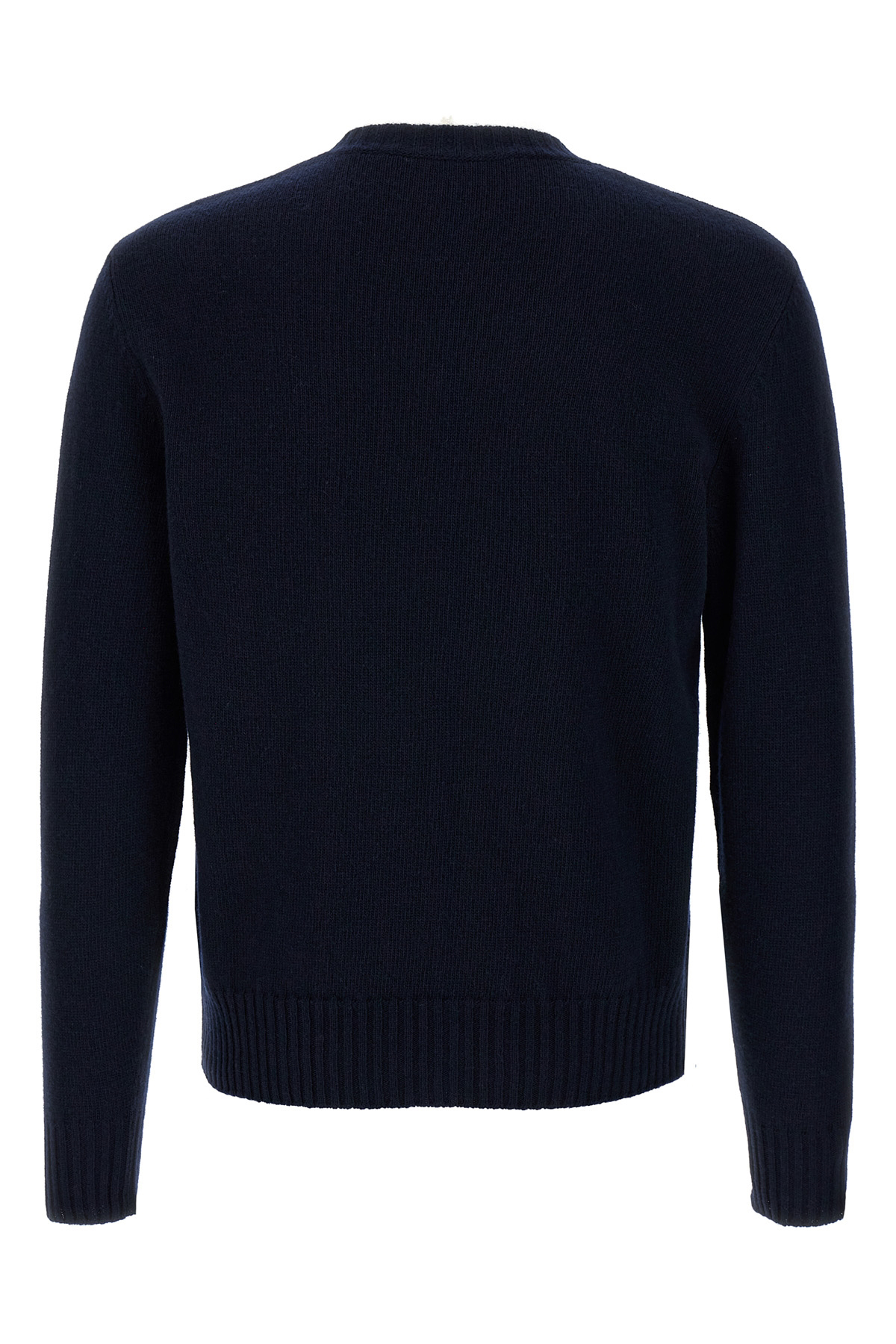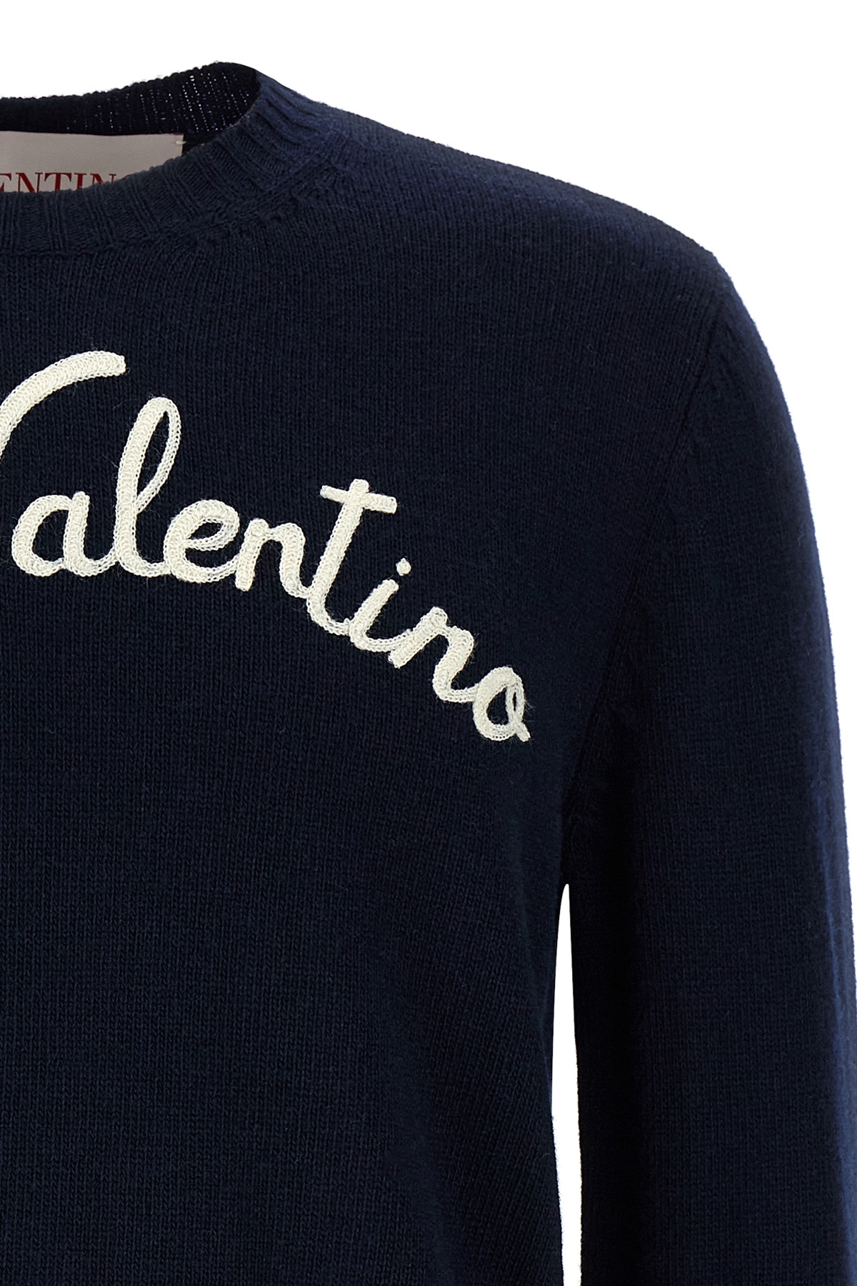 Virgin wool sweater with contrast 'Chez Valentino' embroidery on the front, crew neck, long cuffed sleeves.