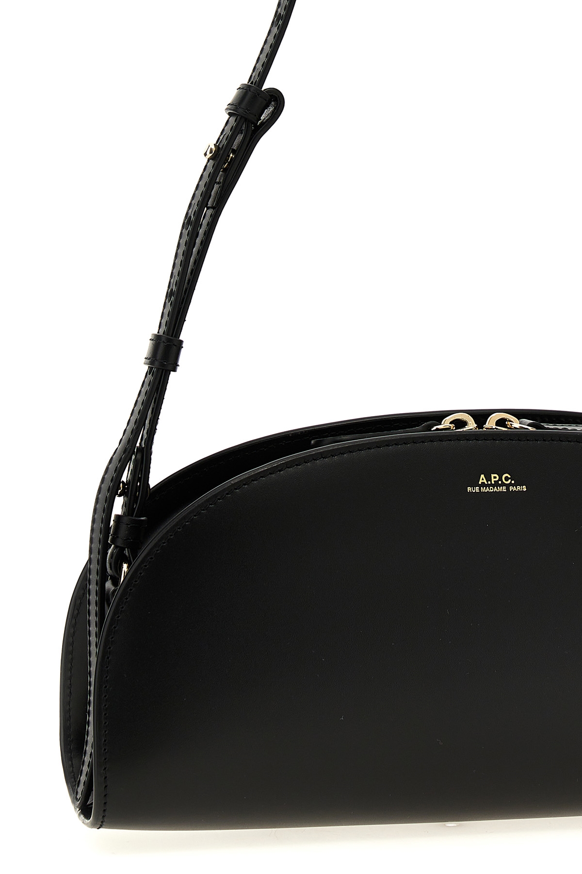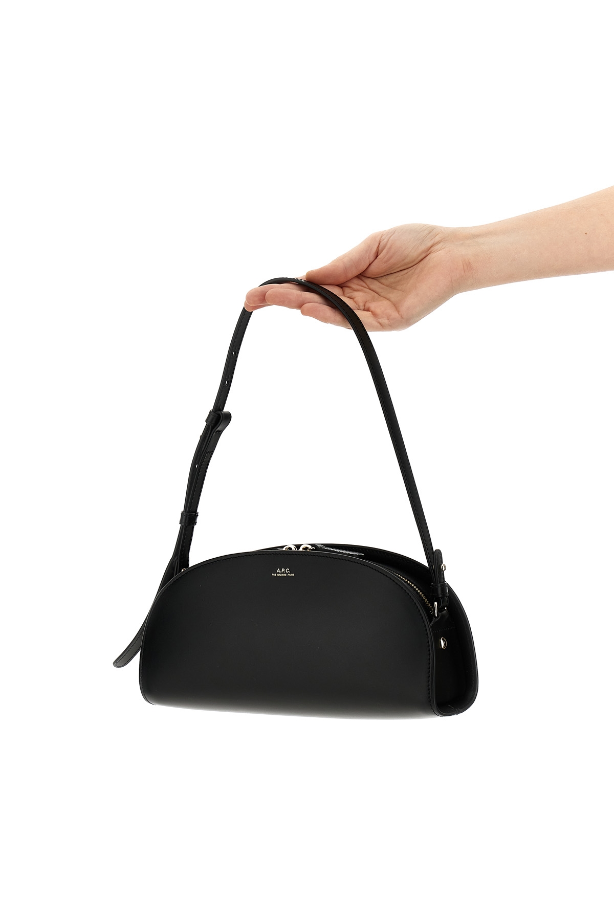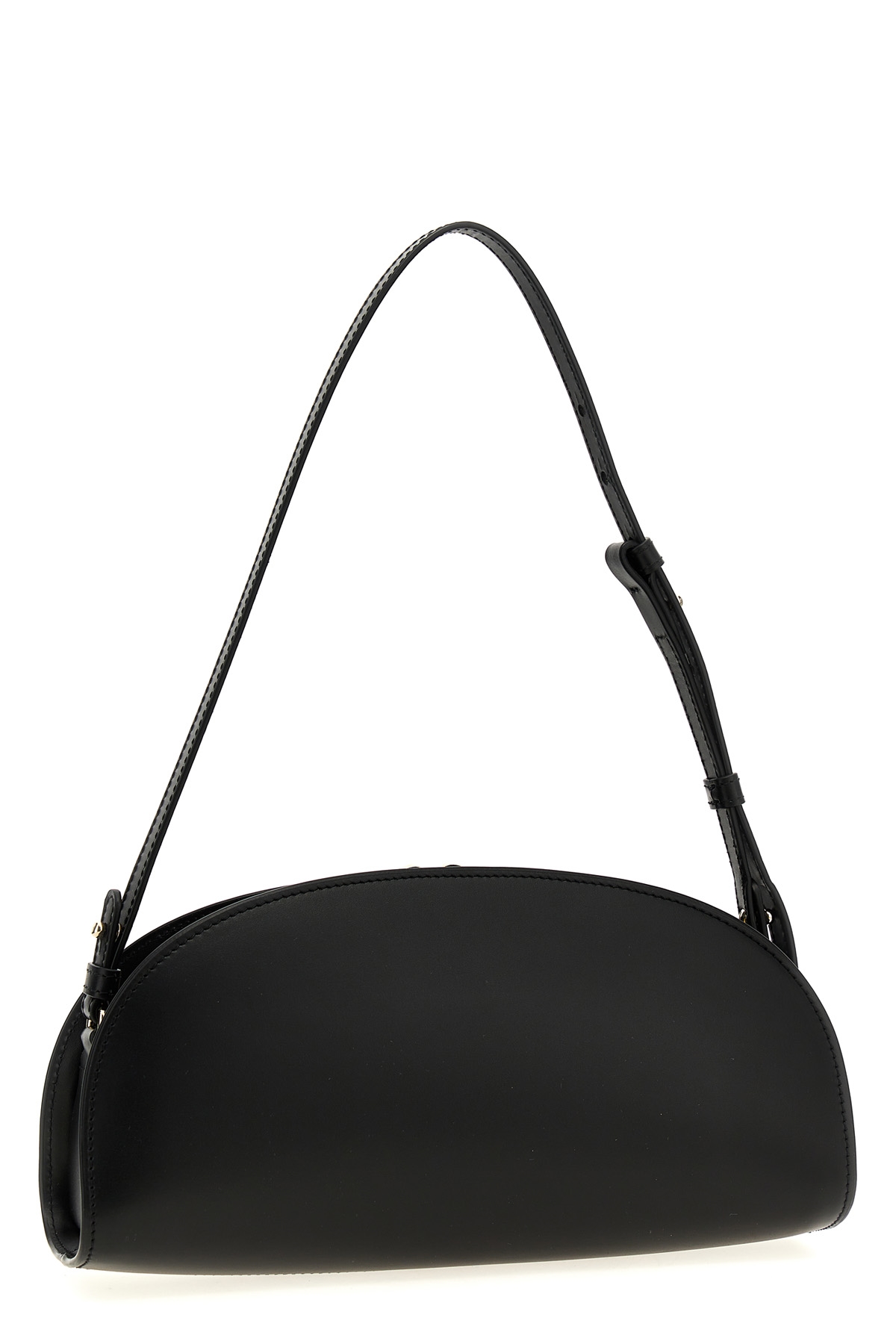 'Demi-Lune' smooth leather shoulder bag with front embossed logo, zip closure, adjustable shoulder strap.