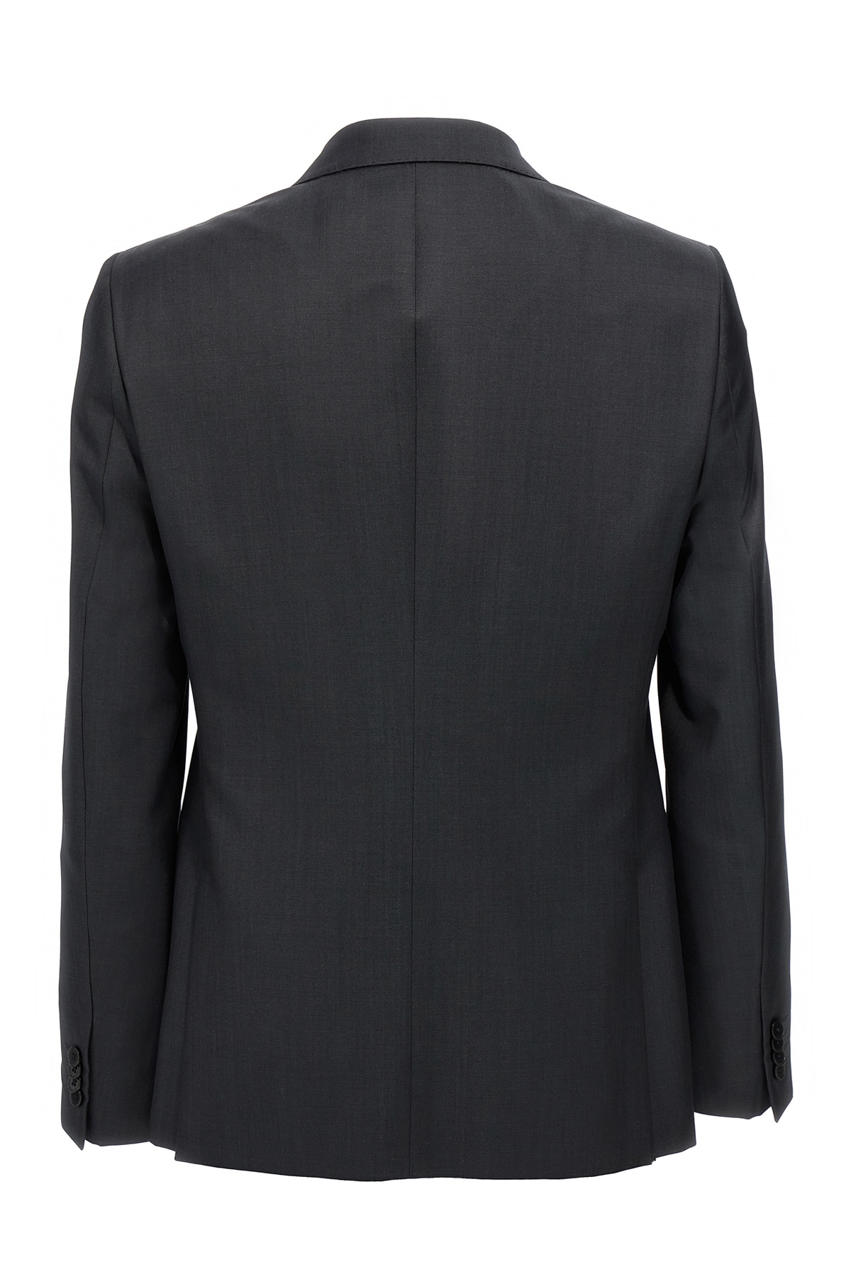 Wool and mohair dress consisting of single-breasted blazer with button closure, pockets, long sleeves, back slits and trousers with ironed pleat, hook and button zip closure, pockets.