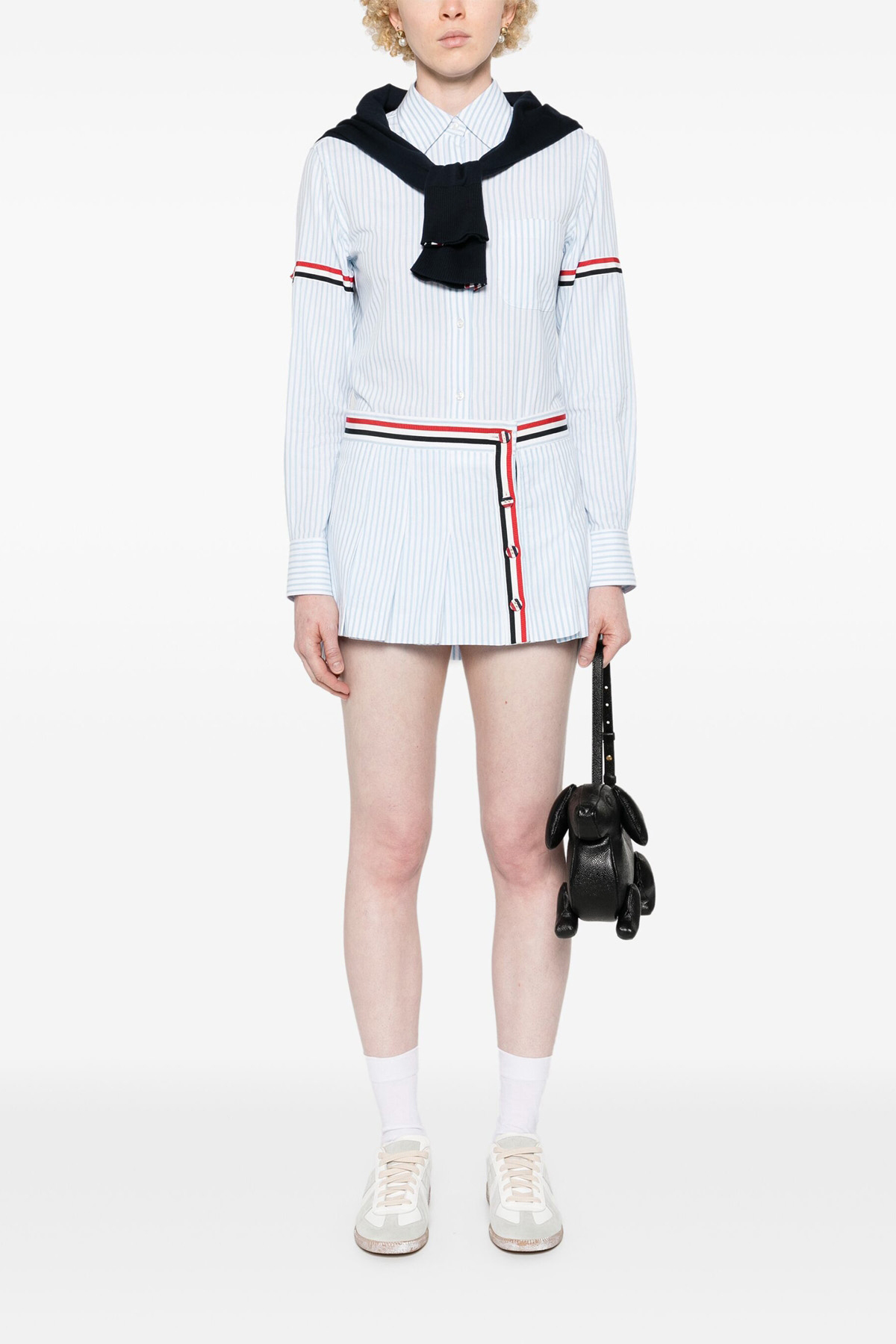 Striped Oxford cotton shirt, with flared collar, button closure, chest pocket, long cuffed sleeves, striped grosgrain details and a front logo patch.