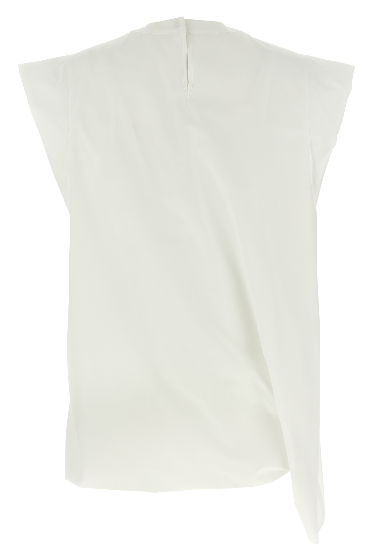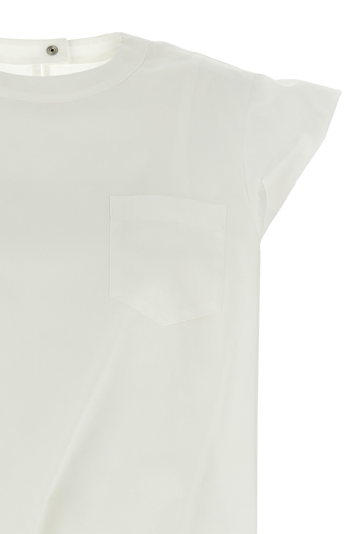 'Cotton Poplin Pullover' blouse in cotton poplin with short sleeves, back cut-out detail with snap button closure, pocket, side zip closure.