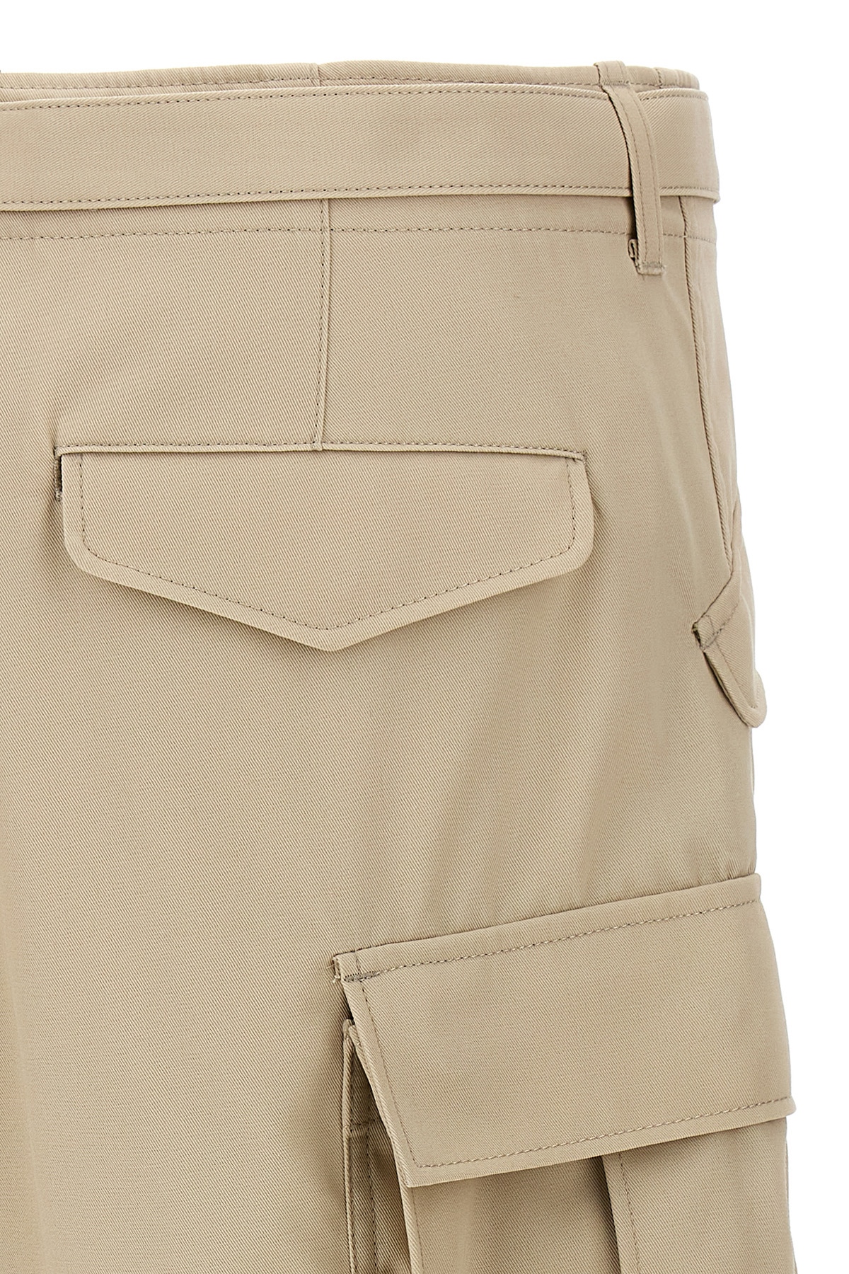 Bermuda shorts in cotton twill, model with cargo pockets with tape details, zip and button closure, adjustable and removable belt, pockets.