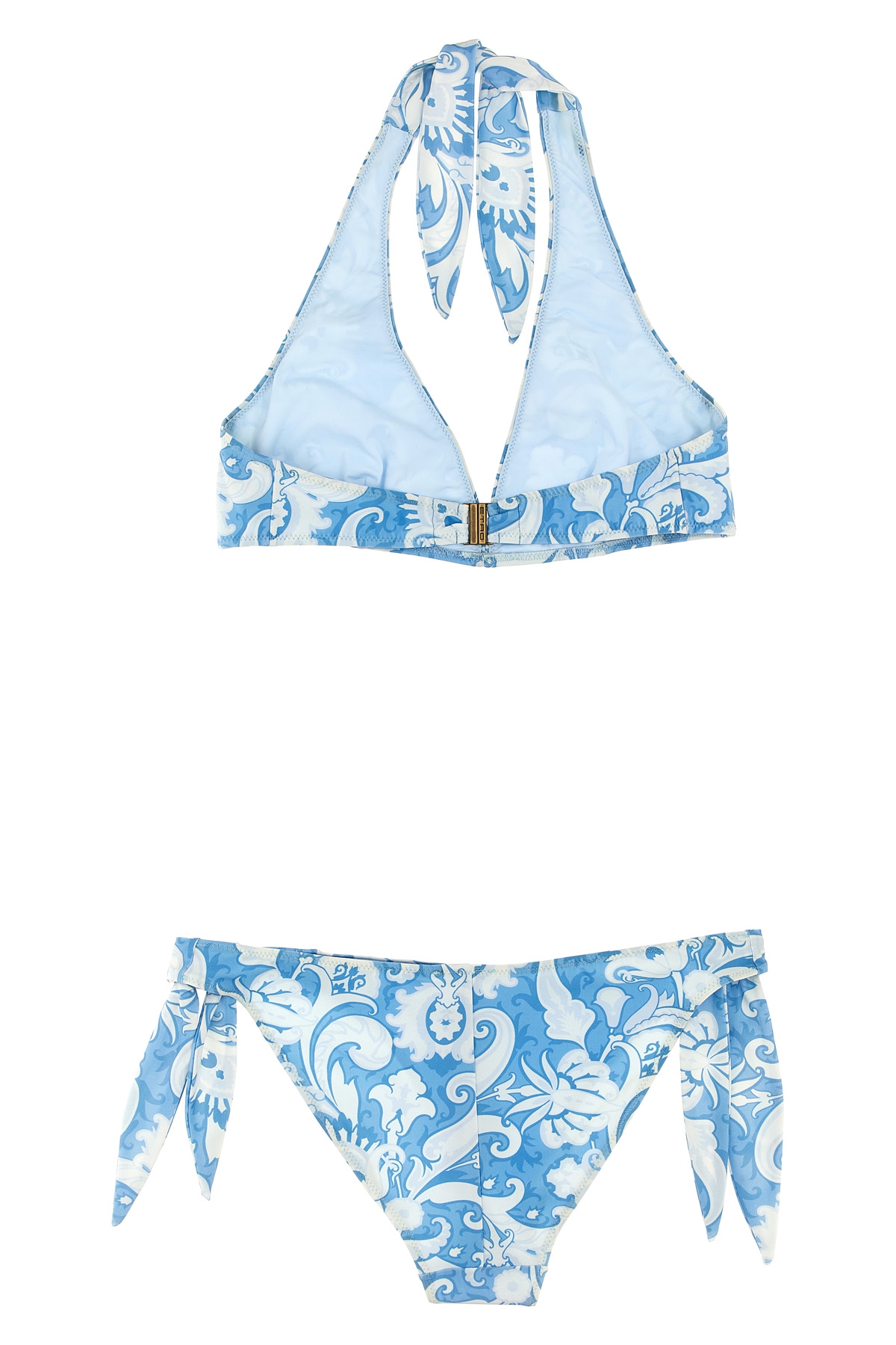 Floral Paisley print stretch bikini, triangle top with adjustable neck and hook at the back, briefs with adjustable laces.