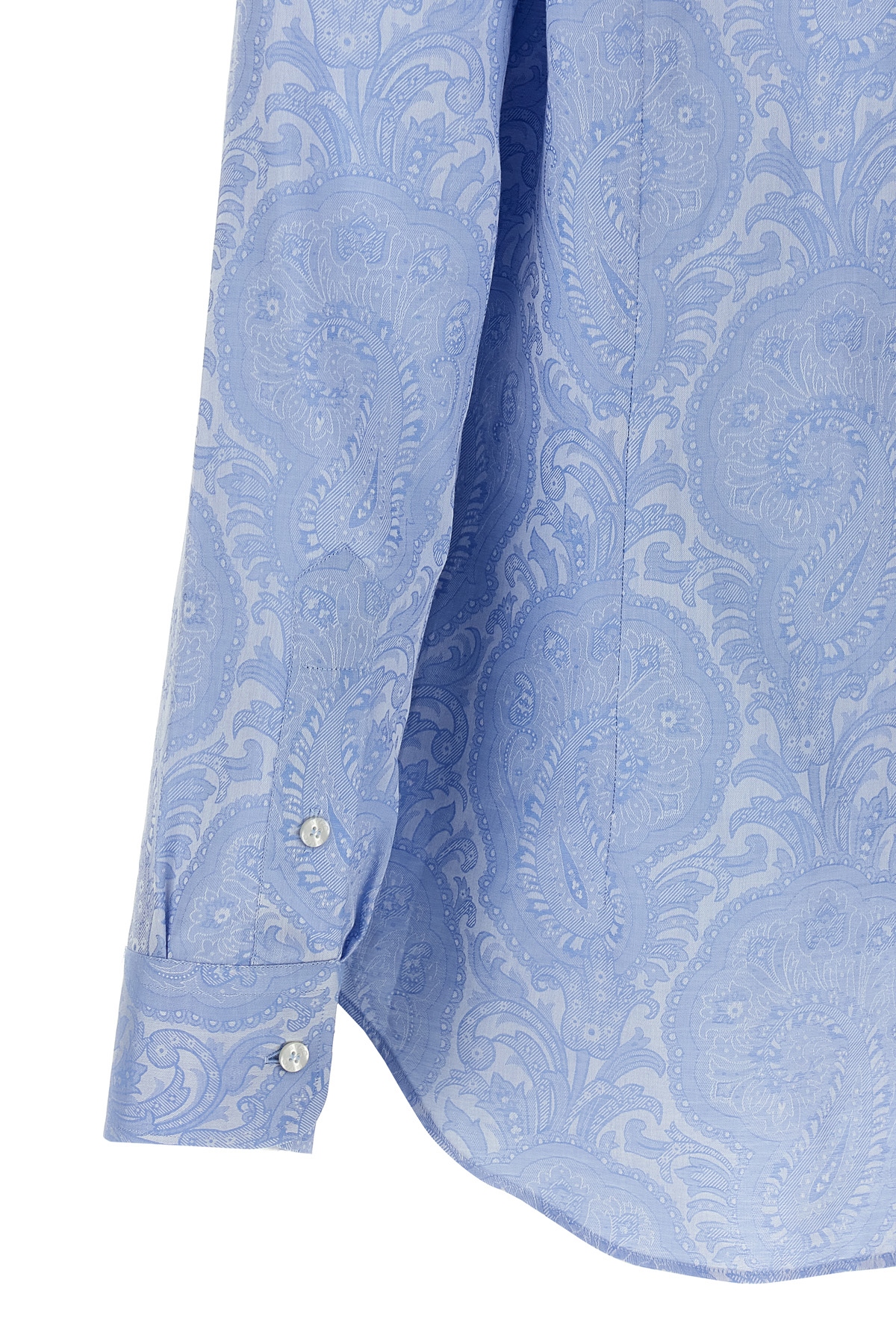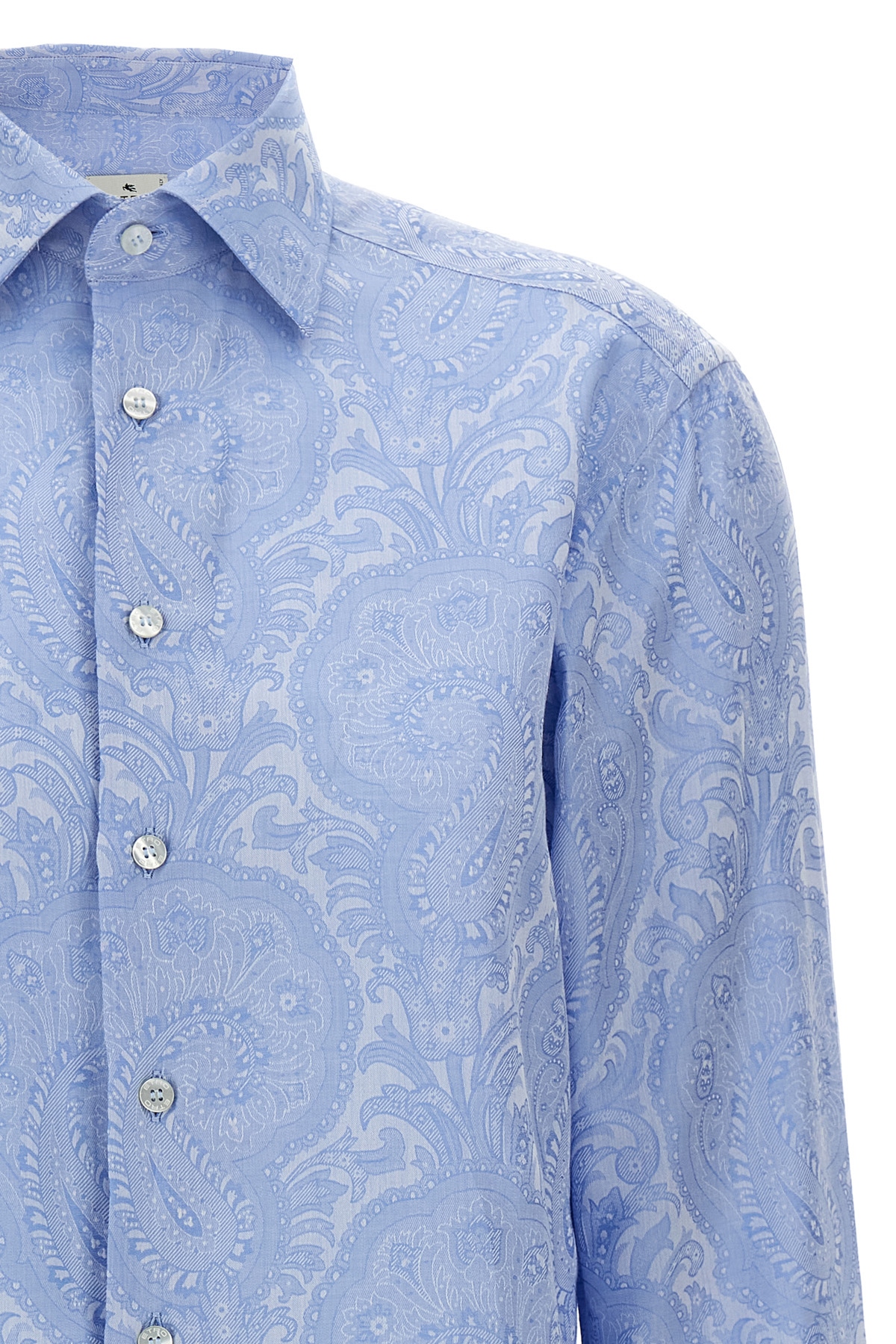 Tone-on-tone Paisley print cotton shirt, button closure, long cuffed sleeves.