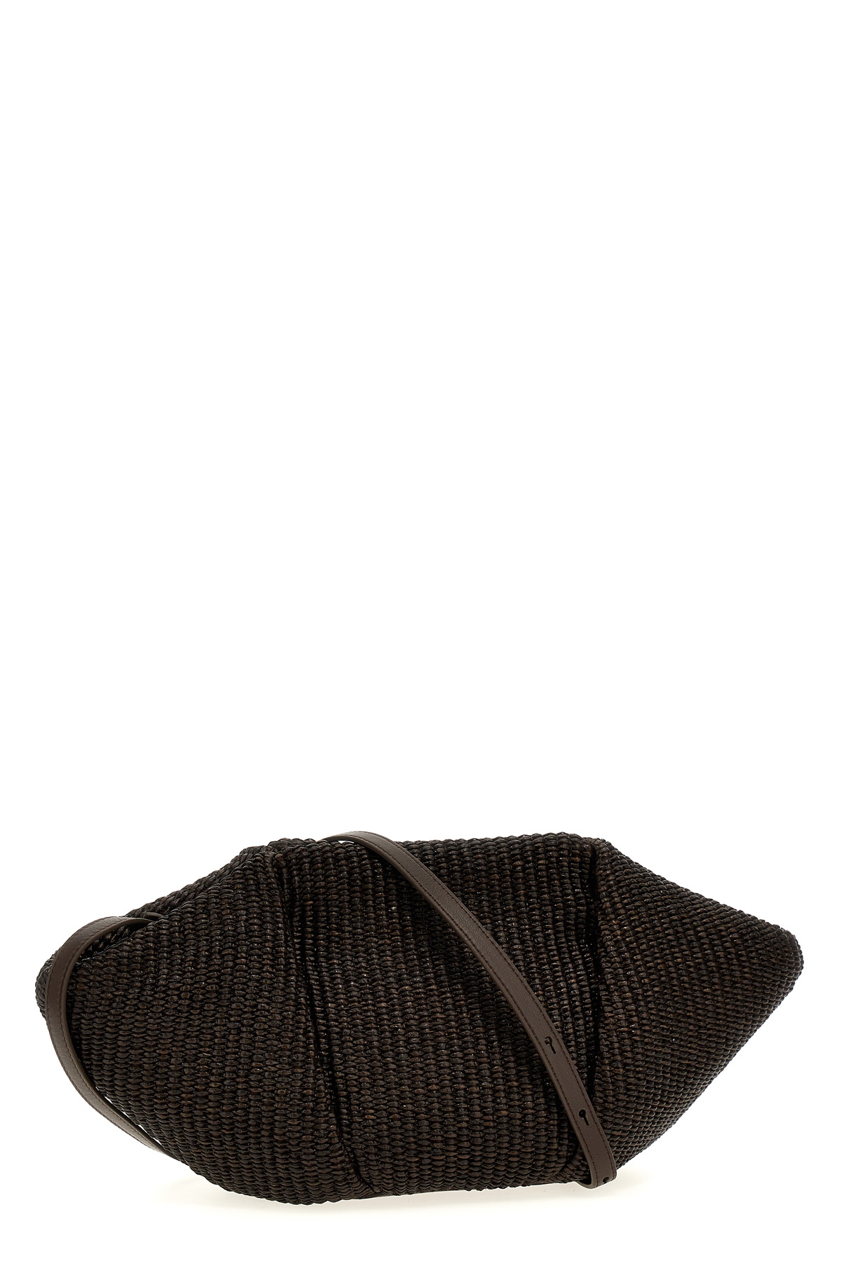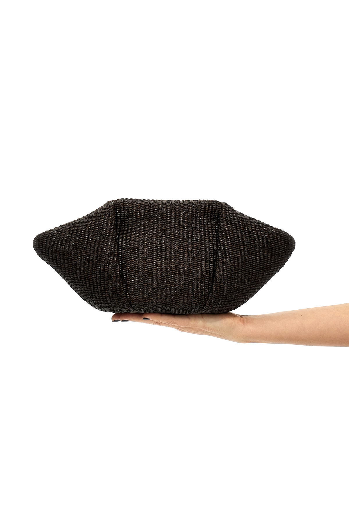 Braided raffia clutch bag, magnetic closure, adjustable and removable leather shoulder strap.