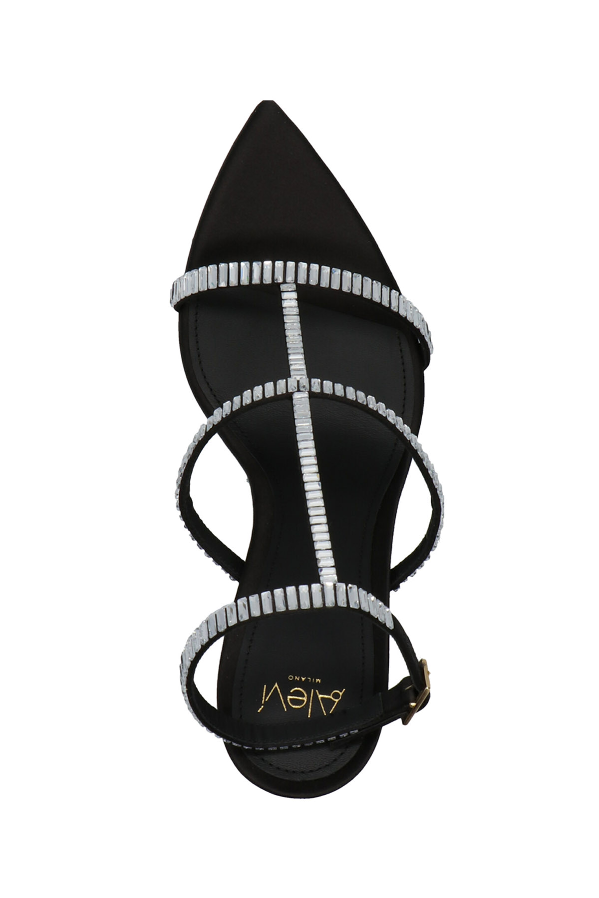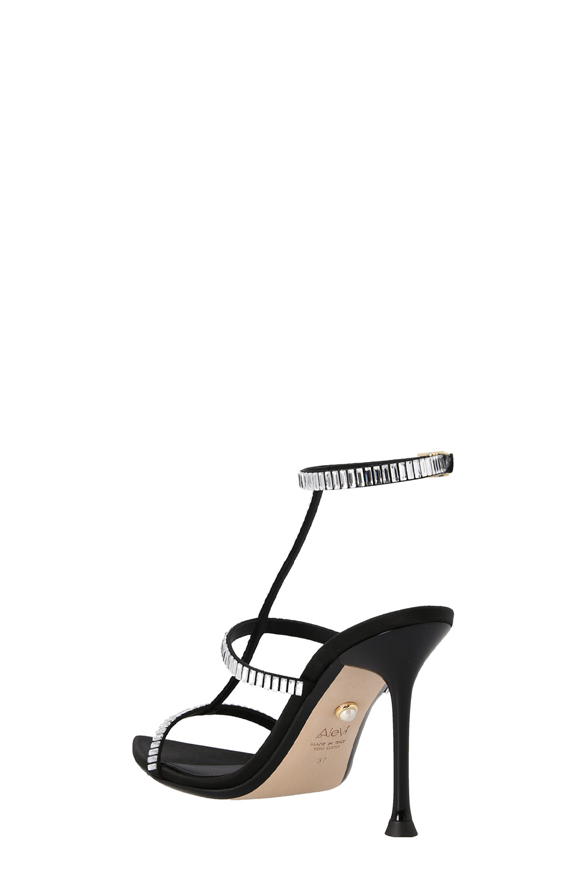 Lisa' gloss satin sandals with ankle straps, heel and crystal detail.