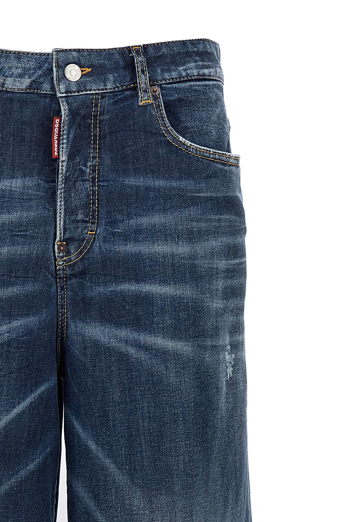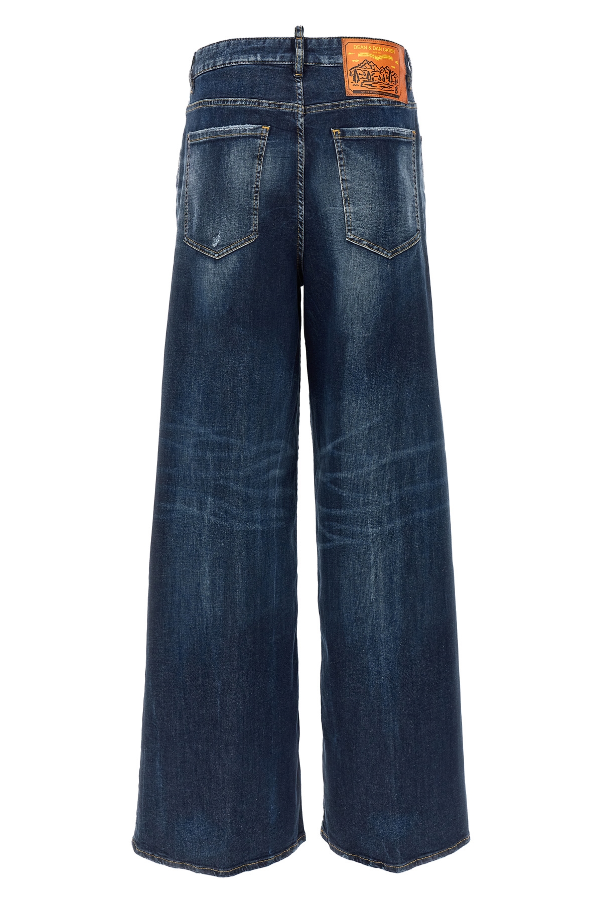'Traveller' stretch cotton denim jeans with very wide leg, high waist and button closure.