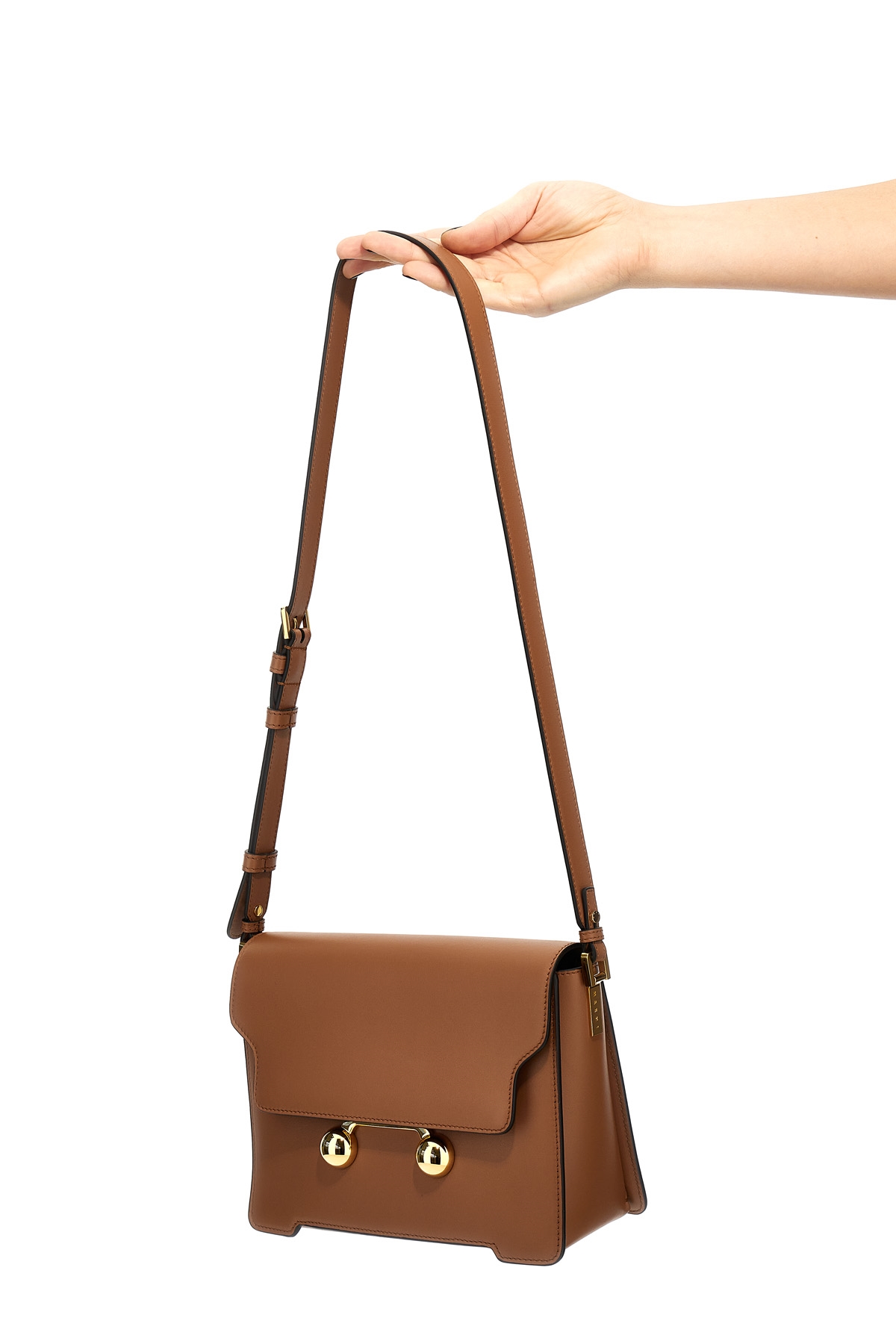 'Trunkaroo' medium leather shoulder bag, magnetic flap closure, front metal detail application, adjustable and removable shoulder strap.