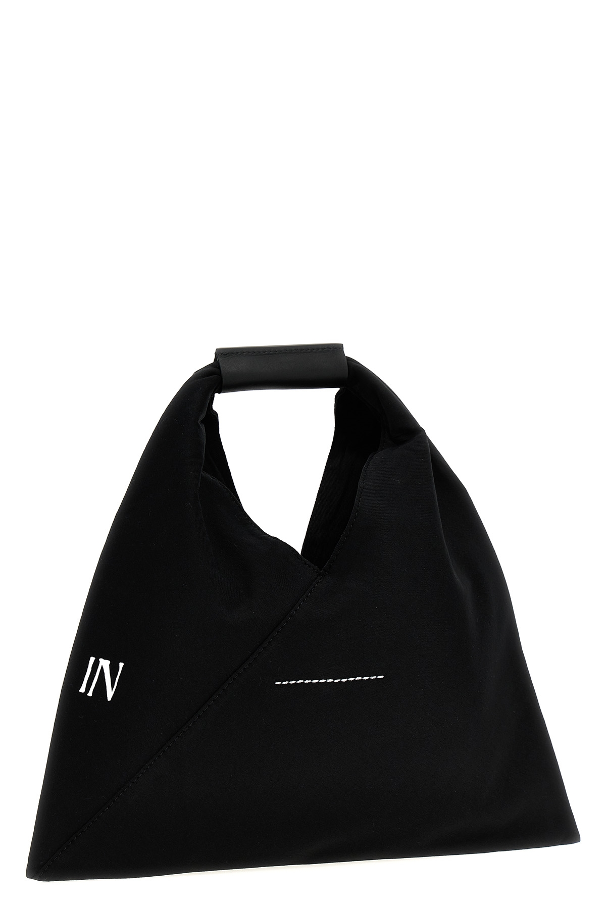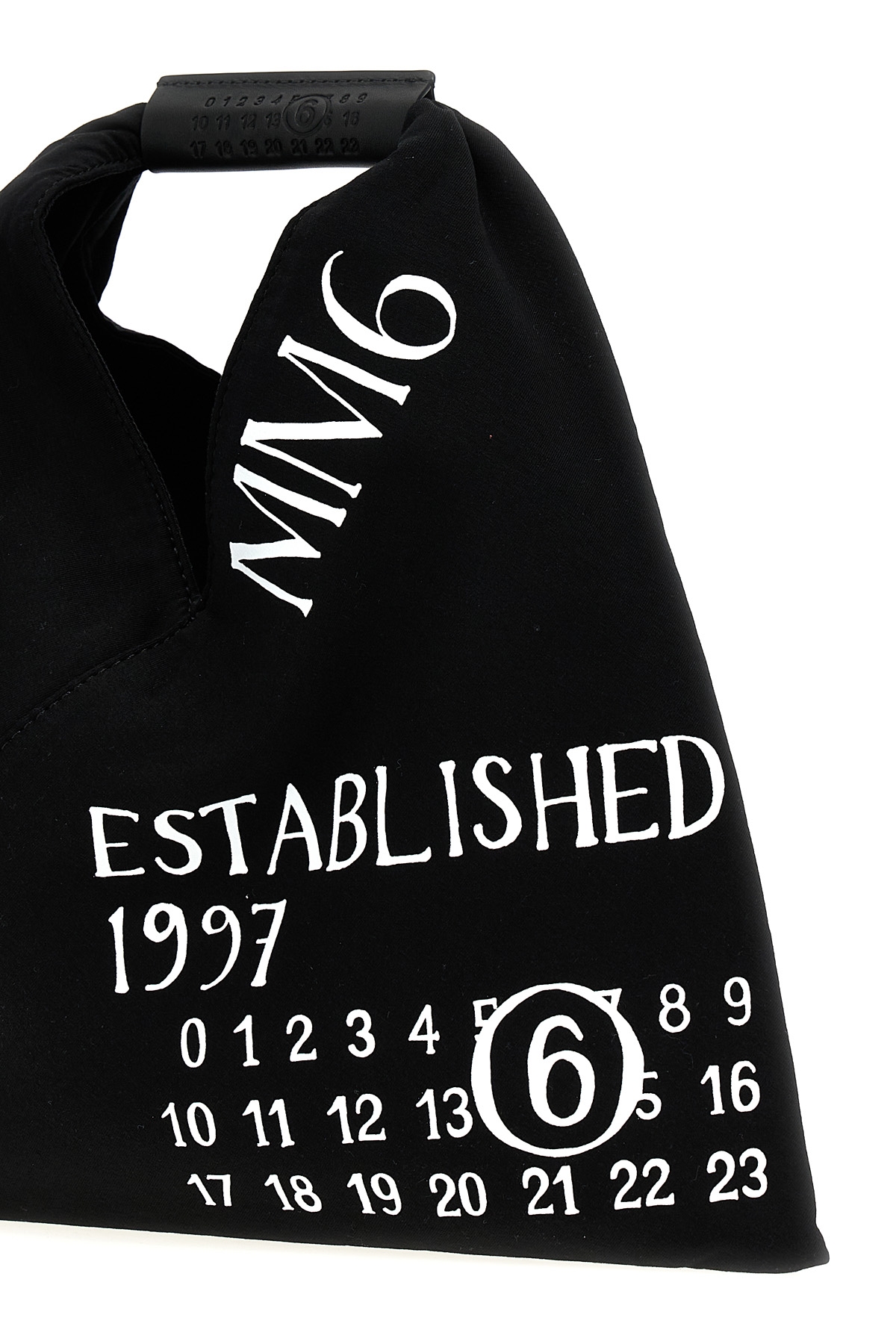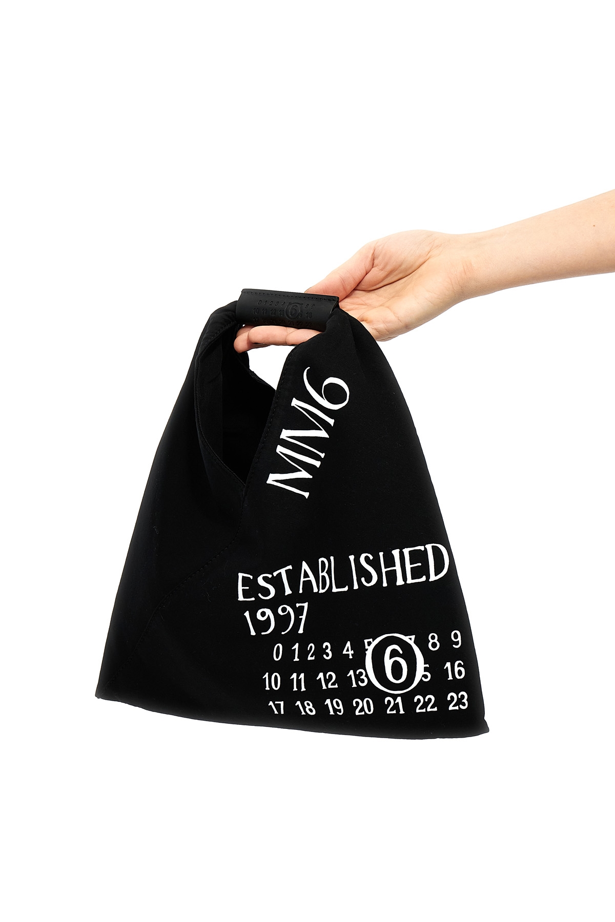 'Mini Japanese' cotton handbag with contrast print, fixed leather handle with embossed 'Numeric signature MM6' logo, Snap button closure, 'White stitch line' at the back.