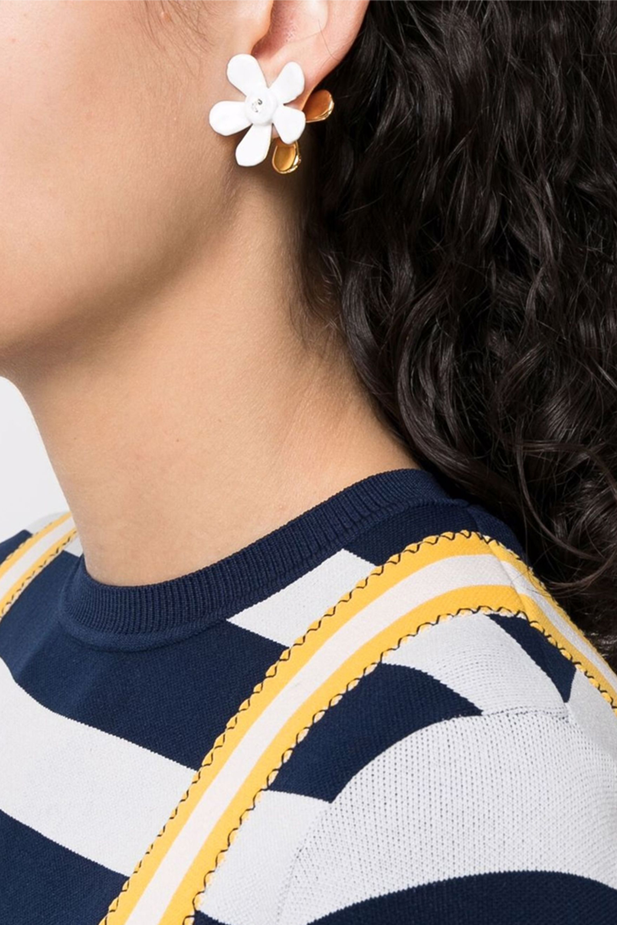 Flower Pop' earrings in enamelled metal with rhinestones set in the center. ITEM CANNOT BE RETURNED