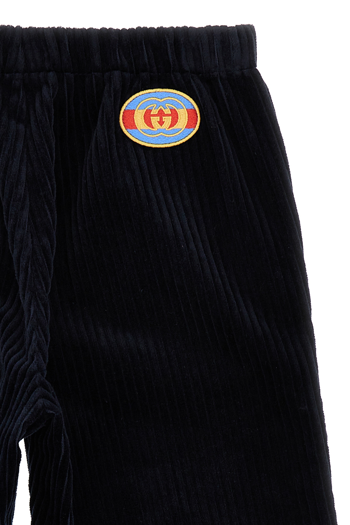 JULIAN KIDS Corduroy pants with elastic waistband, front strap detail, pockets, and embroidered logo on the back.