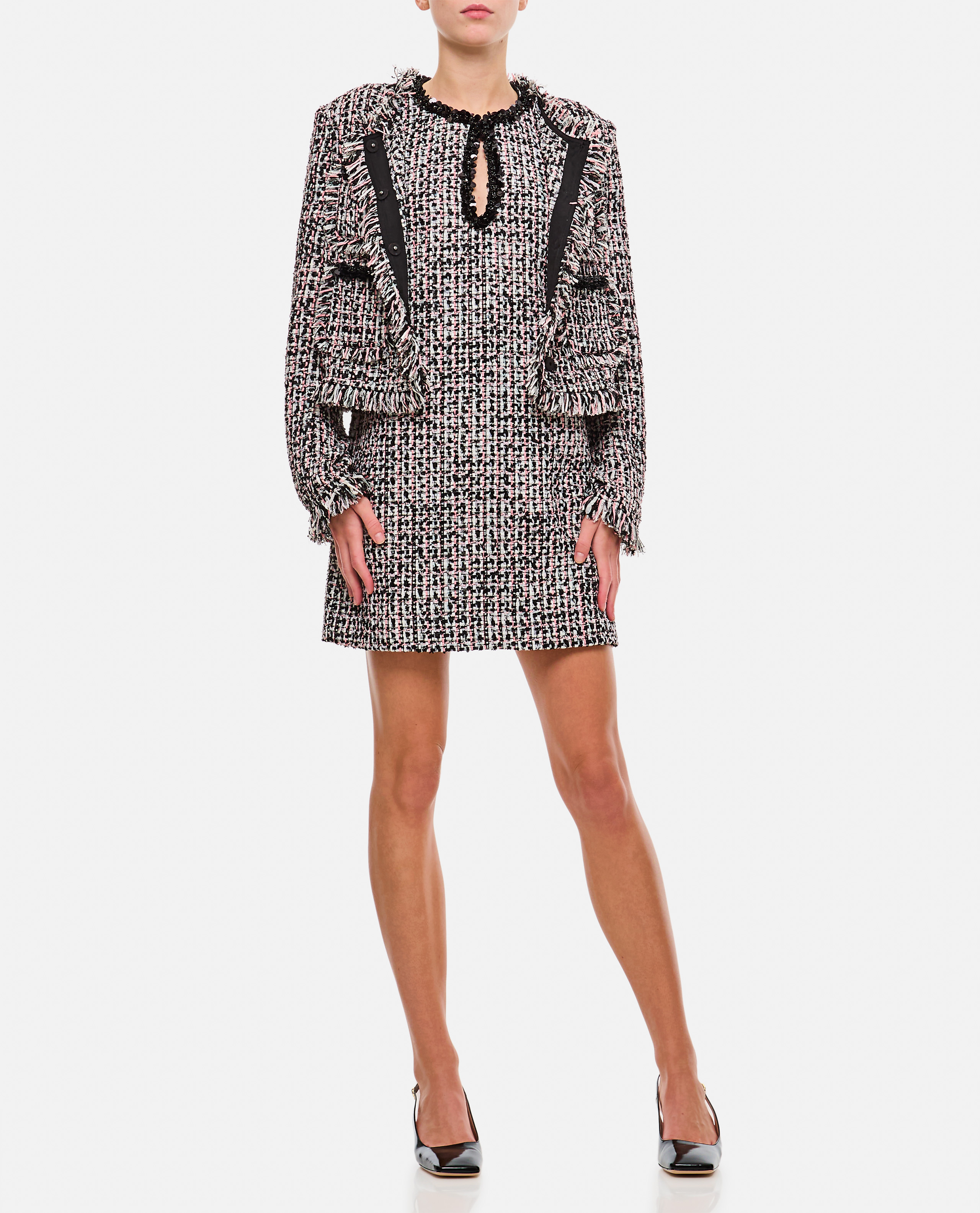 > 블랙 부클 장식 미니 드레스
