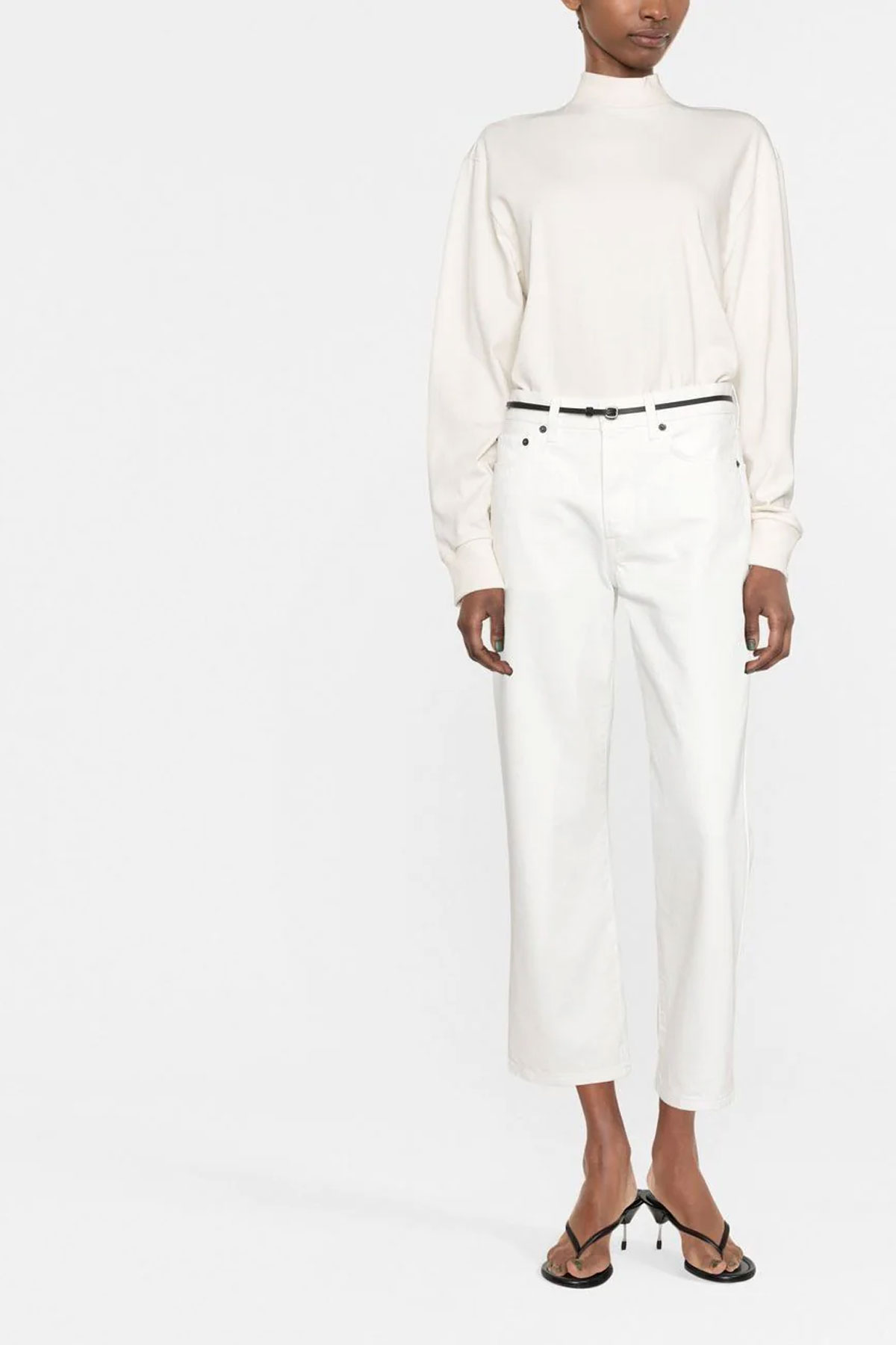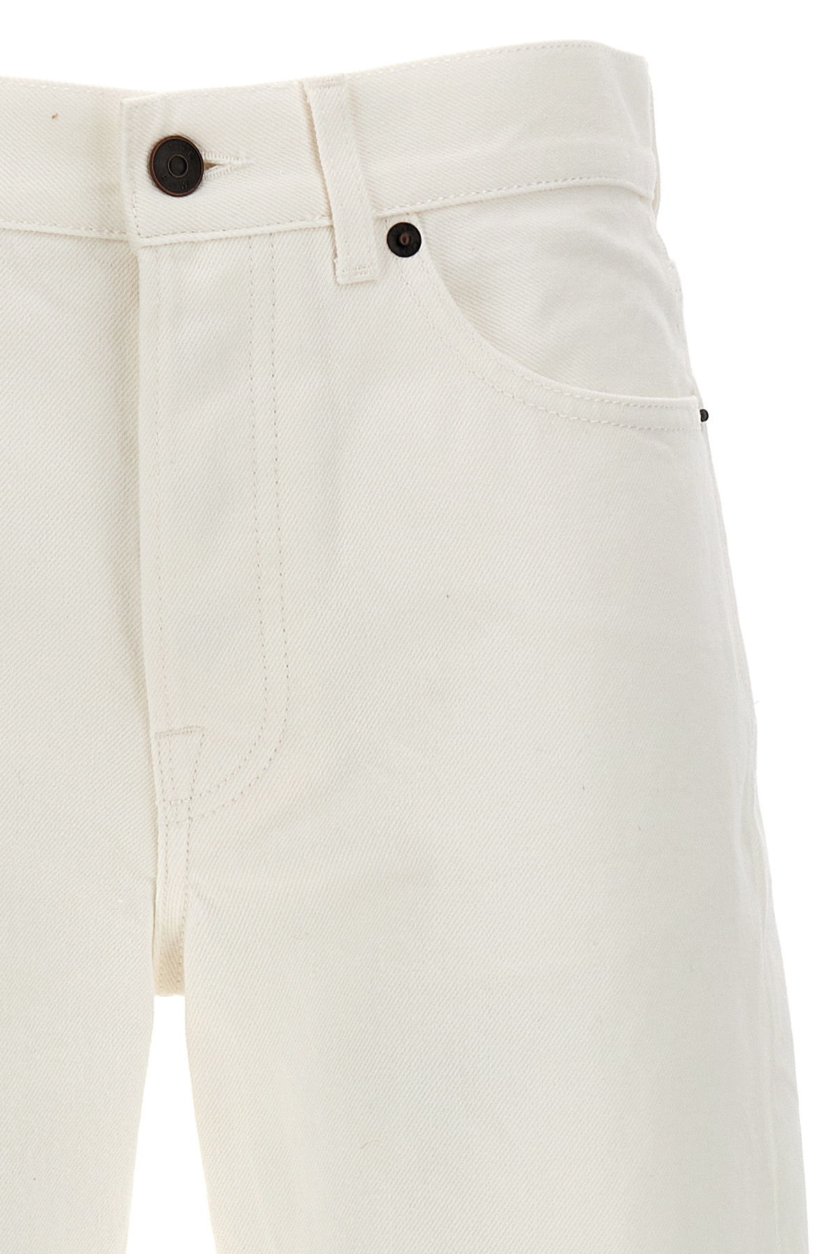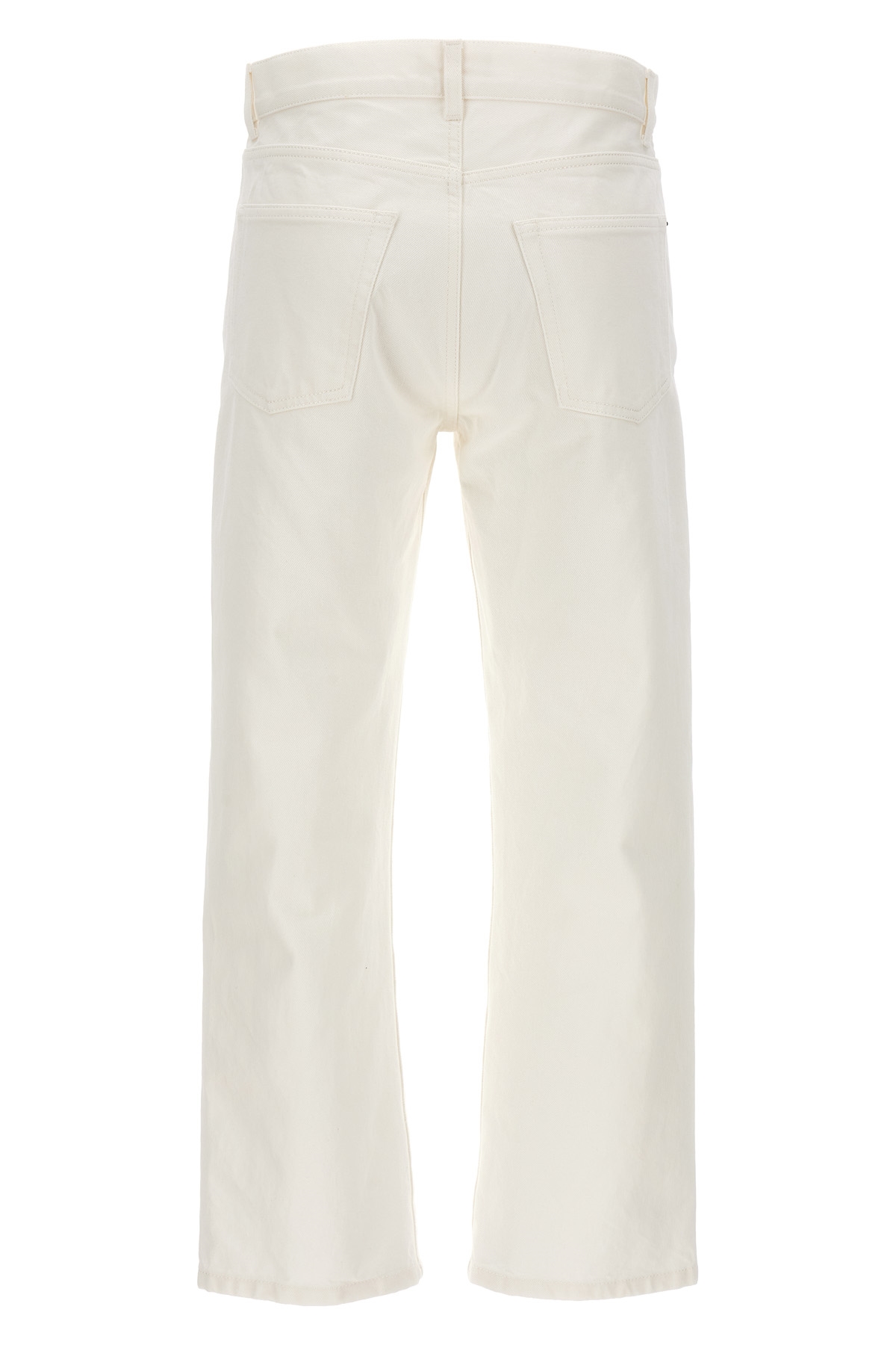 The Row denim jeans with button closure and straight leg.