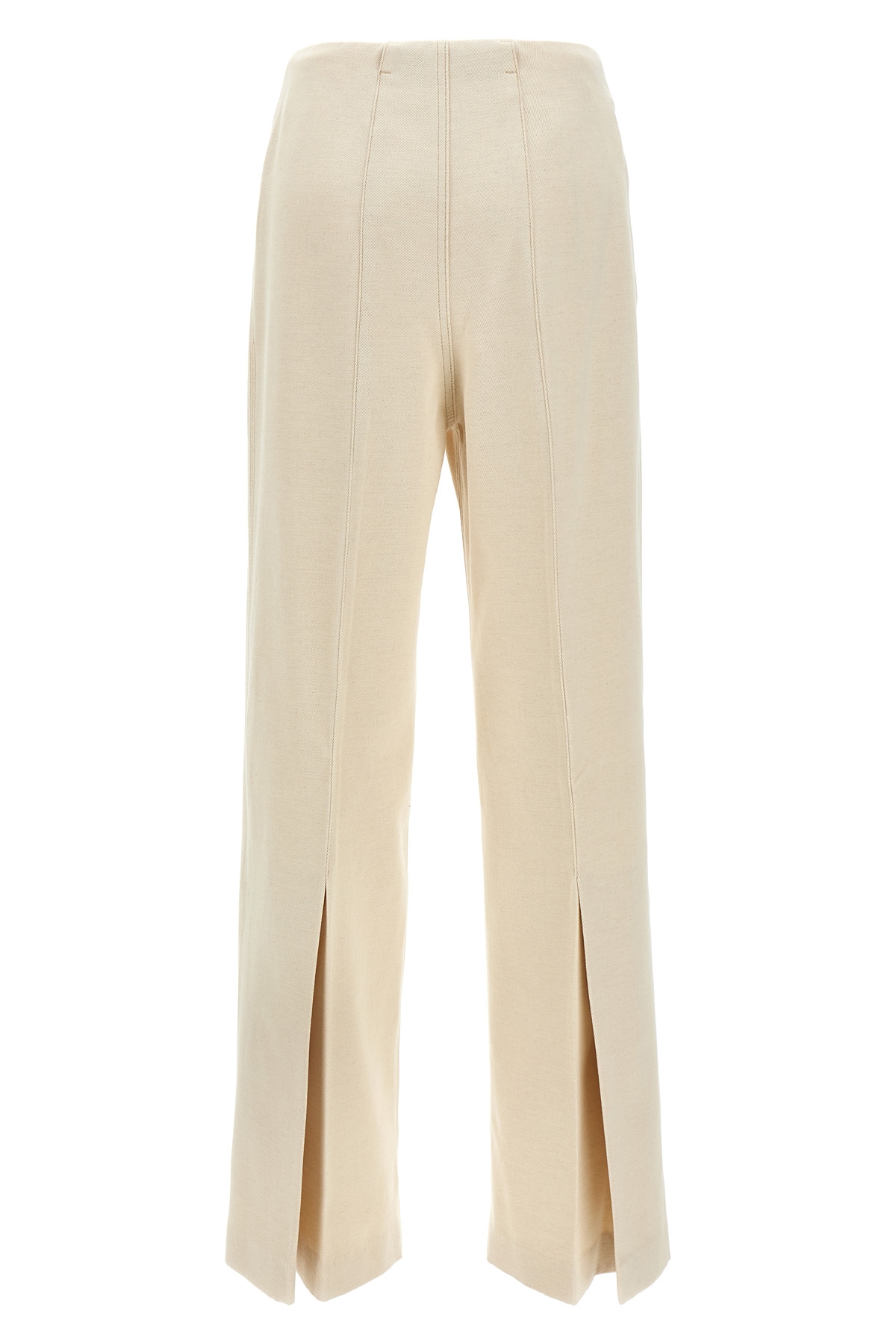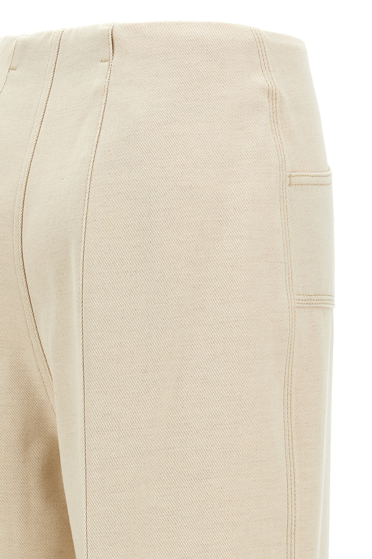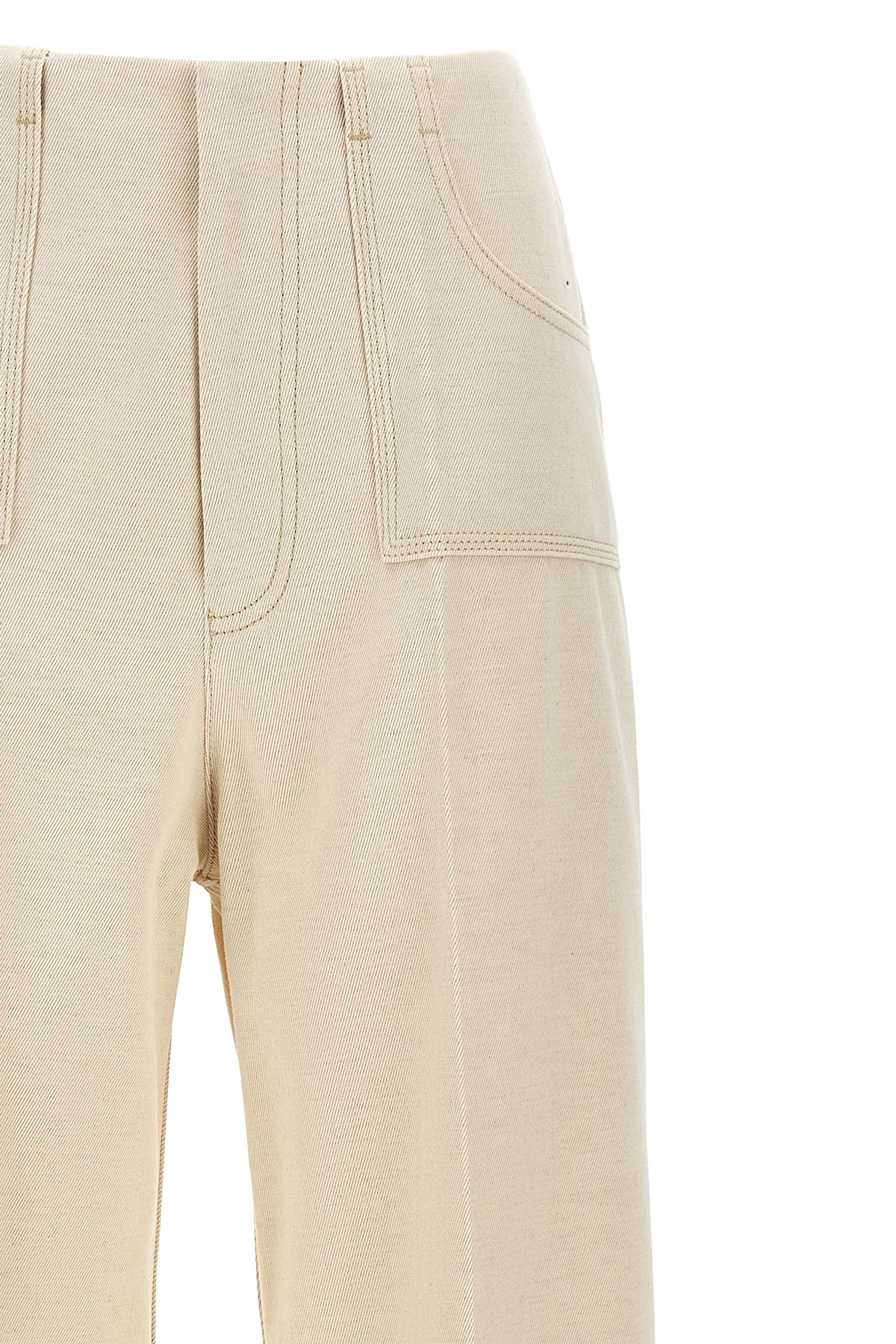 Cotton blend canvas pants, straight wide-leg design, hidden zip and hook closure, pockets.