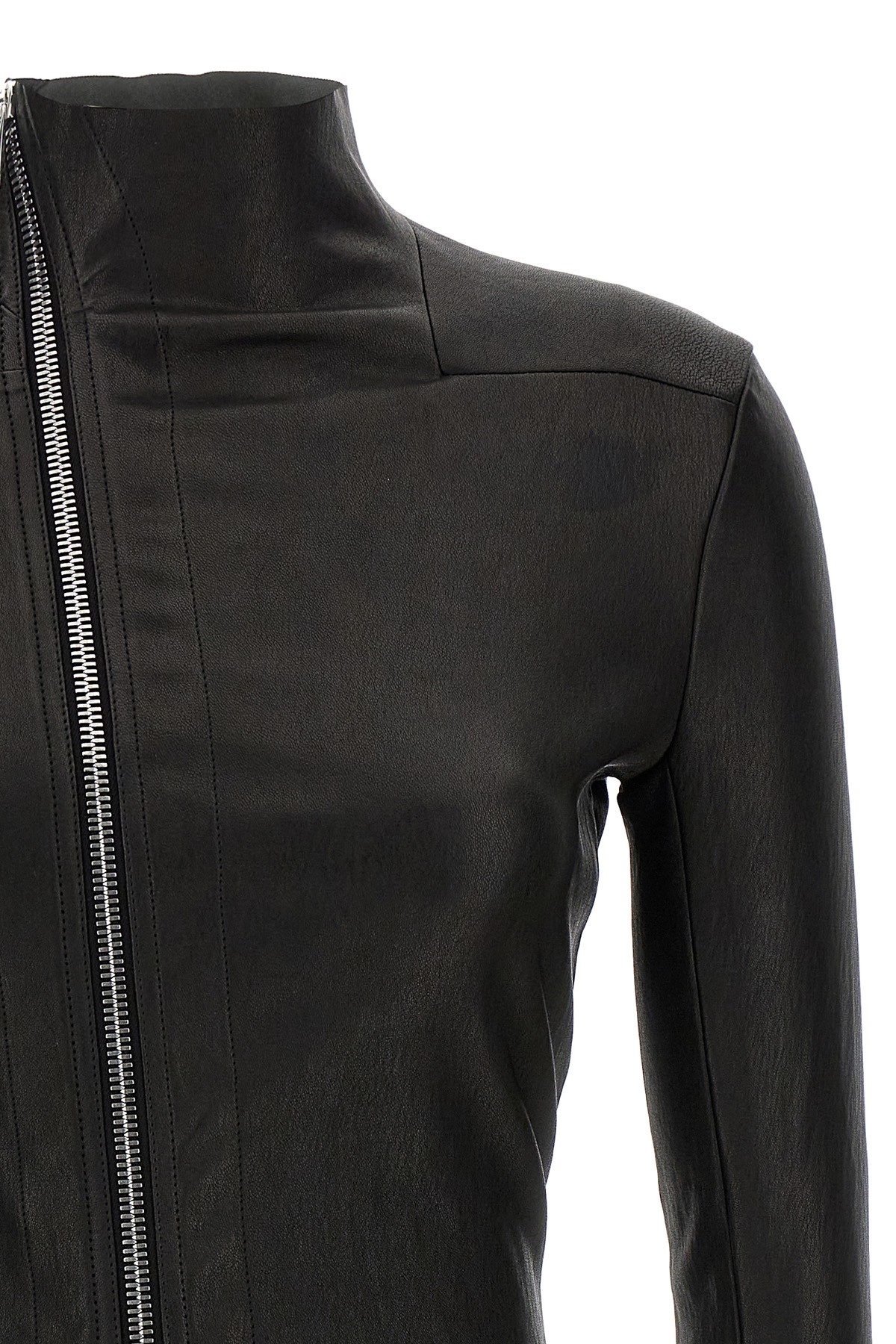'Gary Jacket' stretch leather jacket with asymmetric front closure with metal zip.
