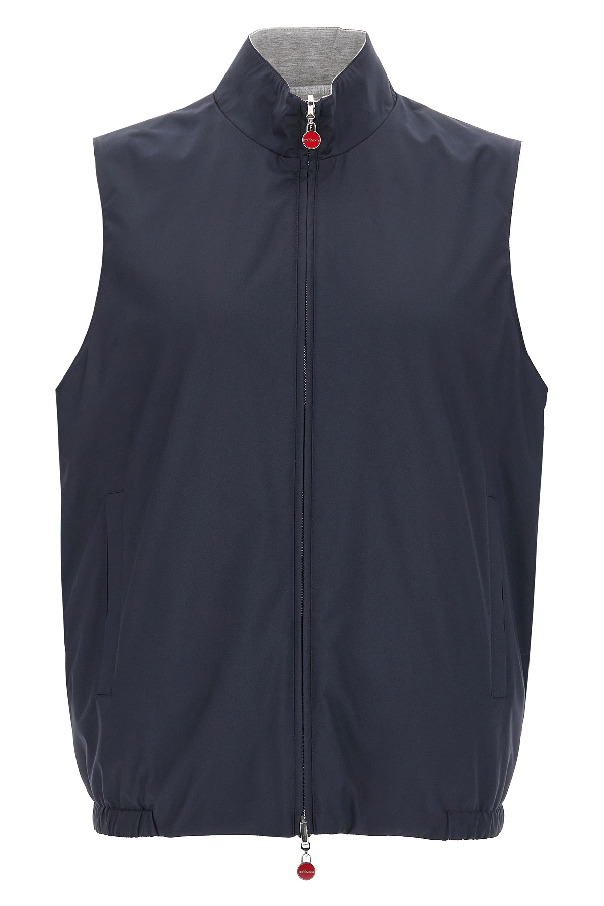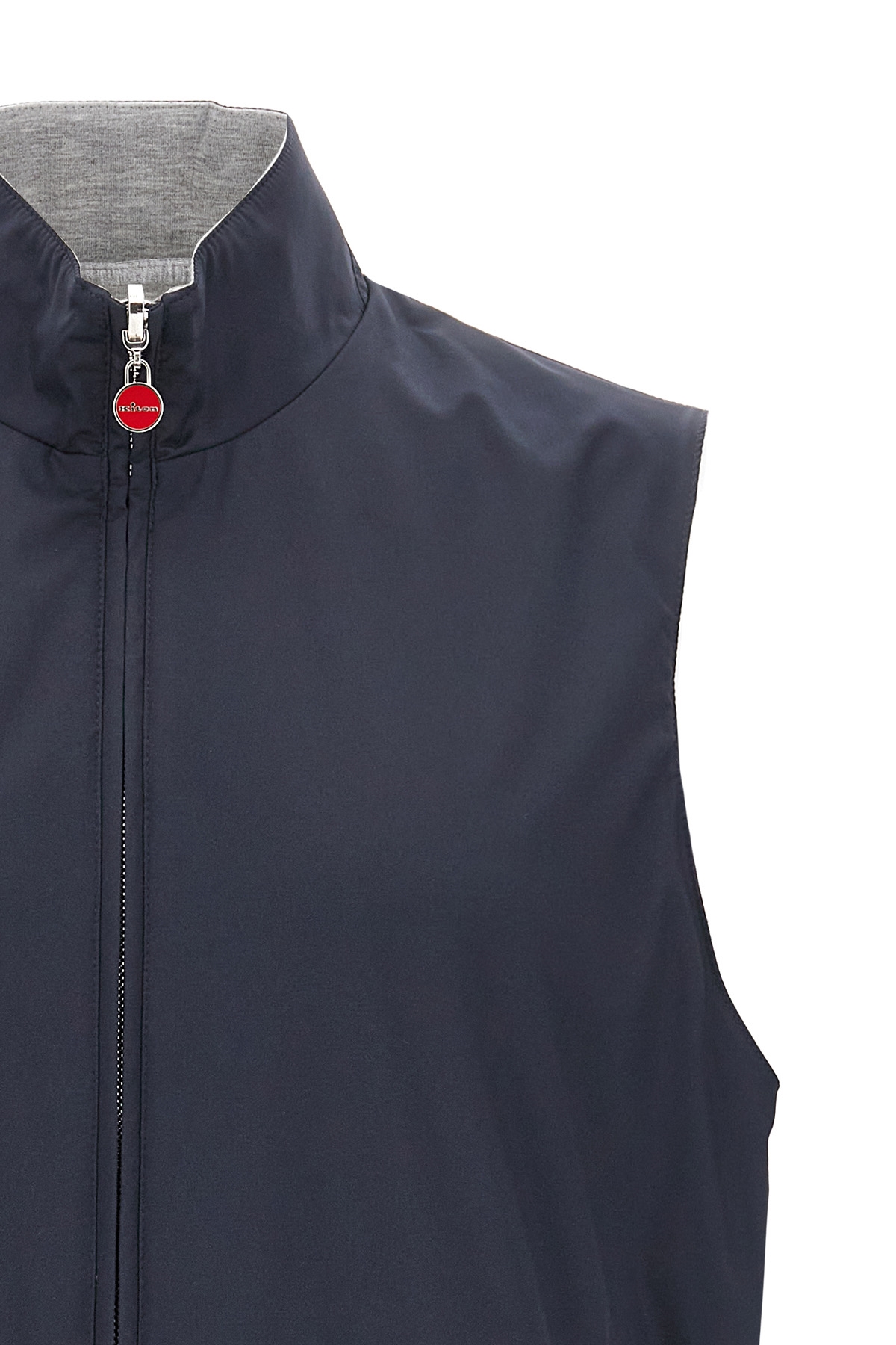 Reversible vest in windproof fabric and jersey, zip closure, logo puller, elastic hem, side pockets.