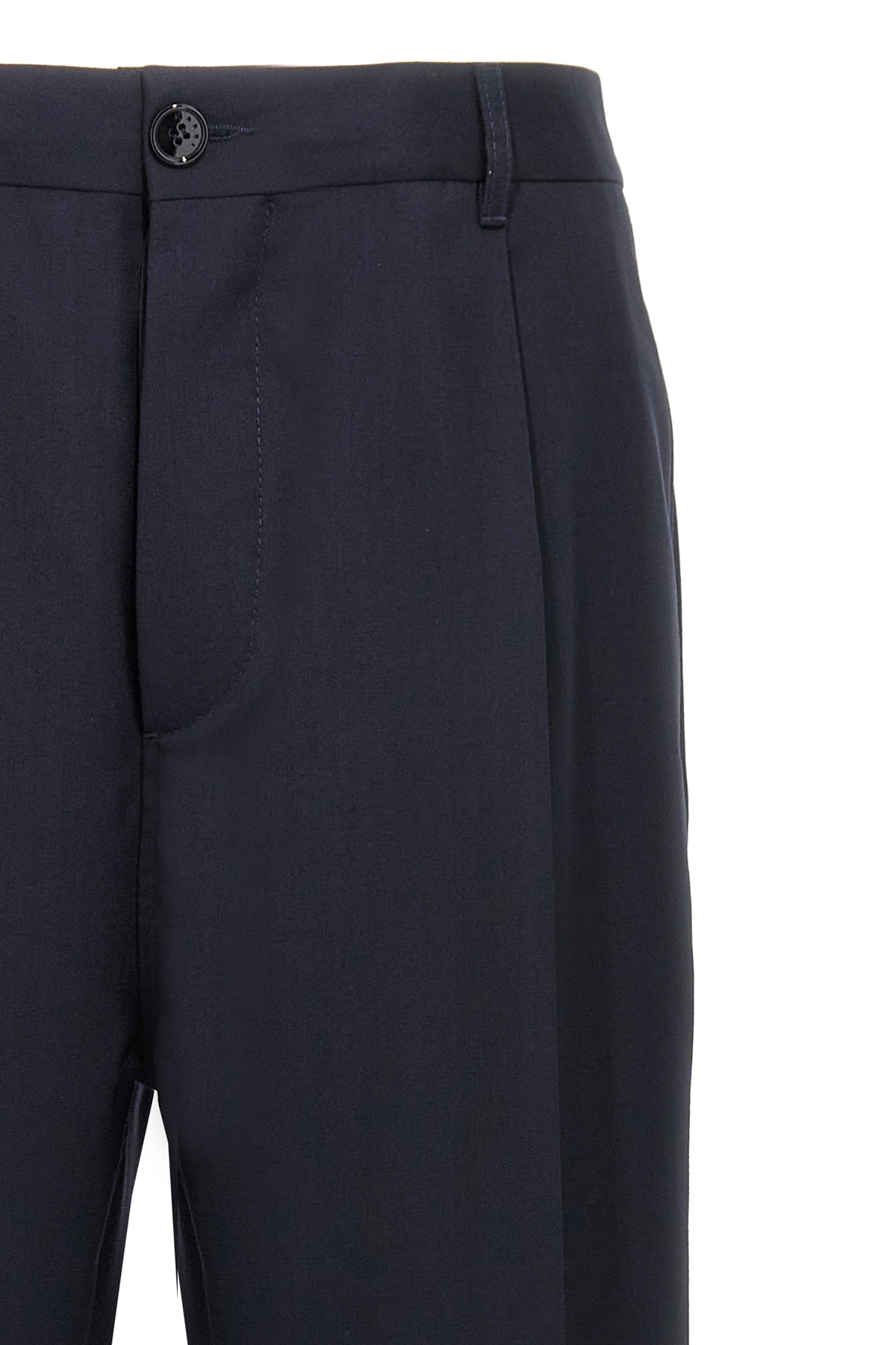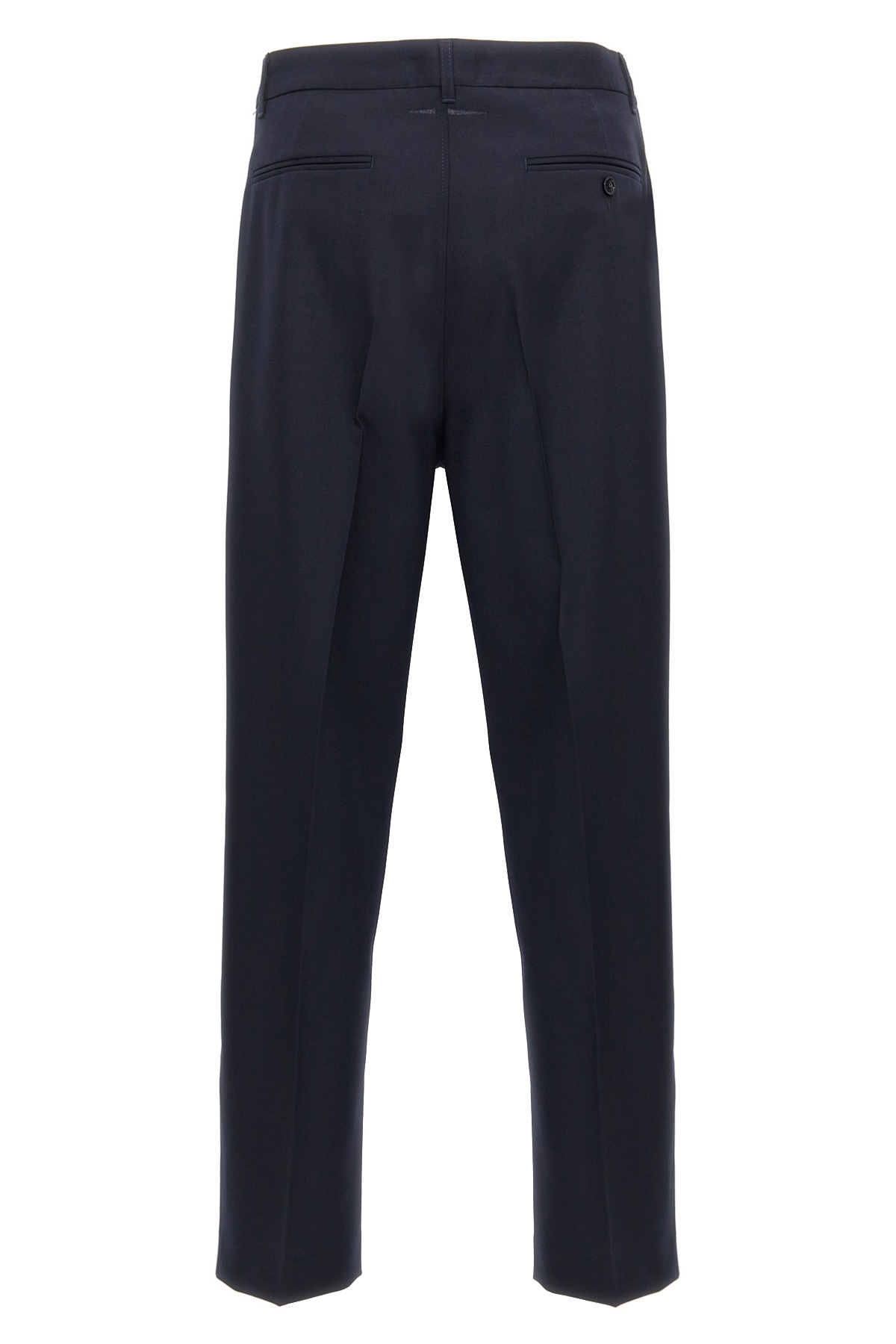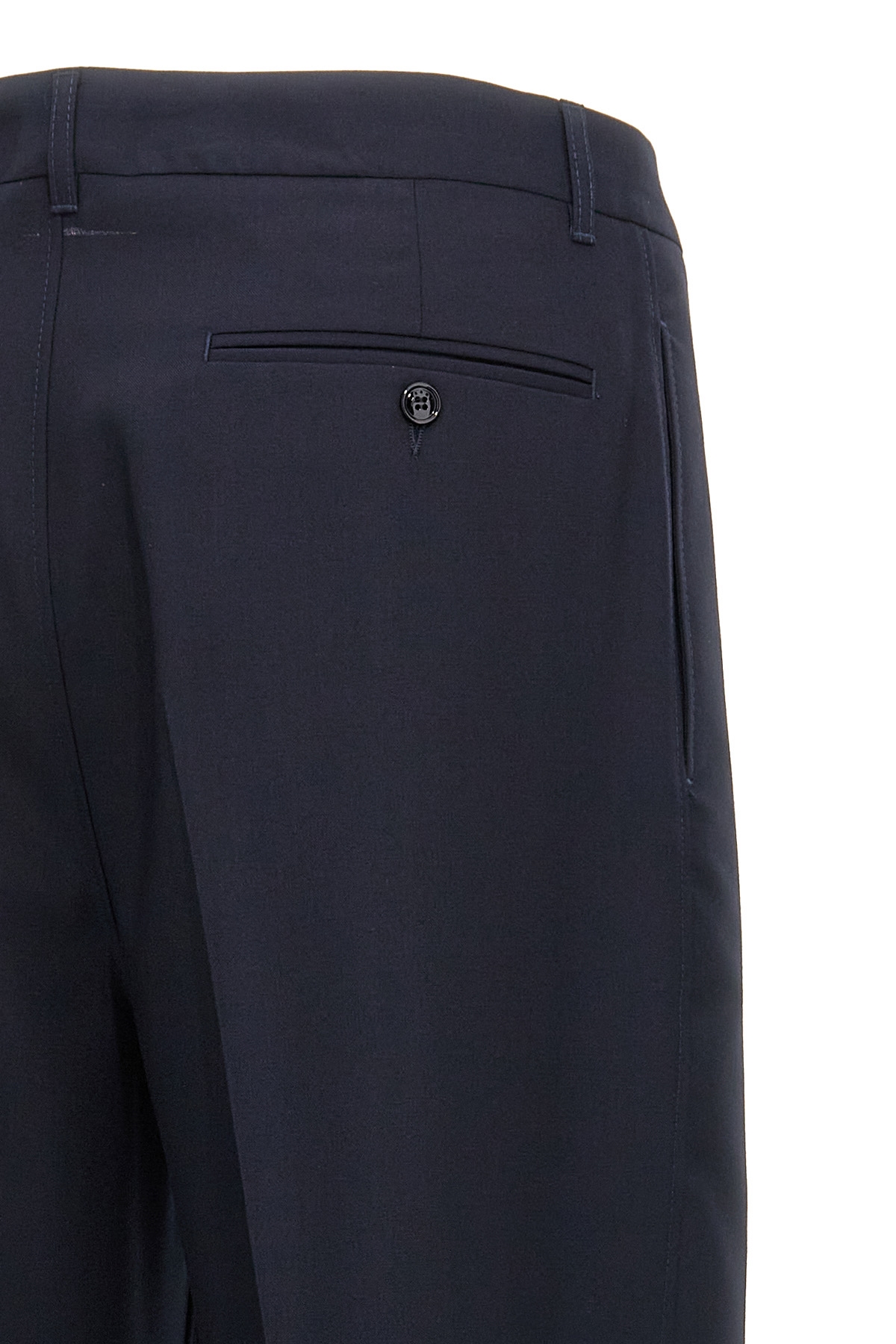 Virgin wool trousers, straight leg with stretched crease, button closure, pockets.