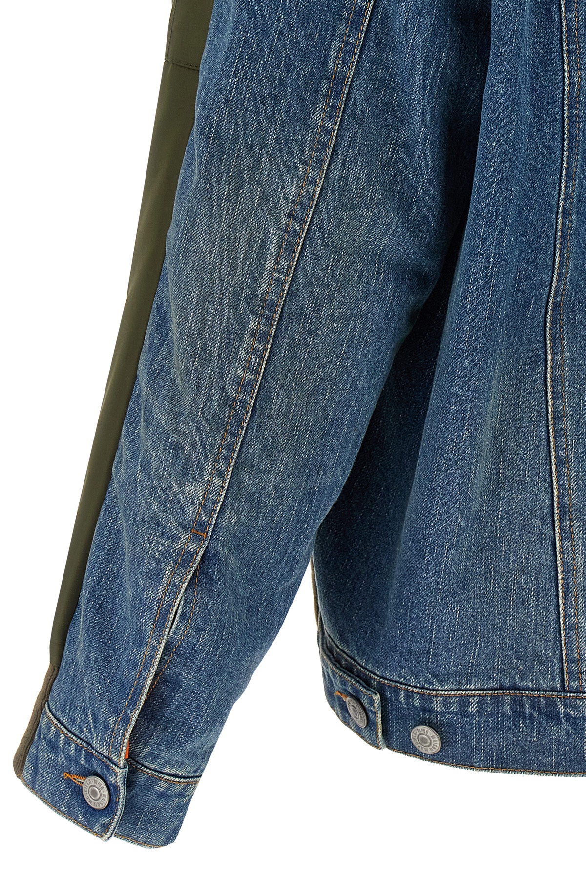 Two-material bomber jacket in nylon and used-effect cotton denim with lining, front 'Numeric signature MM6' embroidery, zip closure, pockets, back 'White stitch line', long sleeves with cuffs.