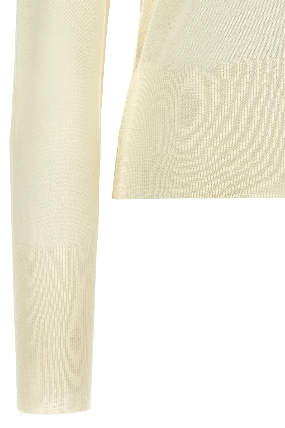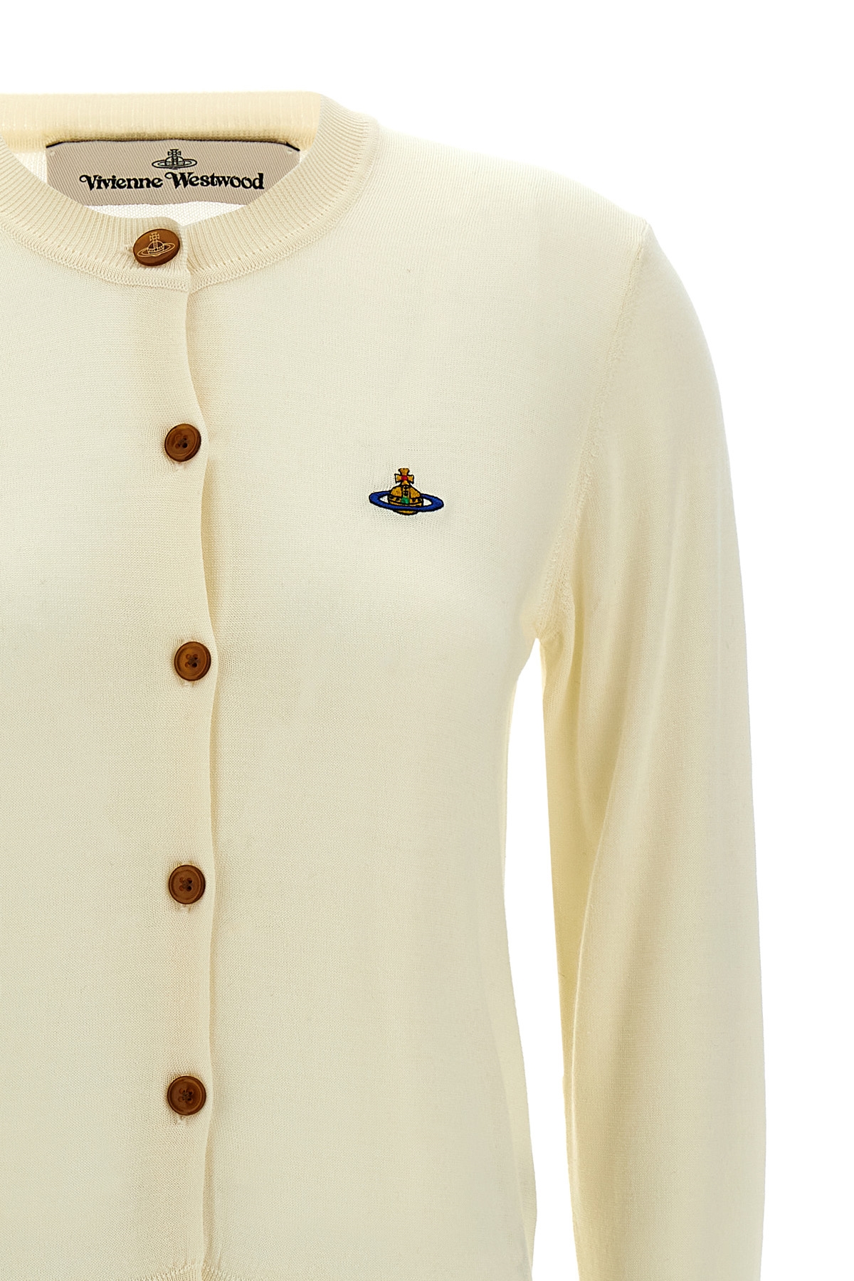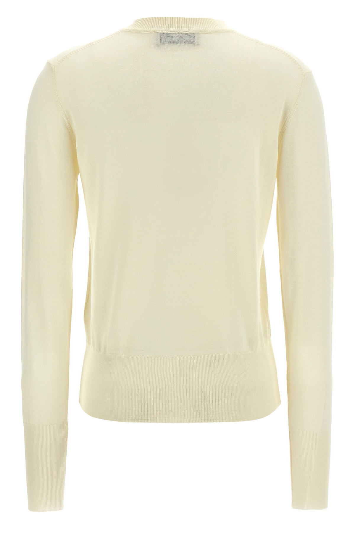 'Bea' wool and silk blend cardigan with front embroidery, crew neck, button closure, long cuffed sleeves.