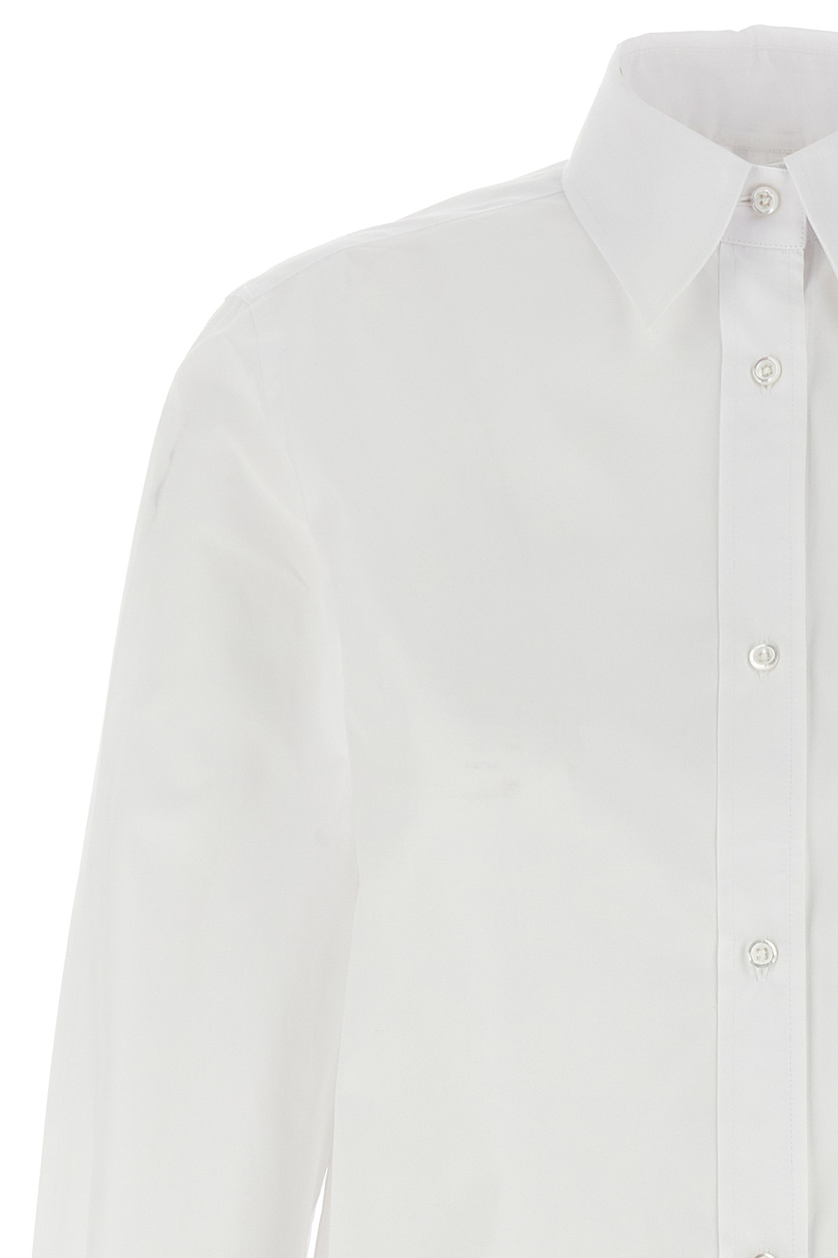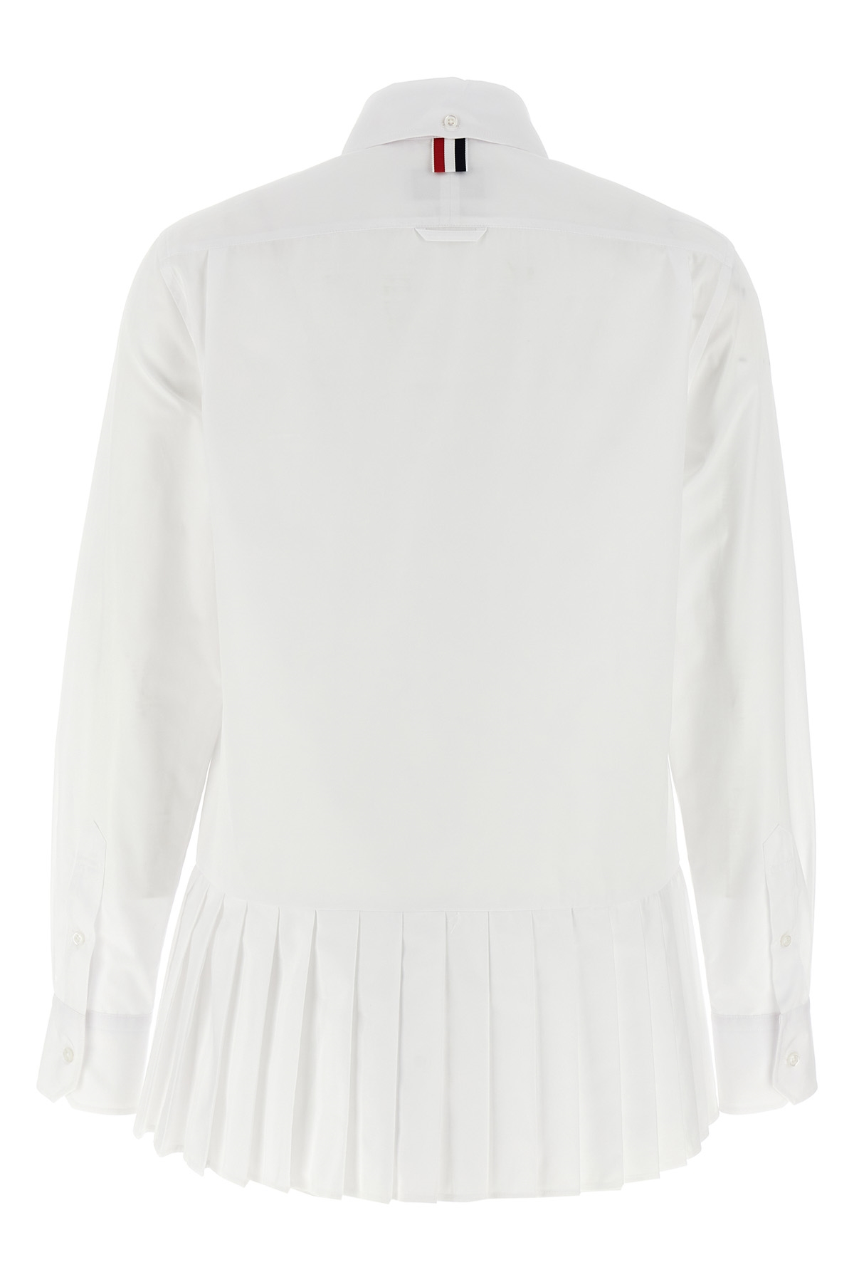 'Pleated' cotton poplin shirt with flounced hem, button closure, long cuffed sleeves.