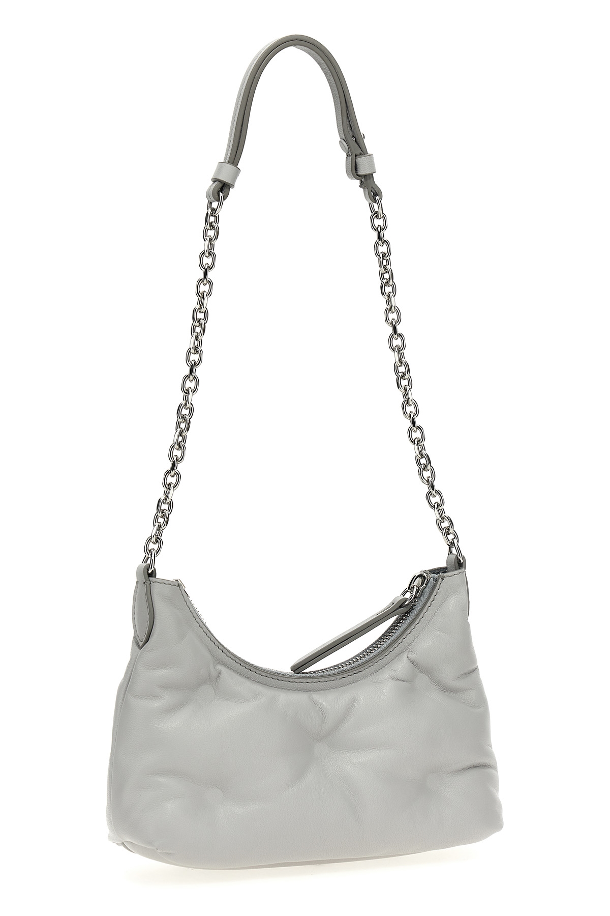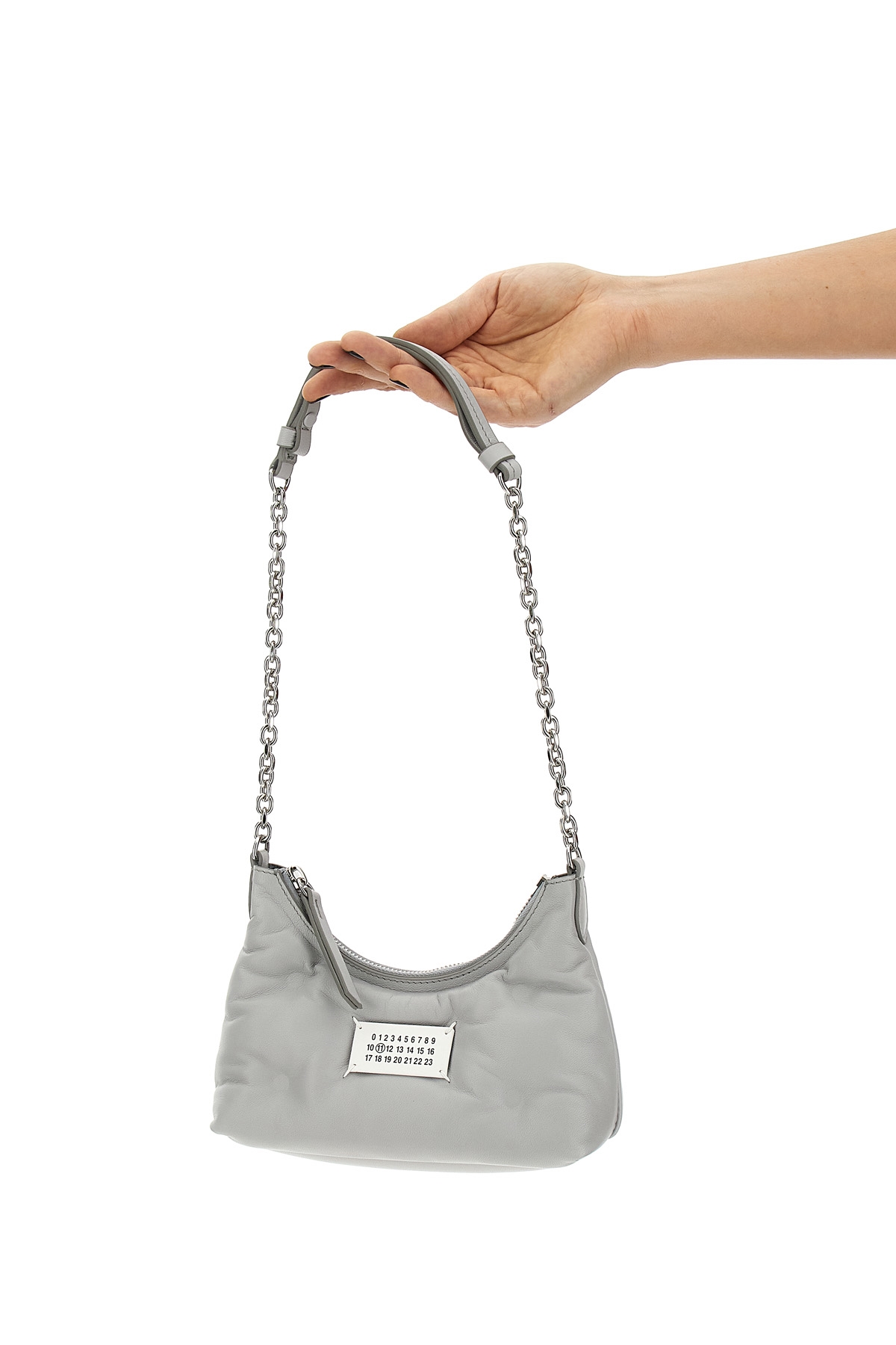 'Glam Slam hobo micro' quilted nappa leather shoulder bag, zip closure, front numerical logo label, chain and leather handle.