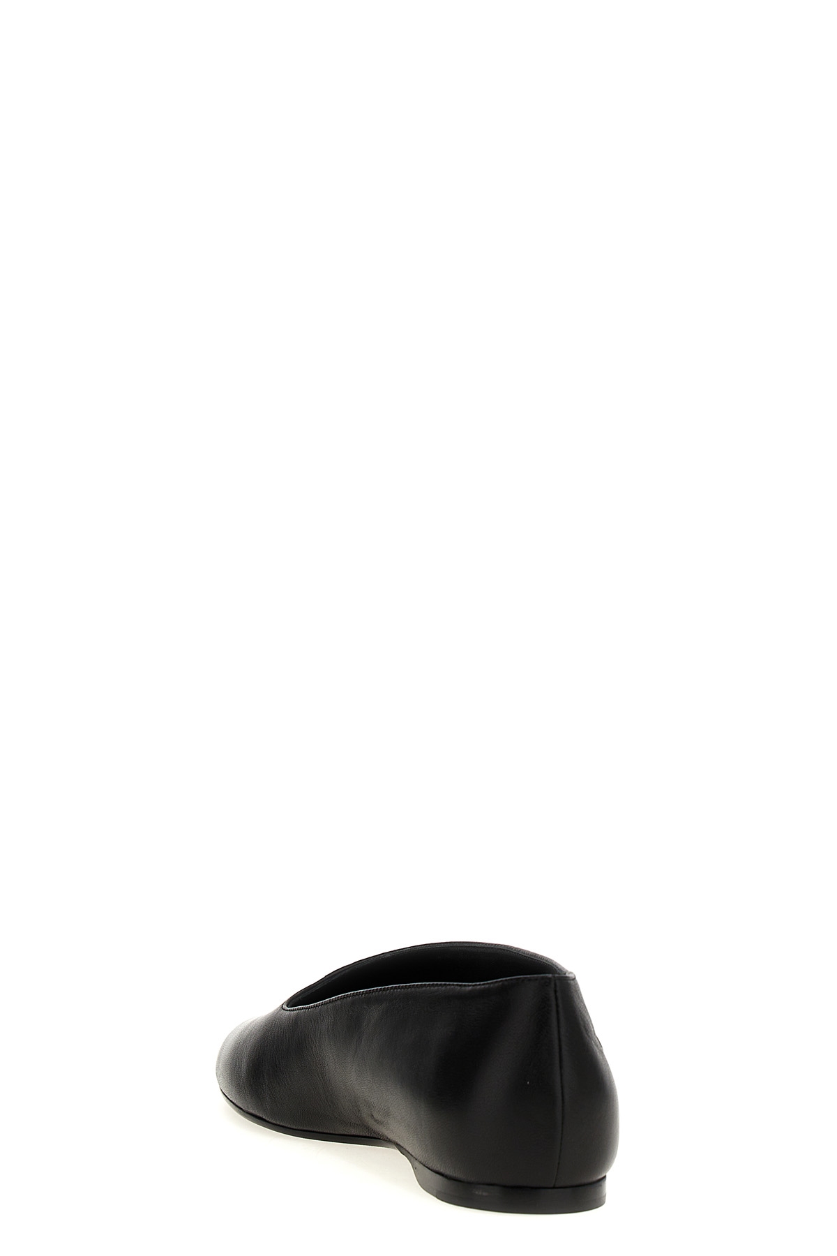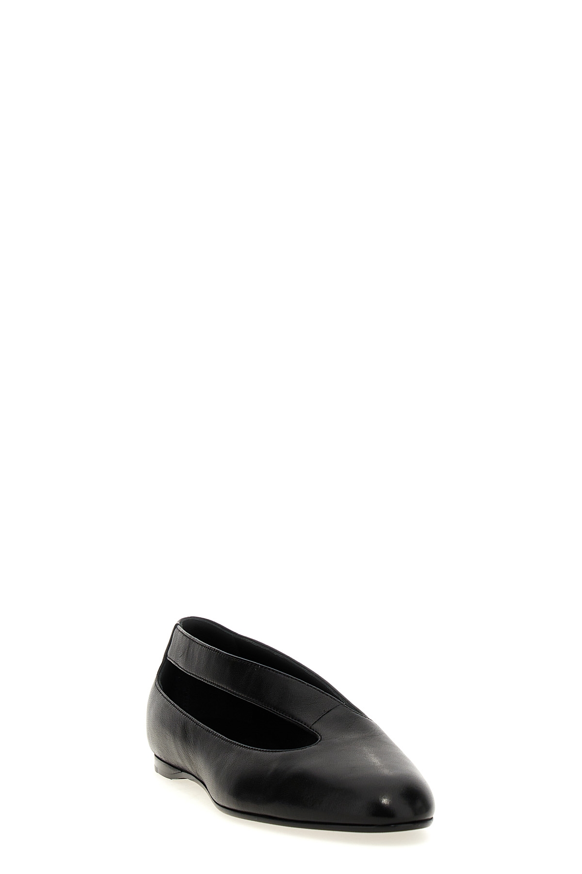 'Diana' ballet flats in asymmetrical nappa leather with cut-out, almond toe, leather sole.