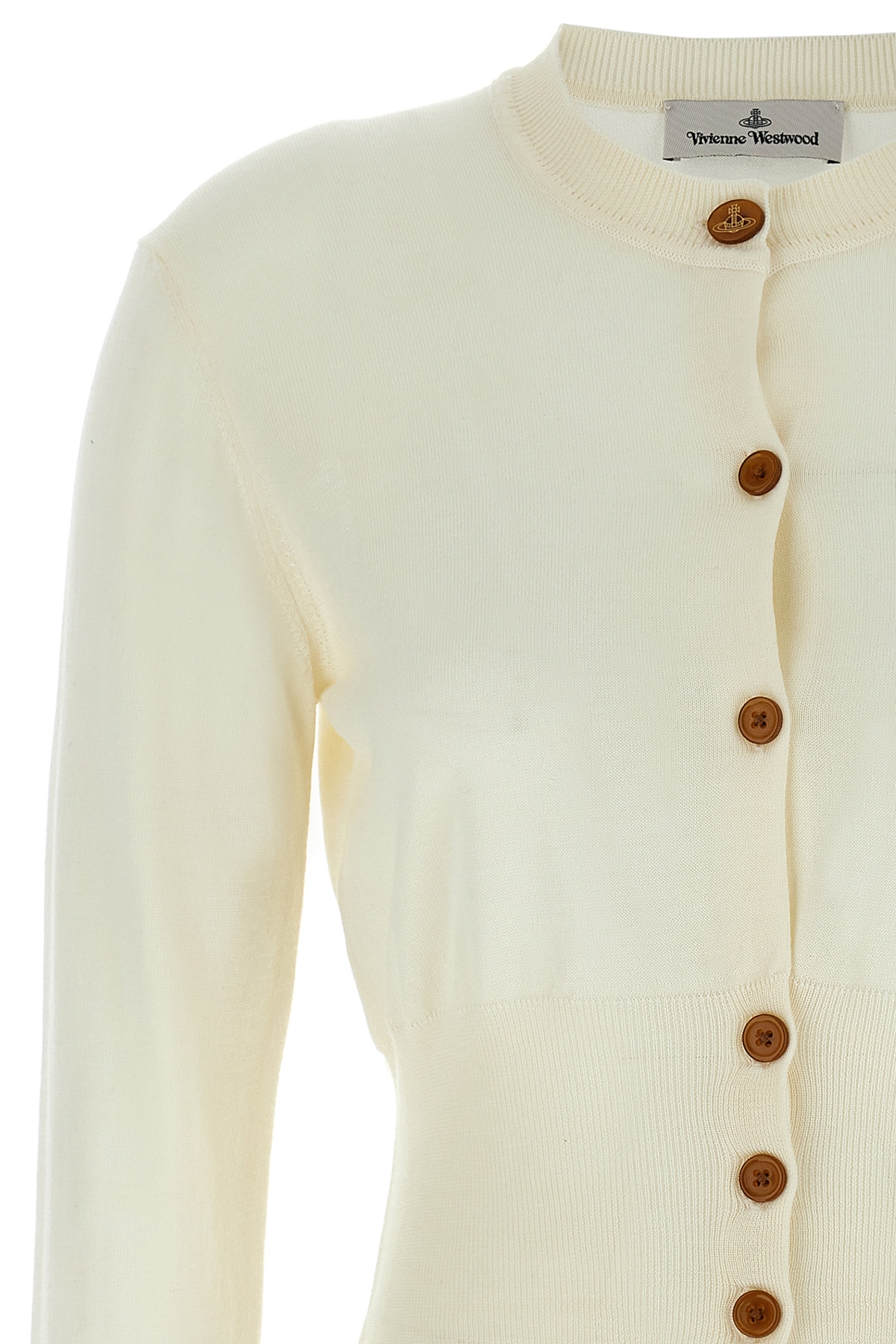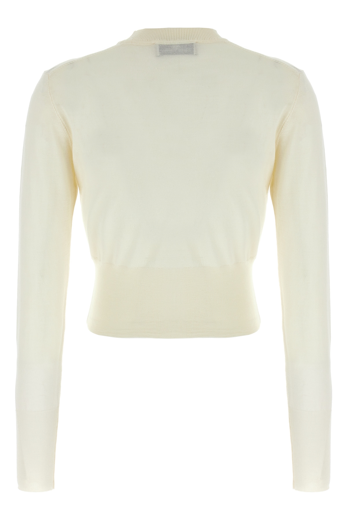 Wool and silk blend 'Bea' cardigan, cropped pattern, crew neck, front logo embroidery, button closure, long sleeve with cuff.