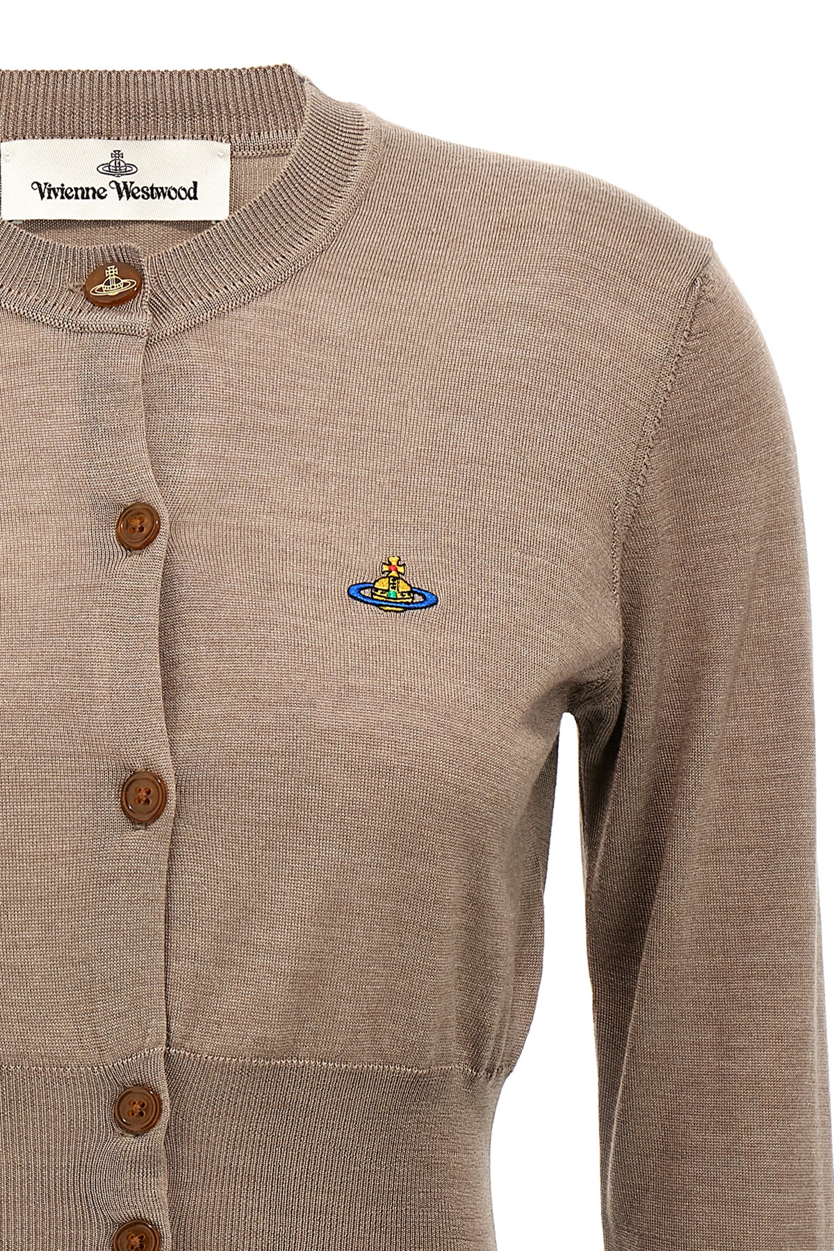 Wool and silk blend 'Bea' cardigan, cropped pattern, crew neck, front logo embroidery, button closure, long sleeve with cuff.