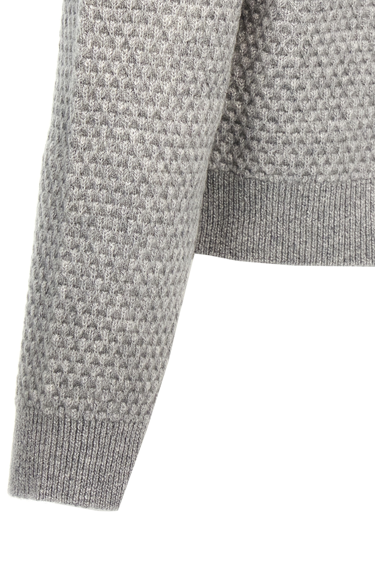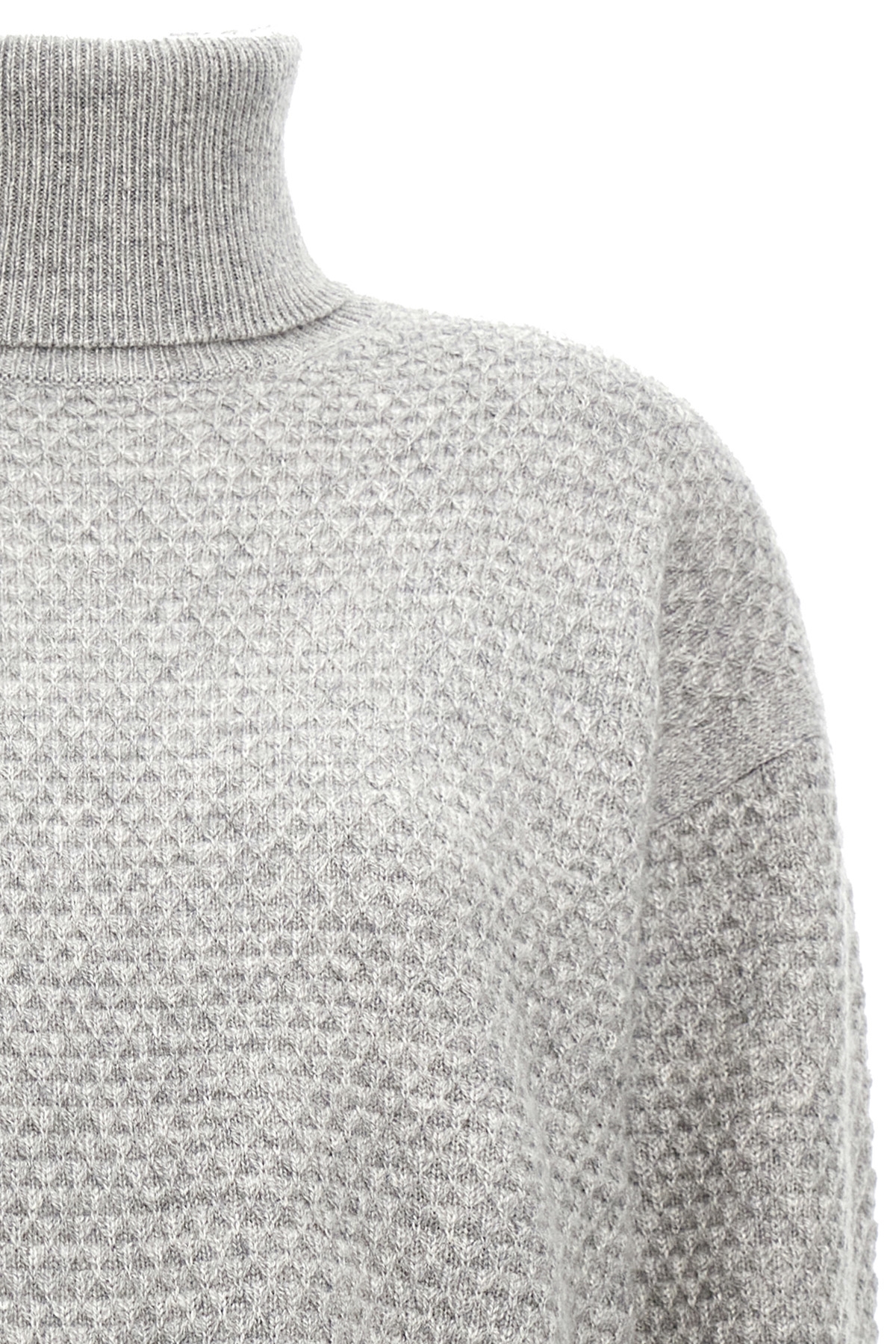 'Nero' worked cashmere sweater with high neck, long cuffed sleeves.