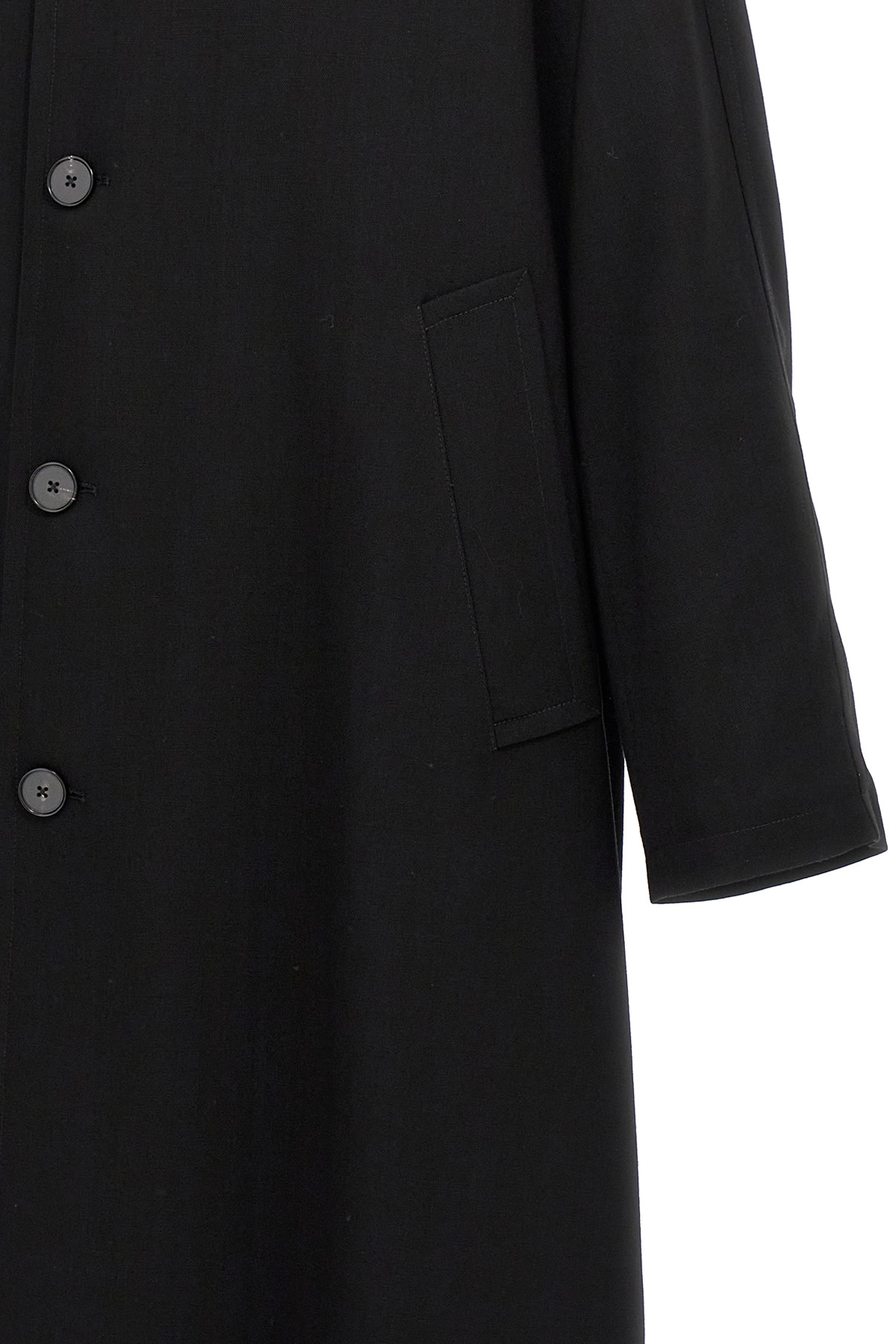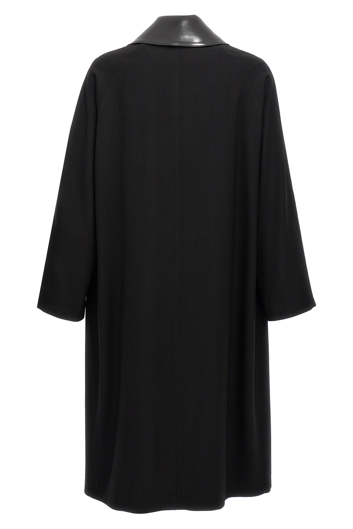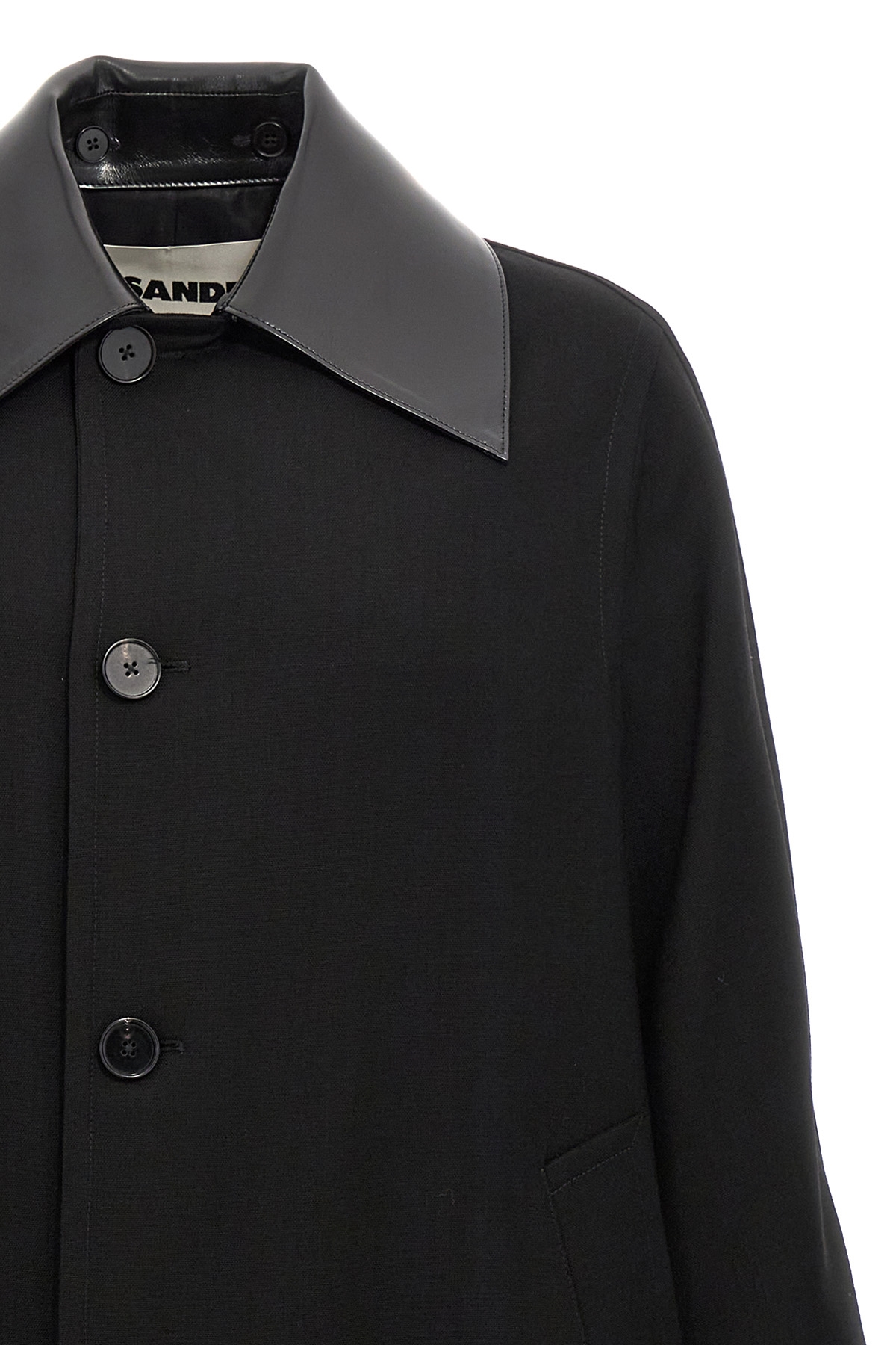 Single-breasted 'Sport 67' lightweight wool canvas coat with removable leather collar with button closure, pockets, long sleeves