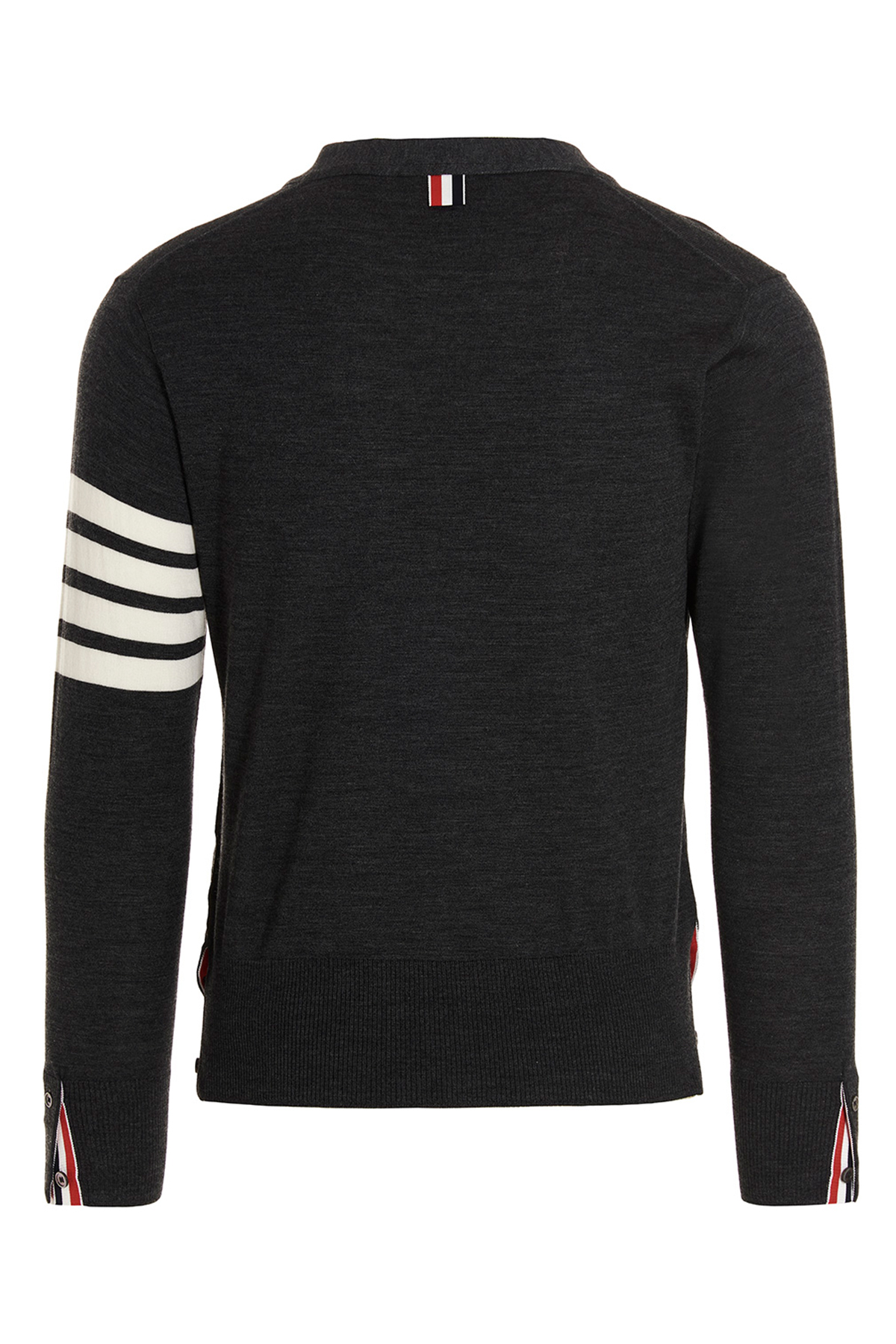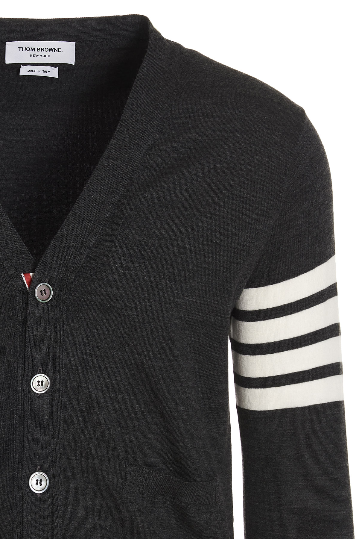 Merino wool cardigan with buttons, a V-neck, long sleeves and a '4 bar' detail.