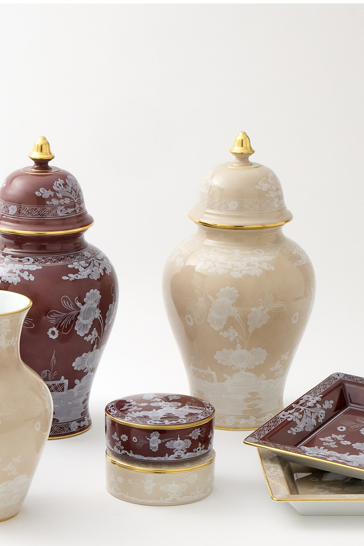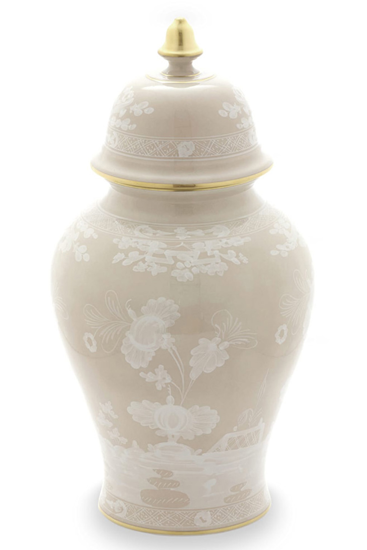 Potiche large porcelain vase with meringue decoration and gold thread, with lid. 'Oriente Italiano' collection.