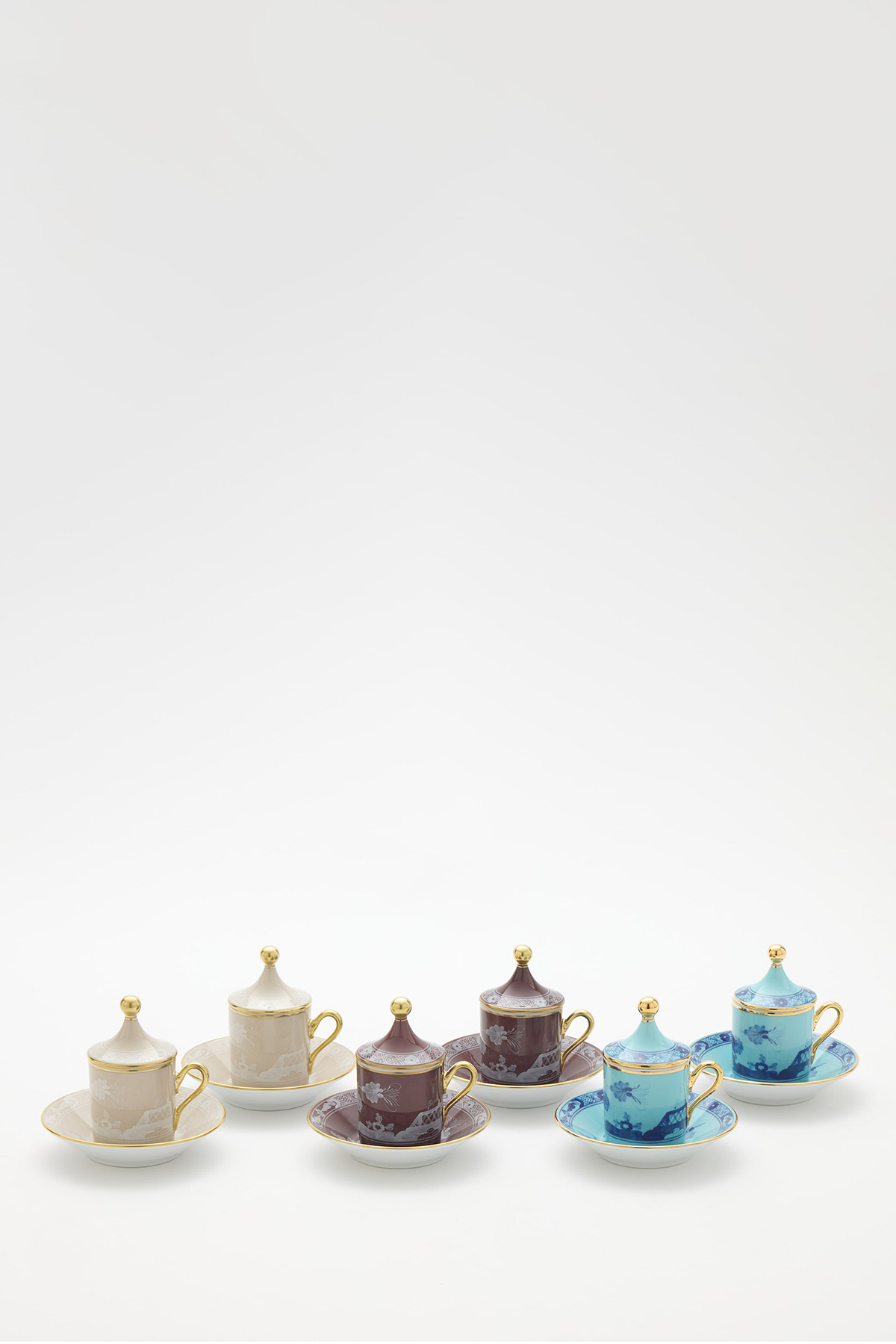 Coffee cup with saucer with meringue decoration and gold thread. 'Oriente Italiano' collection. Set of 2.
