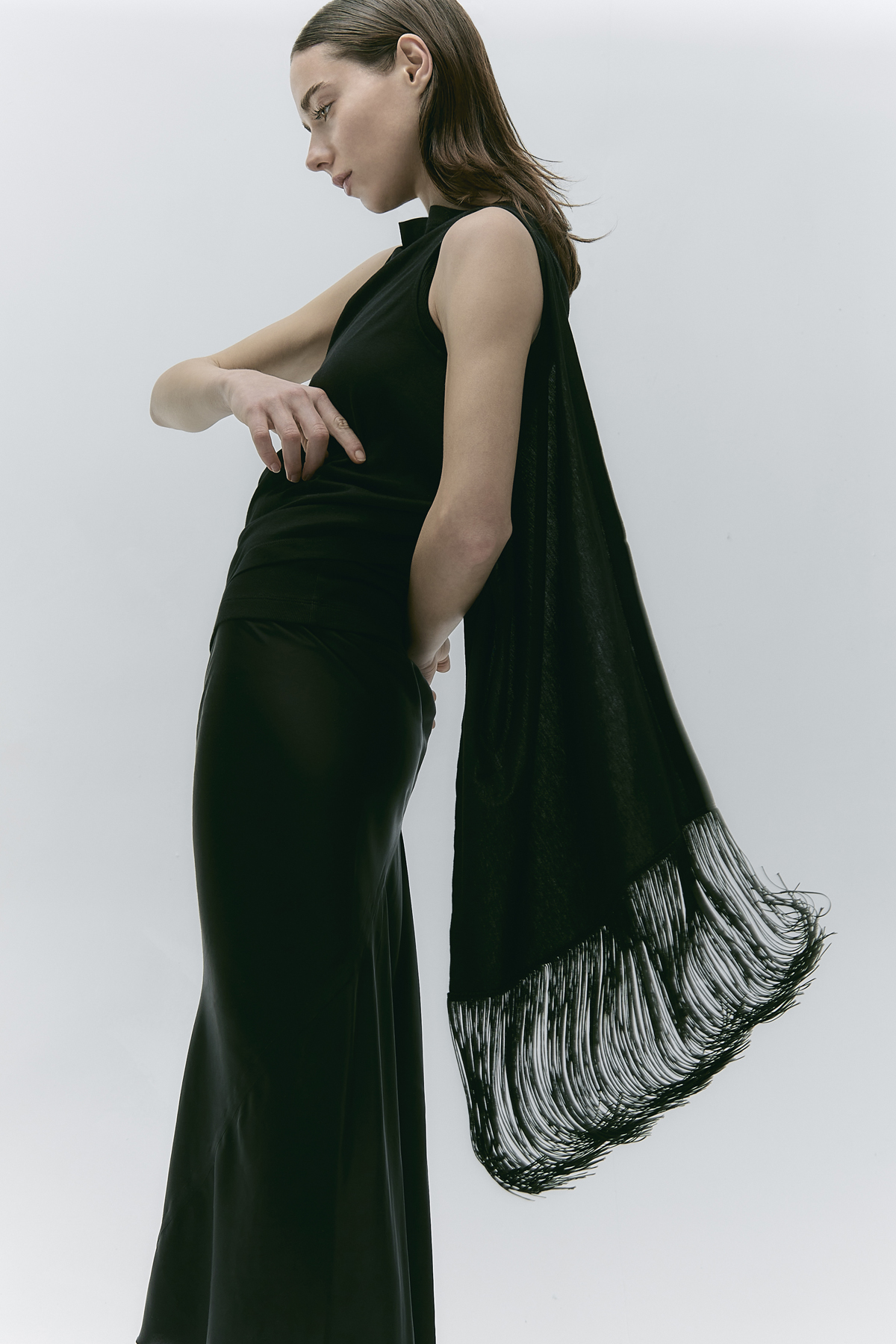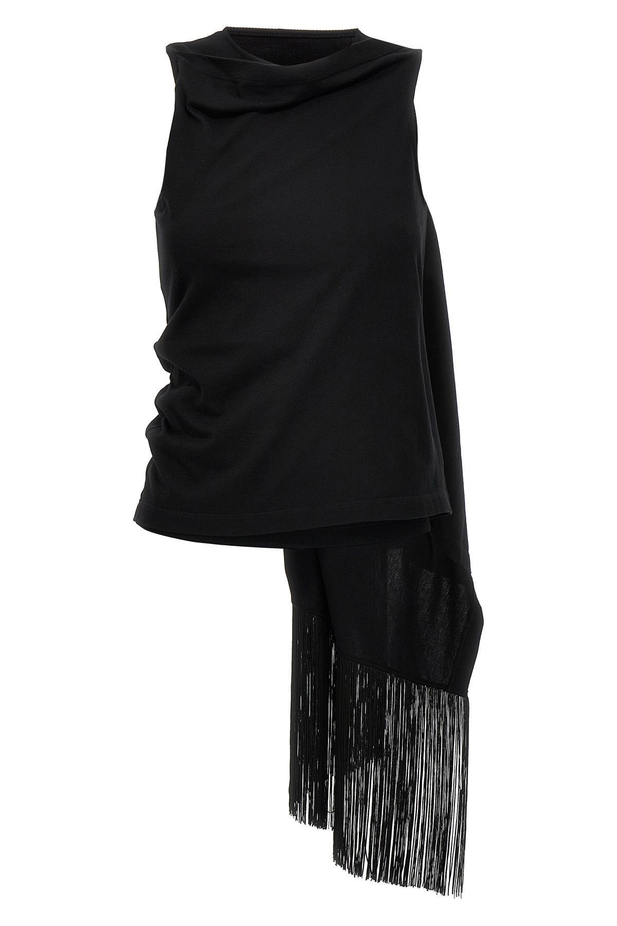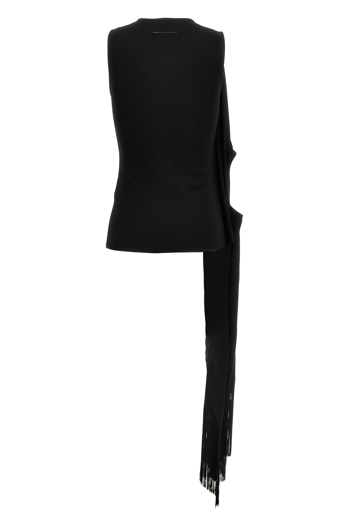 Ribbed cotton jersey top with fabric draping with adjustable fringes, crew neck, 'Numeric signature MM6' embroidery at the front, 'White stitch line' at the back.