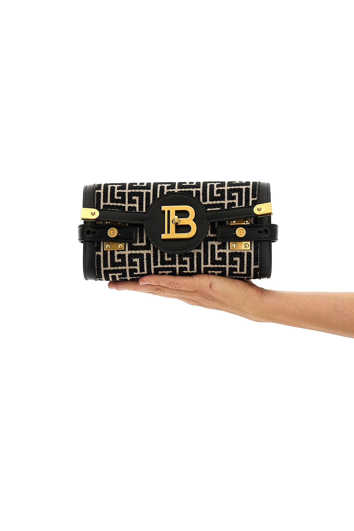'B-Buzz 23' clutch bag in jacquard PB monogram canvas with leather inserts, flap closure with B-Twist quarter-turn closure, vintage-effect metal details, removable chain shoulder strap.