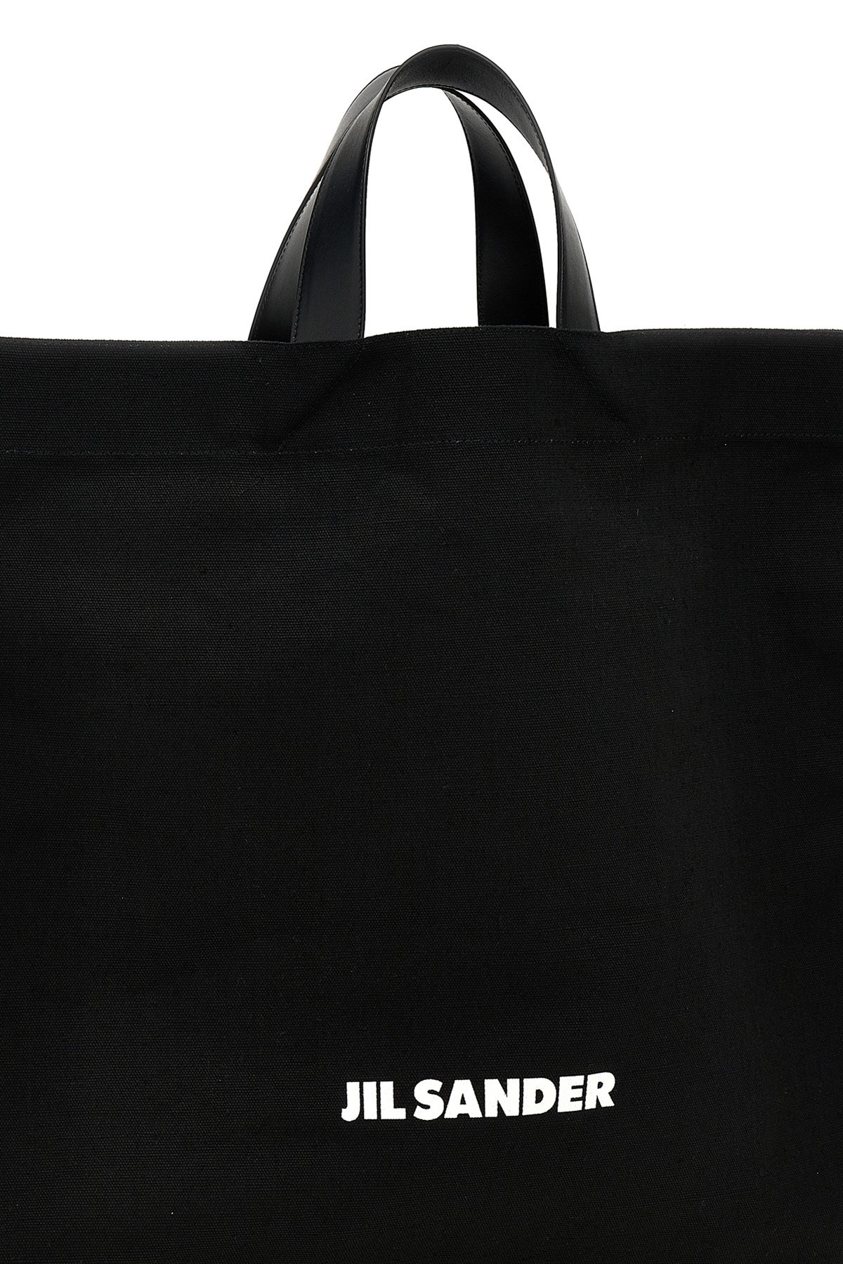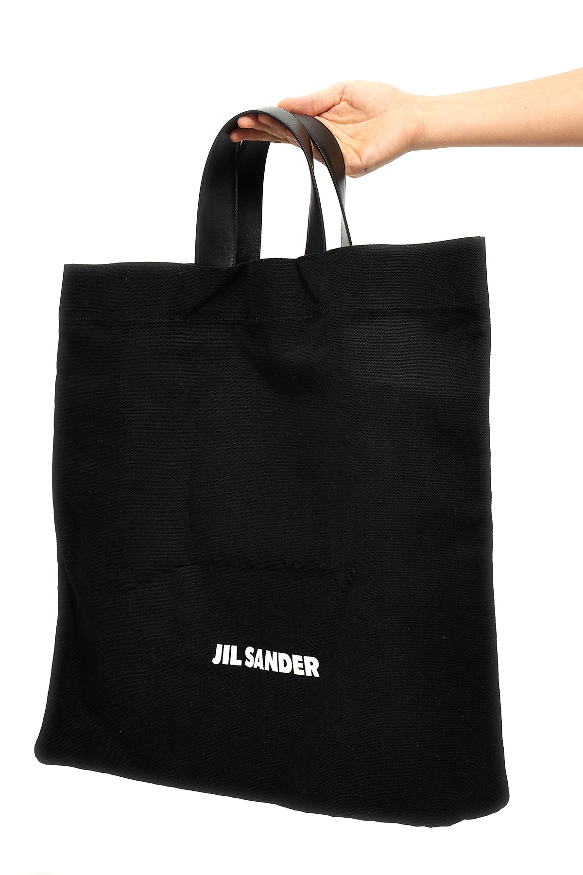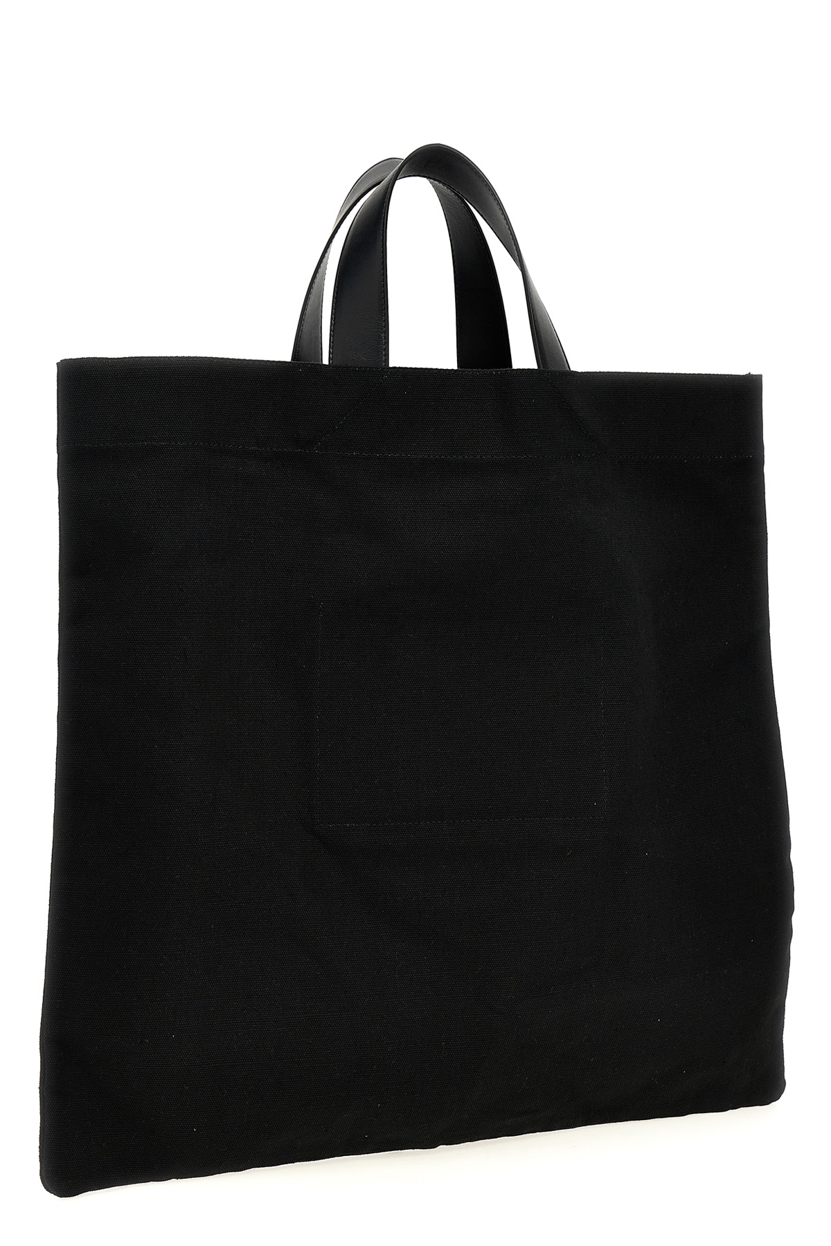 'Book Tote Square' canvas shopping bag, double fixed leather handle, front logo print.