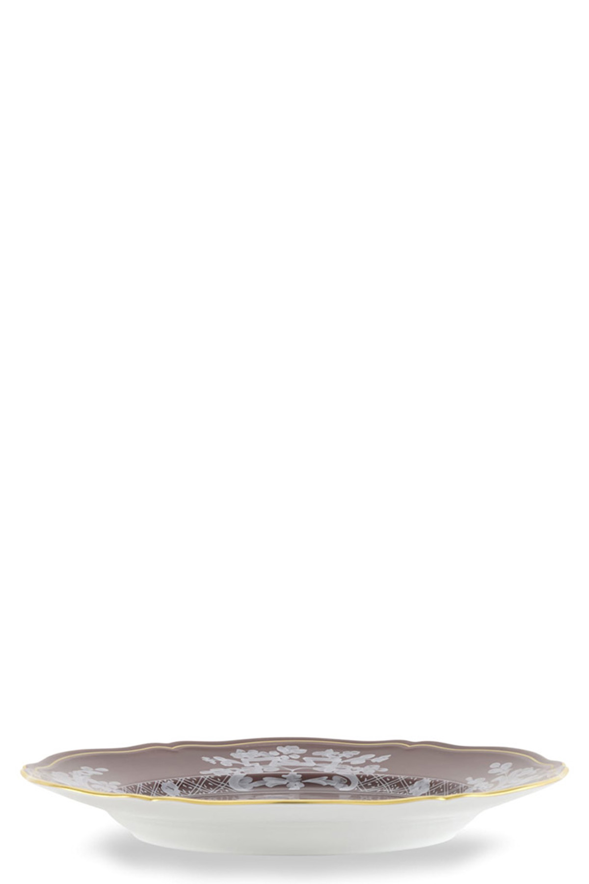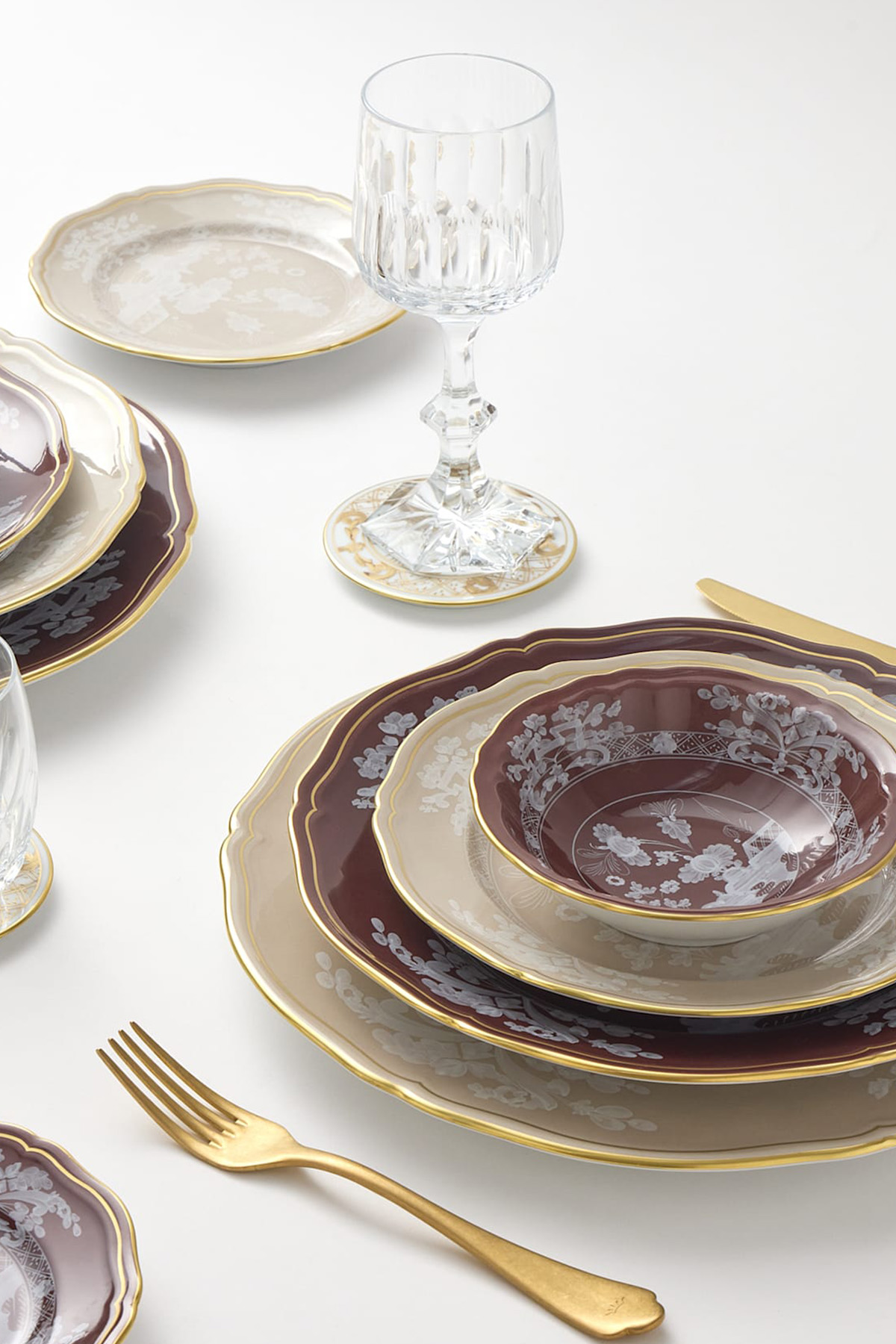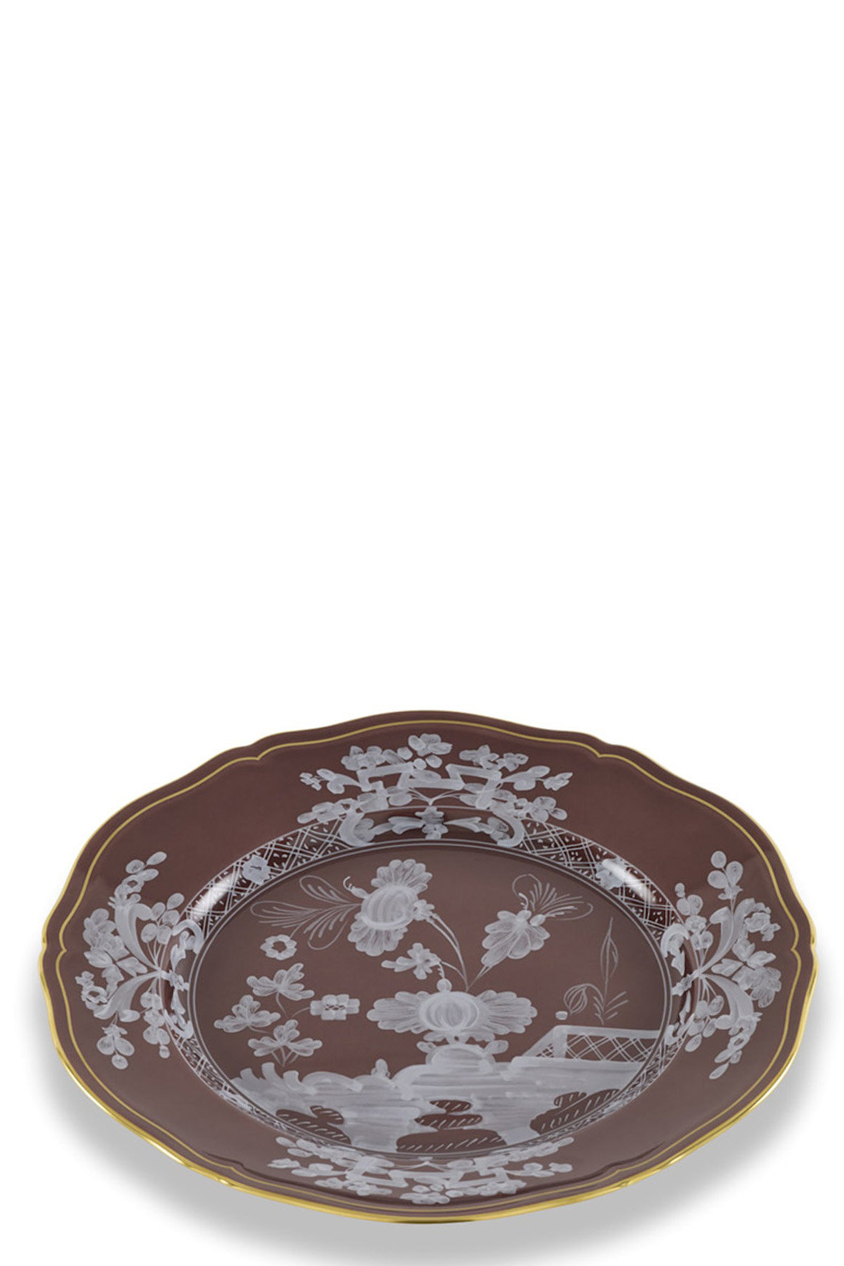 Porcelain dinner plate with Chestnut decoration and gold thread. 'Oriente Italiano' collection.