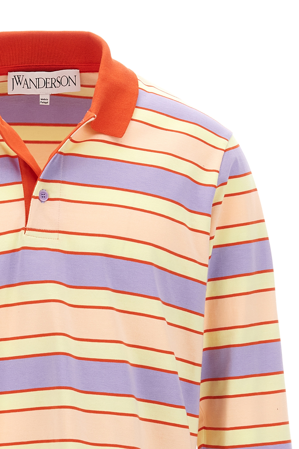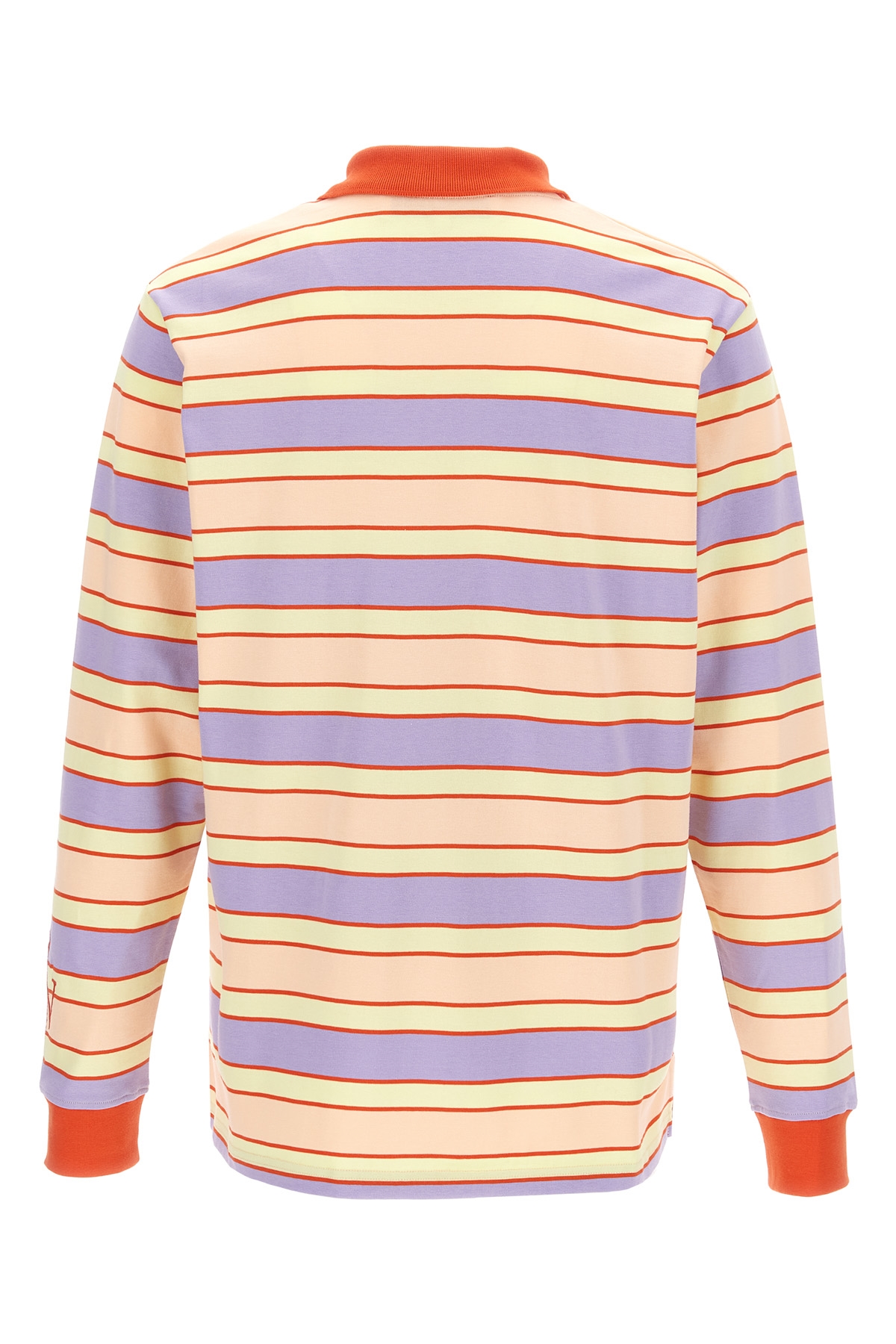 Striped cotton polo shirt, collar and buttons, side vents, long sleeve with cuff and logo embroidery.lits, long sleeves.