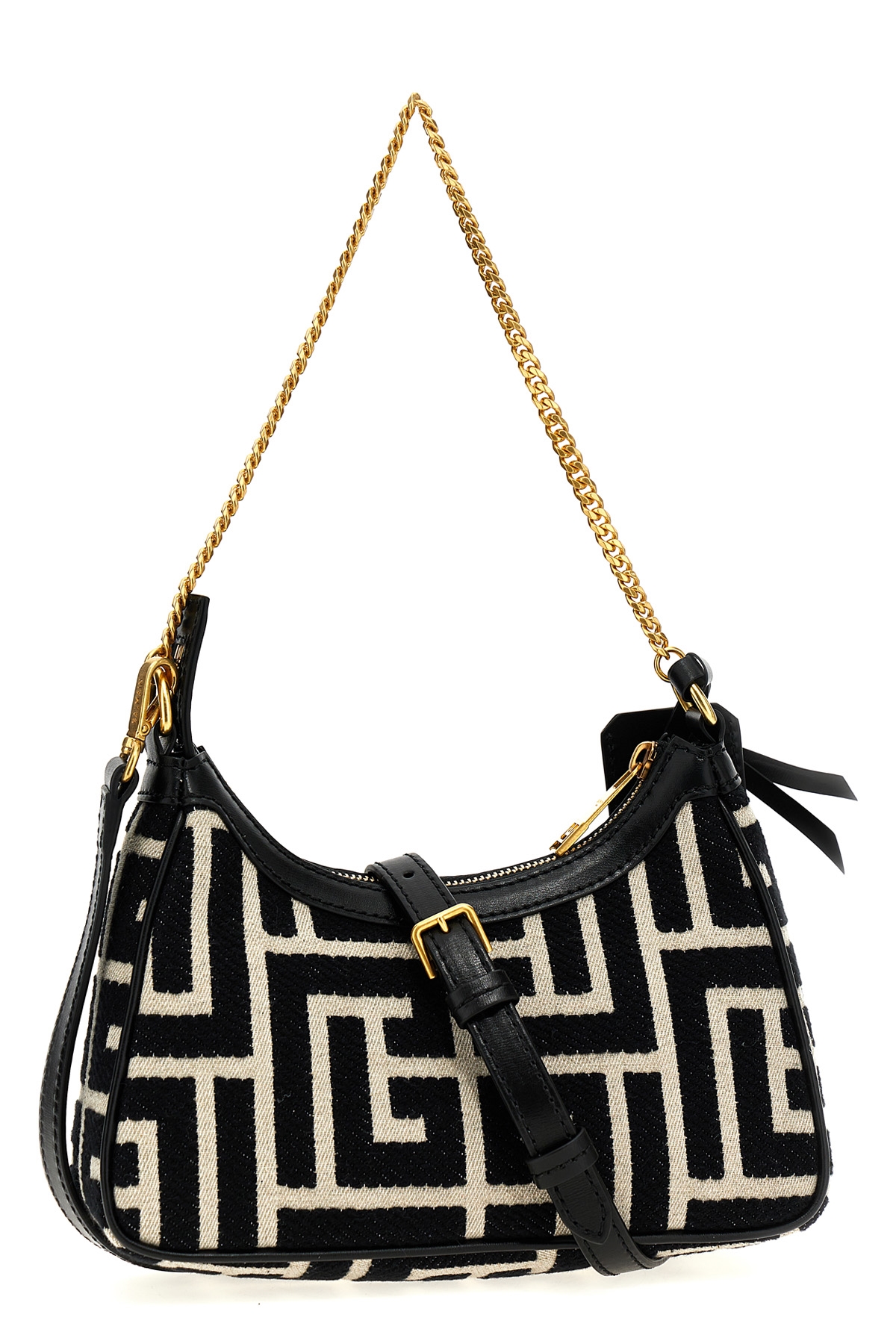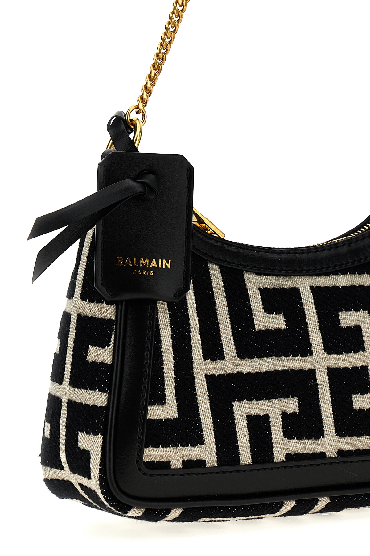 'B-Army' shoulder bag in PB labyrinth and leather monogram jacquard, zip closure, fixed chain handle, vintage-effect metal details, adjustable and removable leather shoulder strap, removable tag.