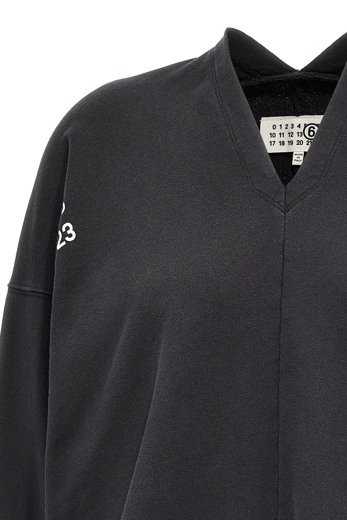 Brushed cotton sweatshirt, V-neck, 'Numeric signature MM6' logo print and embroidery, pockets, long cuffed sleeves.